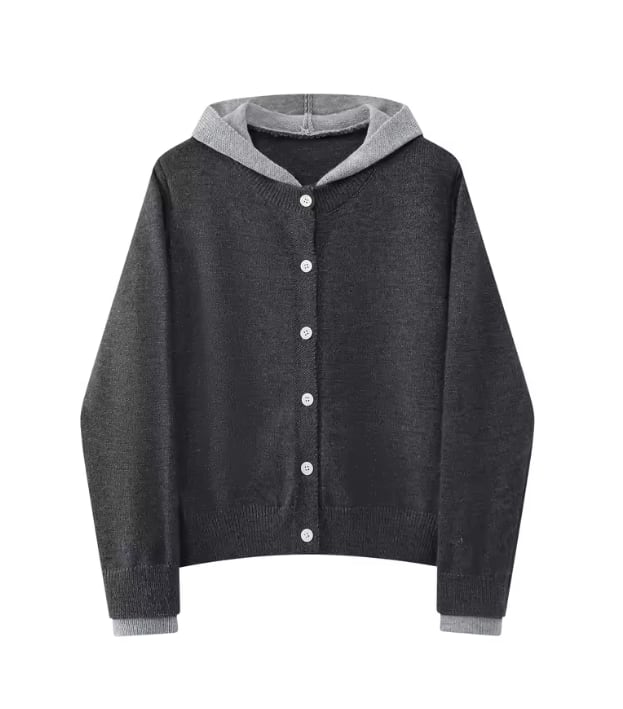 ■ディテール カラーブロック/レーヤード風デザイン/フード/カーディガン/ワイドフィット