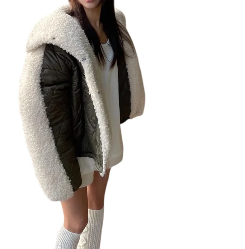 ■ディテール ボア/キルティング切替/スタンドカラー/クロージャー:スナップボタン/裏地あり/裾にドローストリングス/中綿