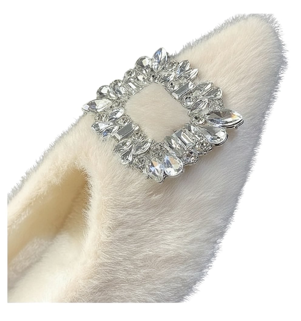 ■ディテール エコファー/フラットシューズ/ビジューバックル/ポインテッドトゥ