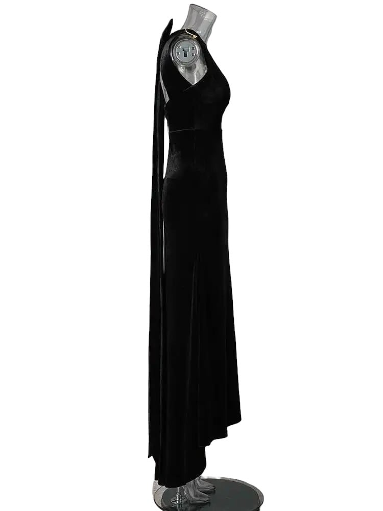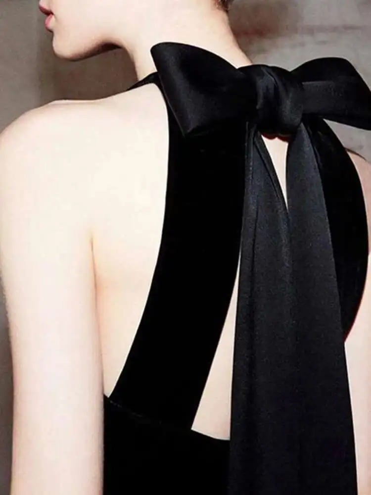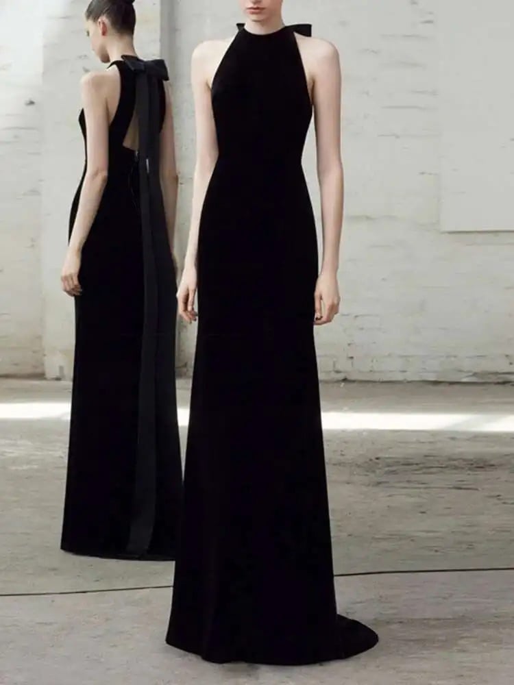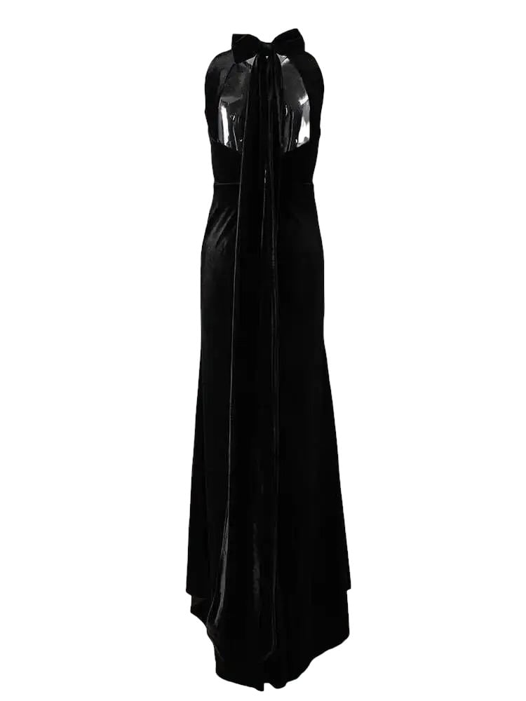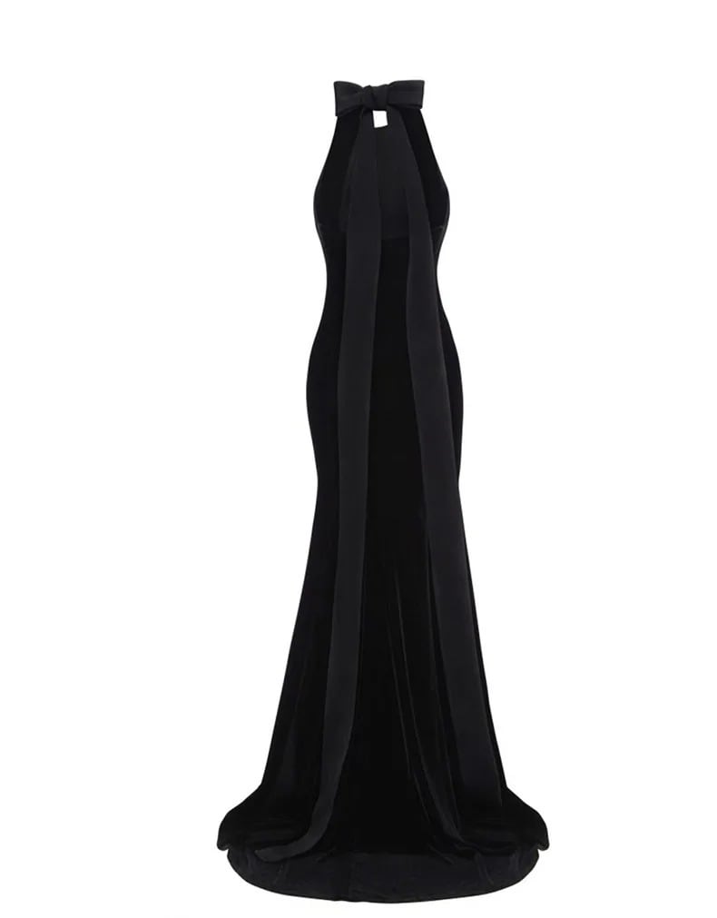 ■ディテール イブニングドレス/ソフトベルベット/フィッシュテール/サテンリボン/バックオープン/ジッパー/リボンはセイフティピンで着脱可能