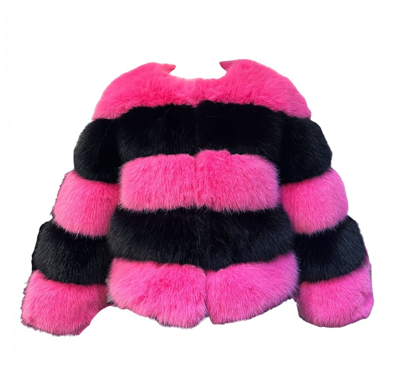 ■ディテール フェイクファー/カラーレス/ボーダー/クロージャー:ホック/裏地あり