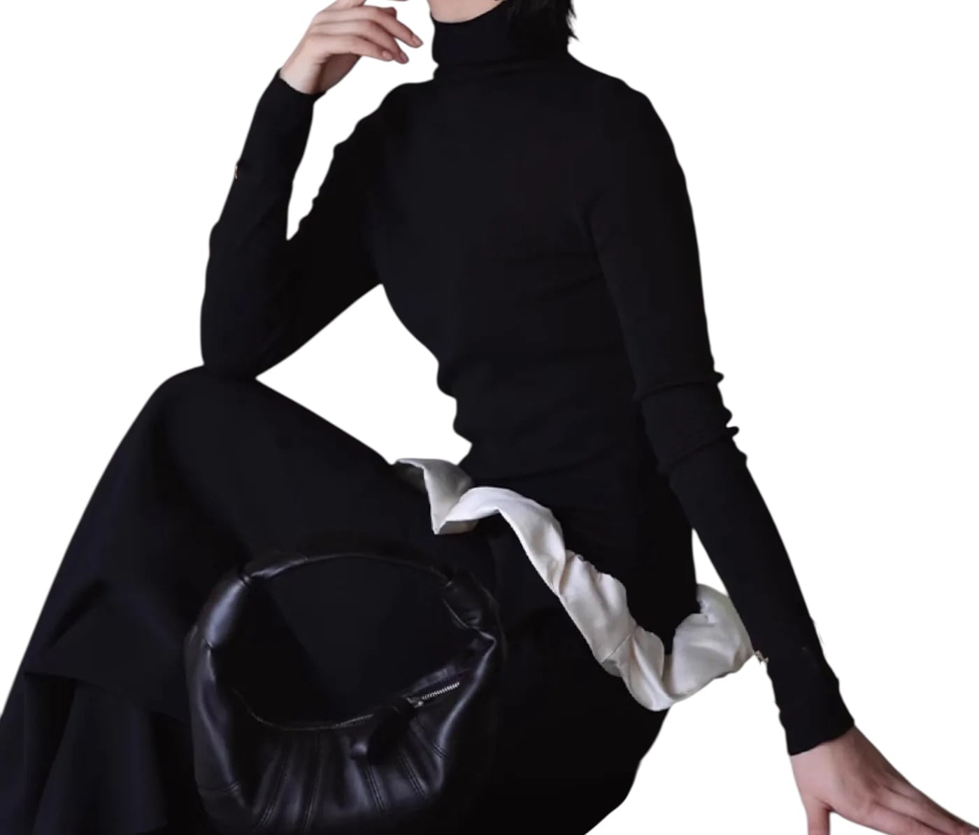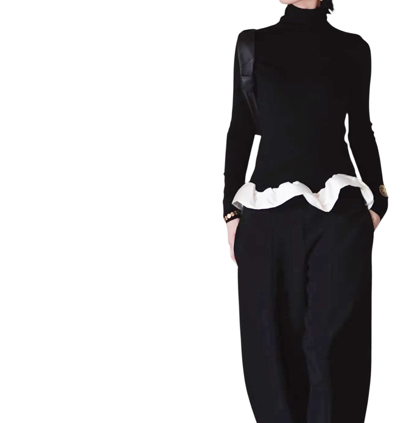 ■ディテール ジャージー/フリース素材/モックネック/ストレッチ/ペプラム
