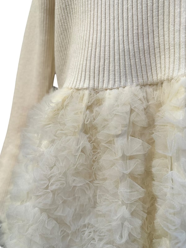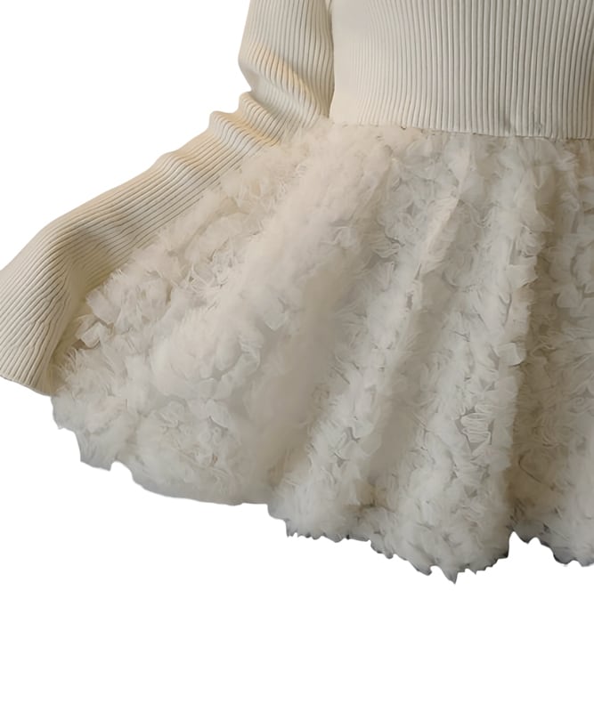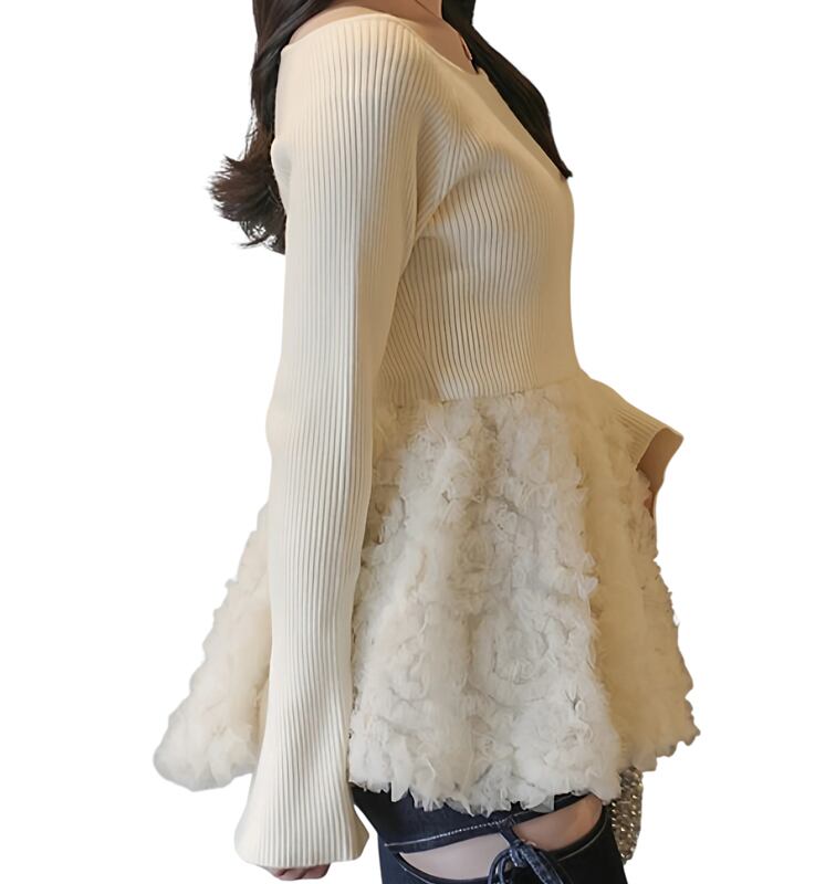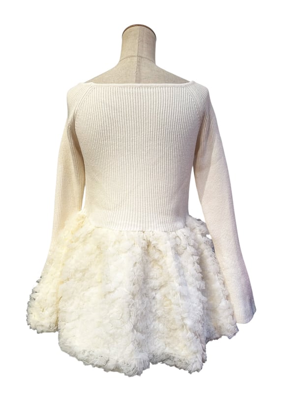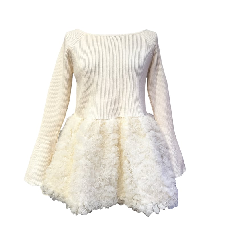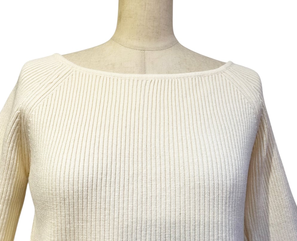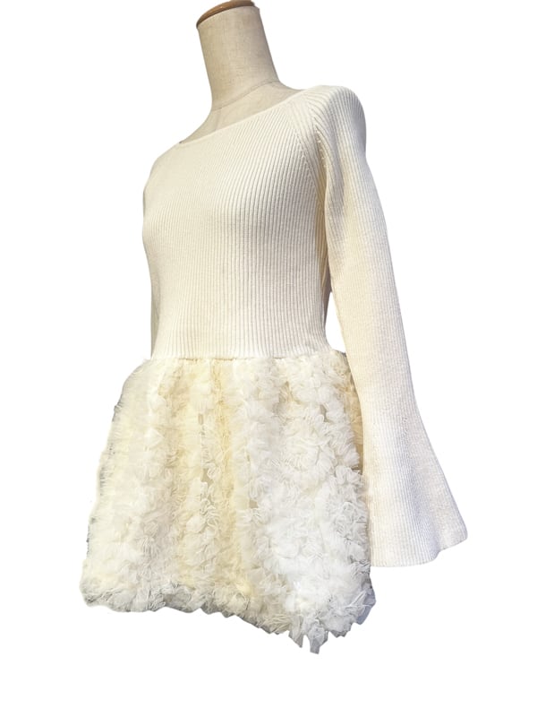 ■ディテール リブニット/ボートネック/ベルスリーブ/プルオーバー/チュールコサージュ