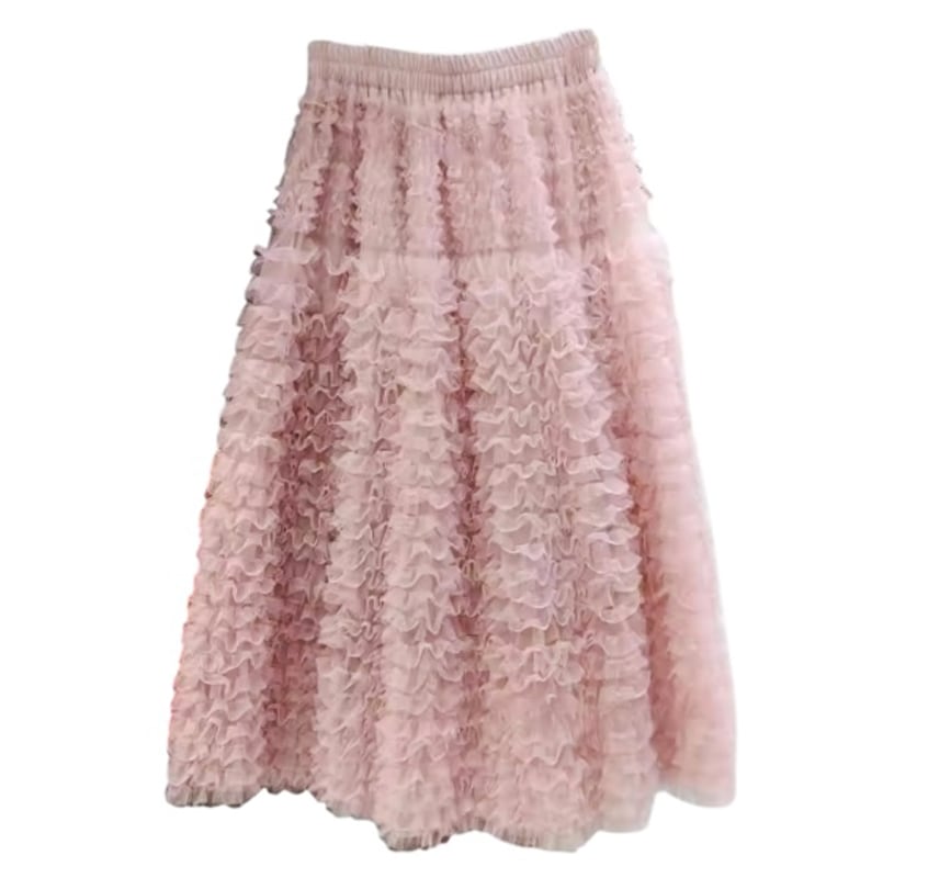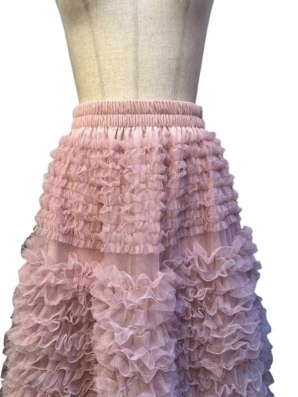 ■ディテール ロング/チュール/異なるサイズのラッフル/プルオン/裏地あり