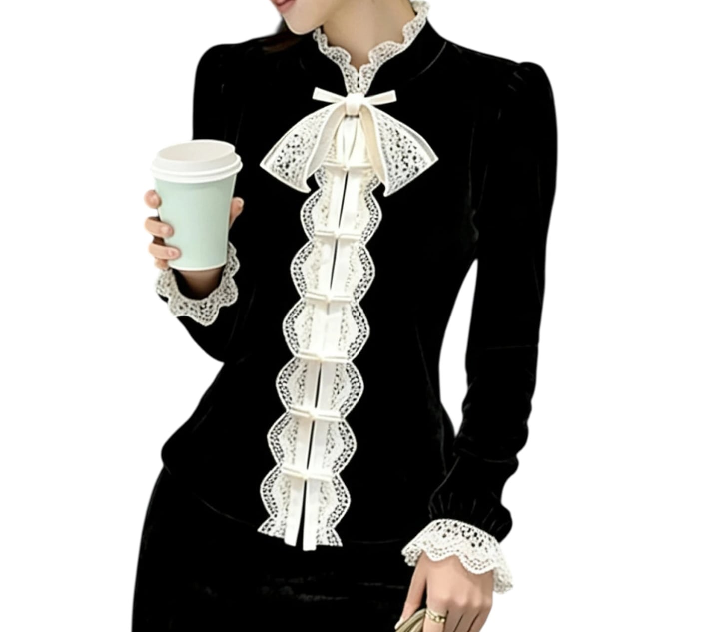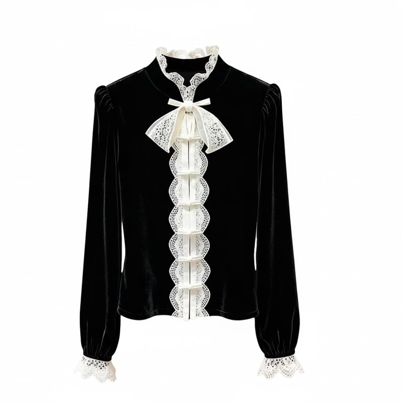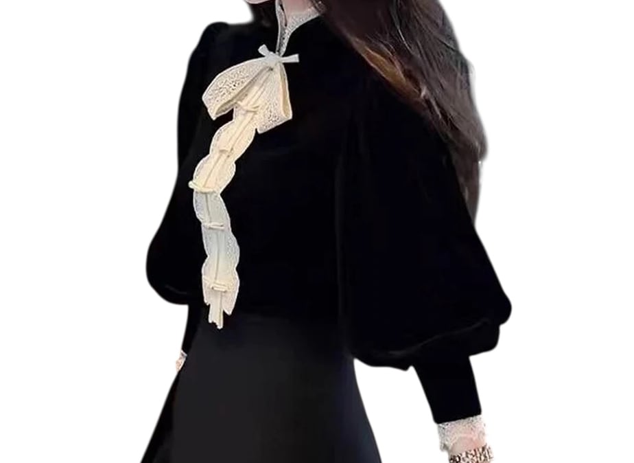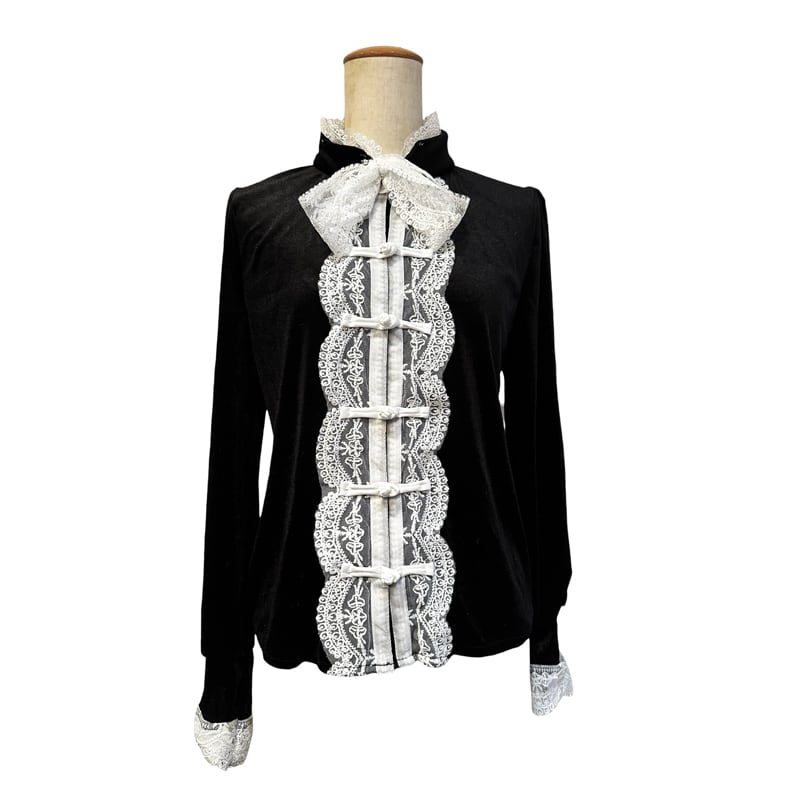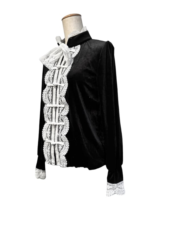 ■ディテール ソフトベルベット/チャイニーズカラー/レーストリム/プルオーバー/パフスリーブ