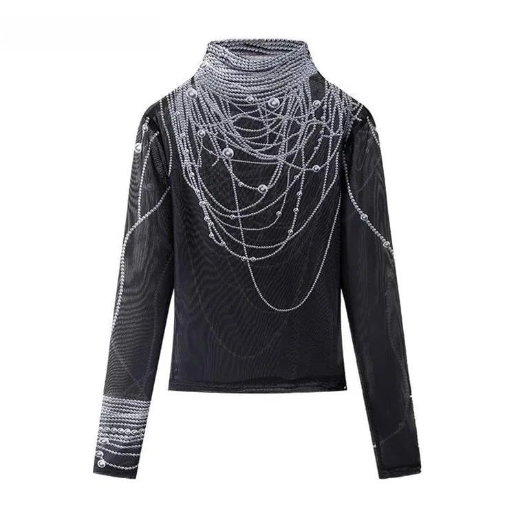 ■ディテール シアートップ/メッシュ/ストレッチ/プルオーバー/透け感あり/トロンプルイユ