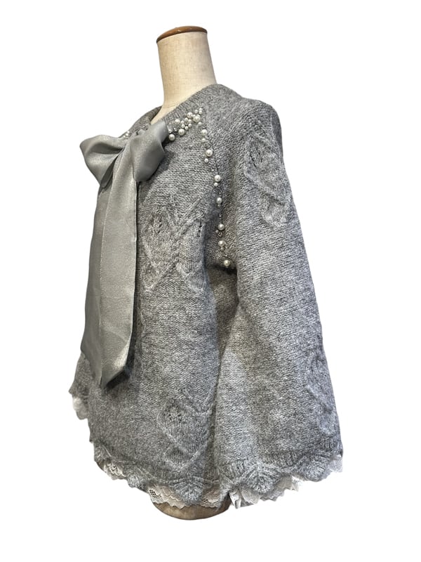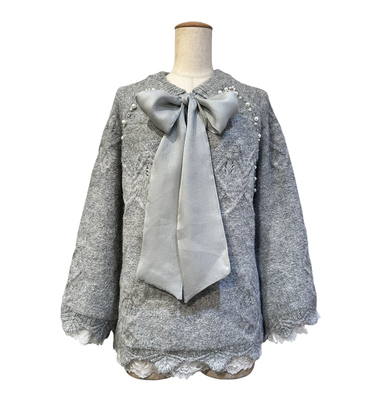 ■ディテール ボウタイ/ビジュー/ベルスリーブ/プルオーバー/レーストリム