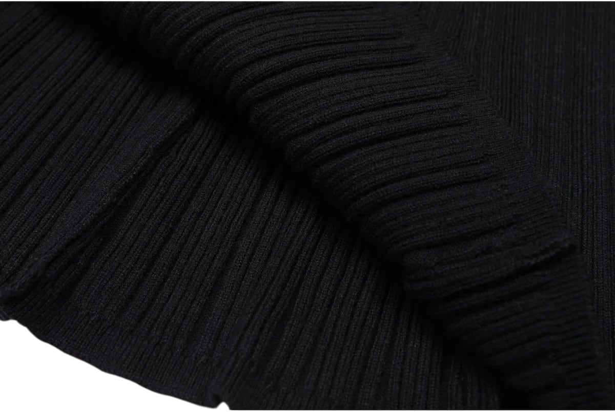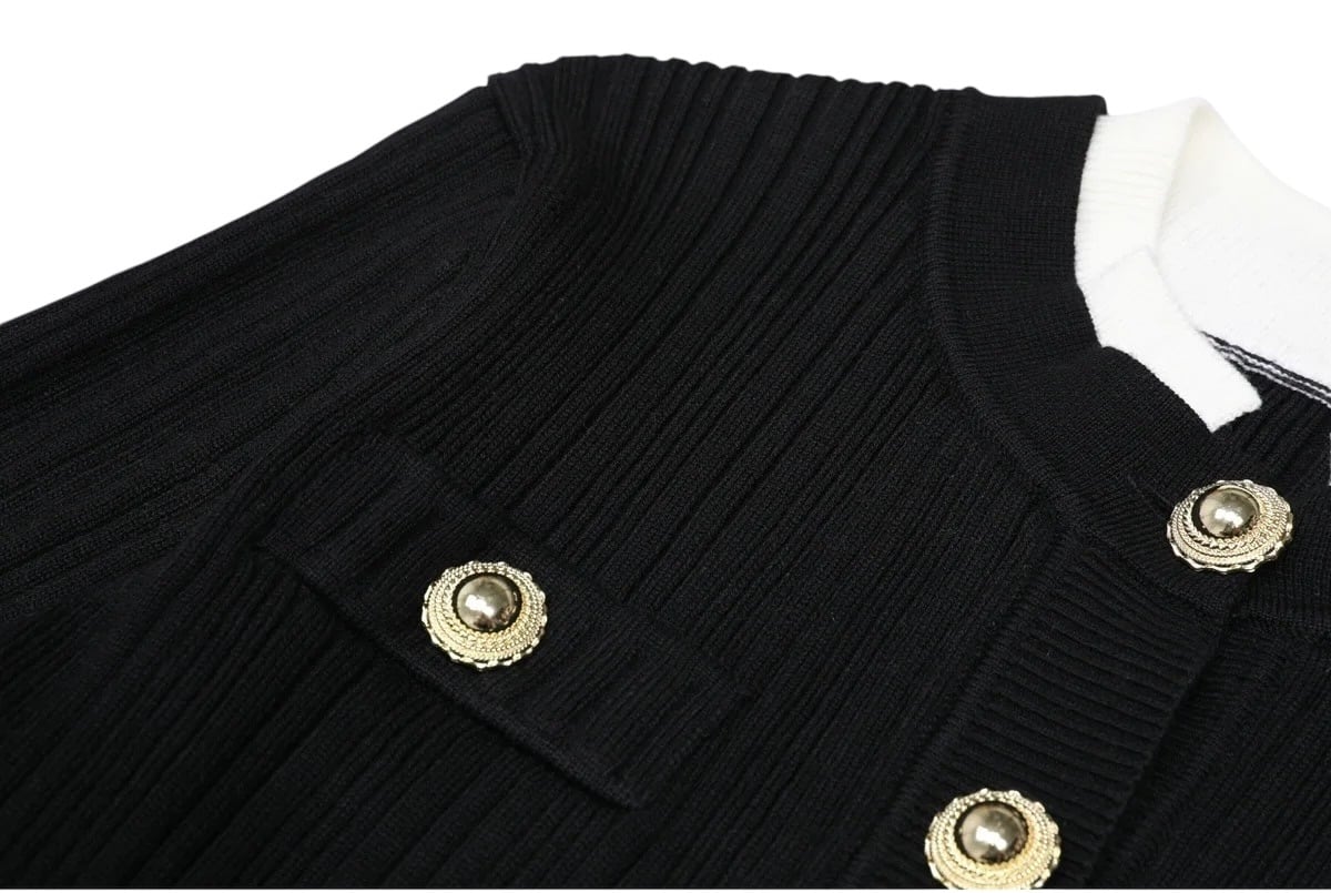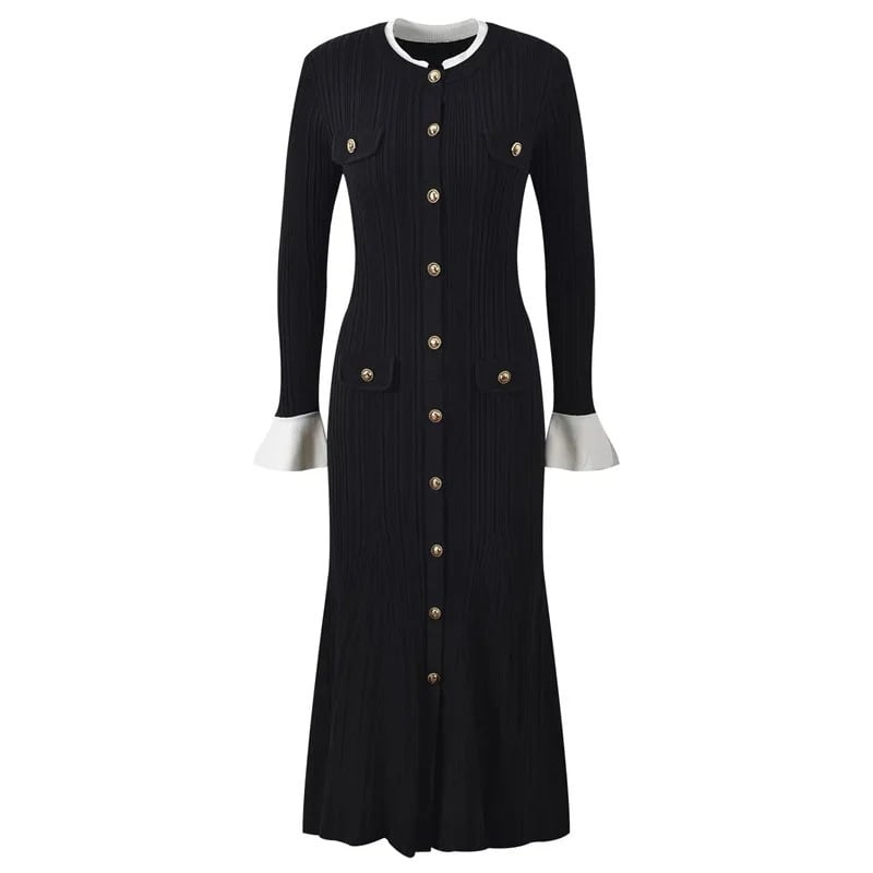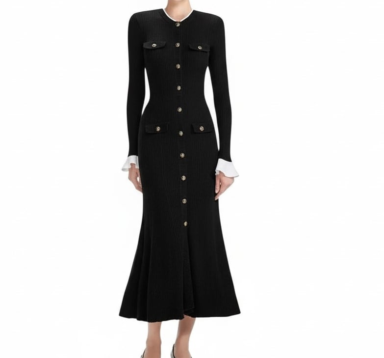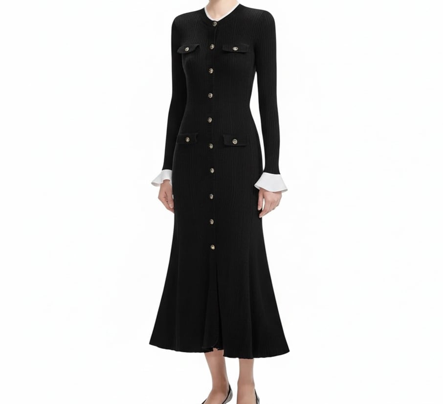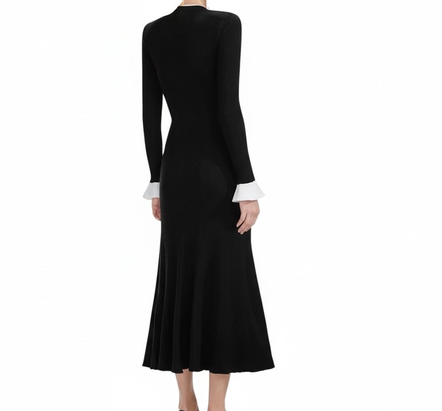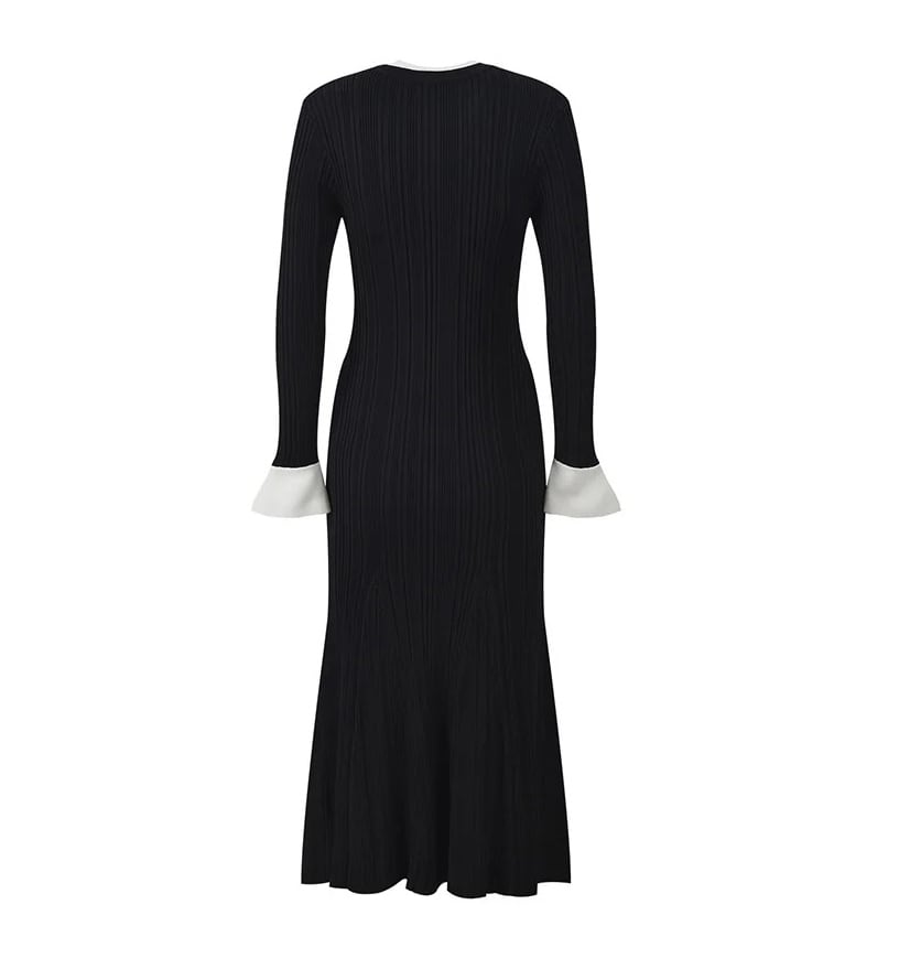 ■ディテール ニットドレス/厚手リブ/配色/プルオーバー/タイトフィット/ストレッチニット/プルオーバー