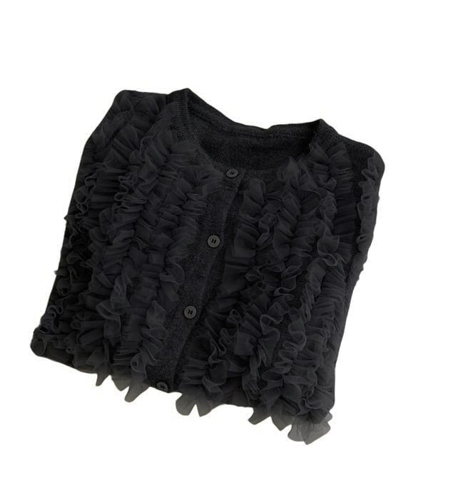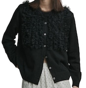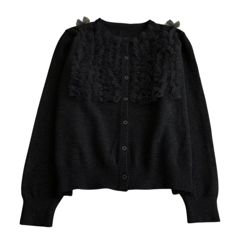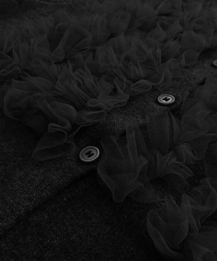 ■ディテール カーディガン/チュールラッフル/クルーネック/ソフトタッチ/ストレッチ