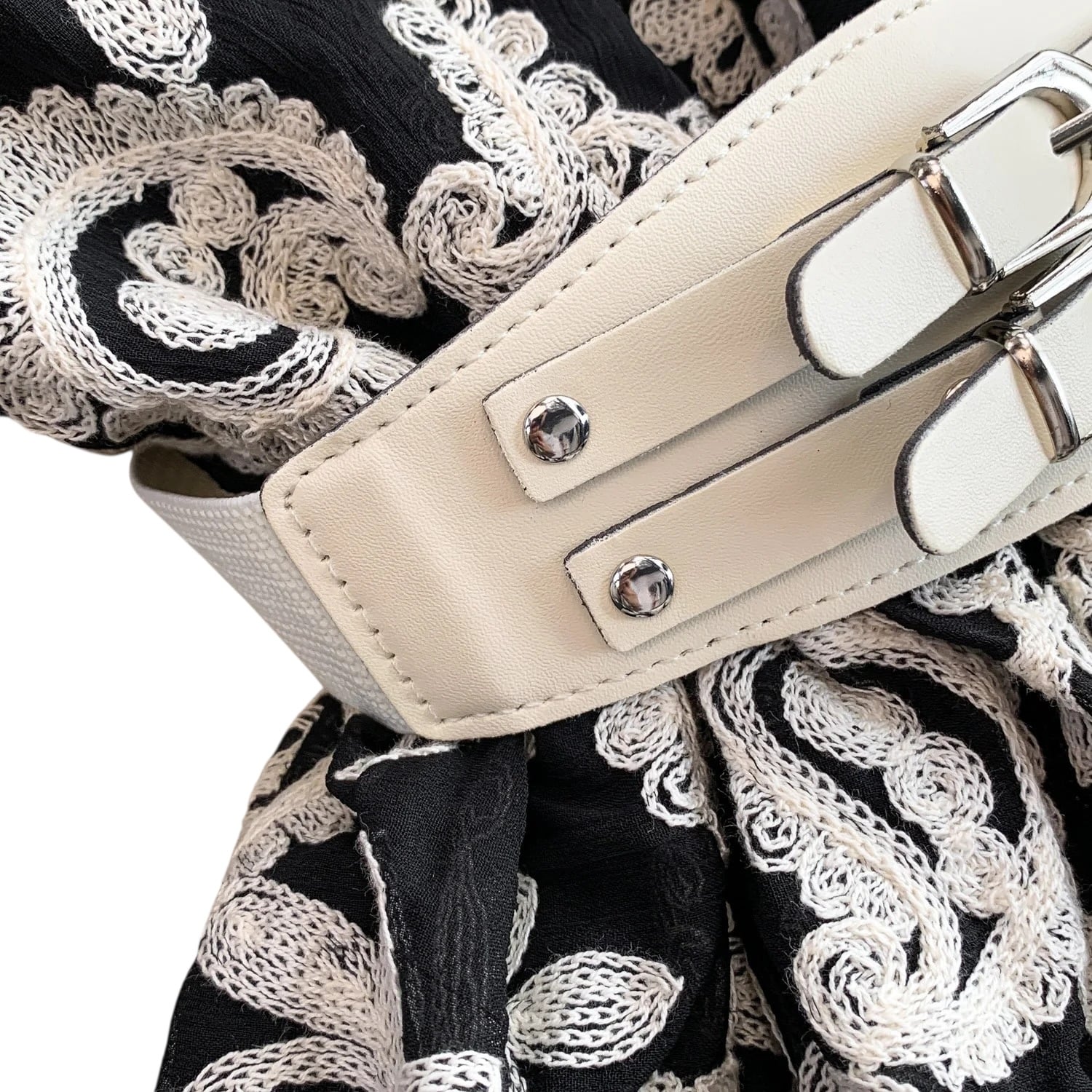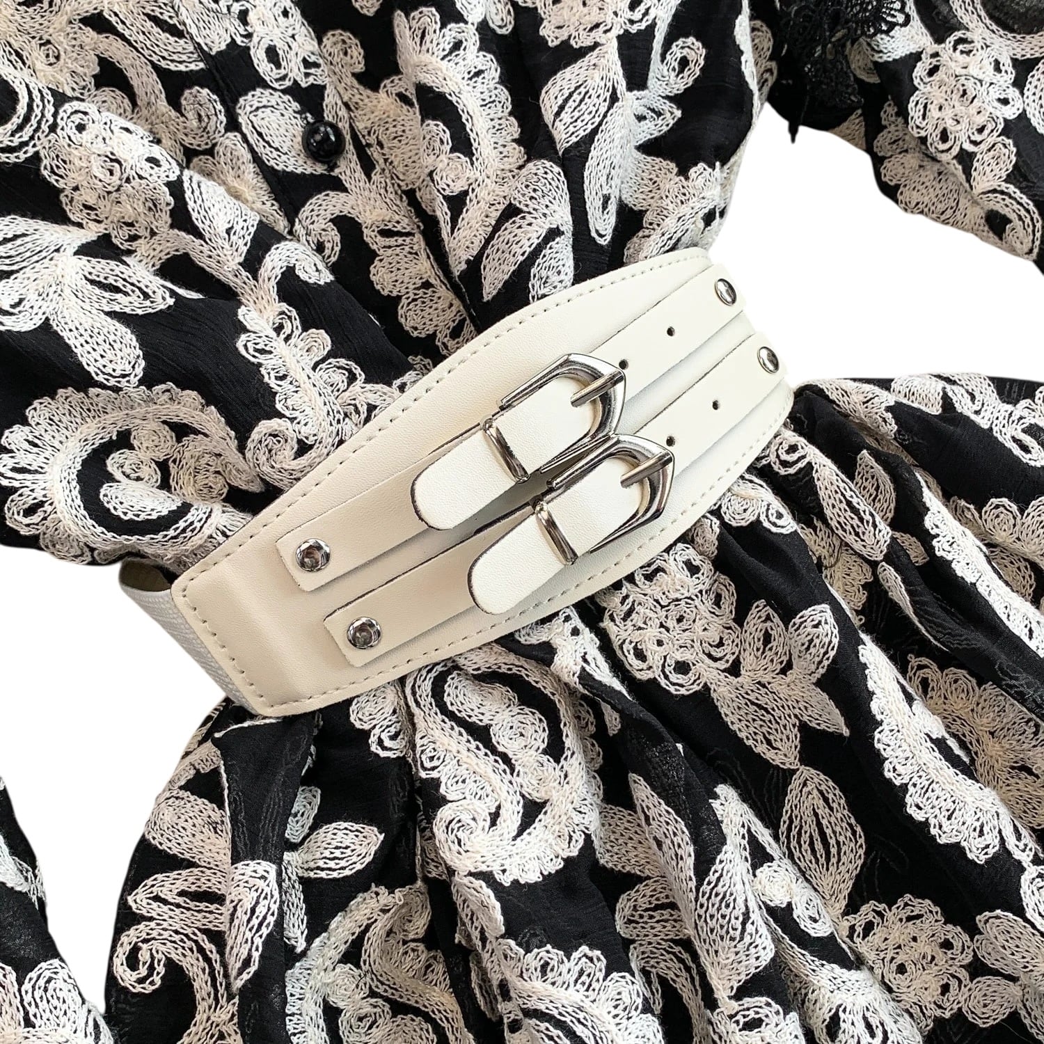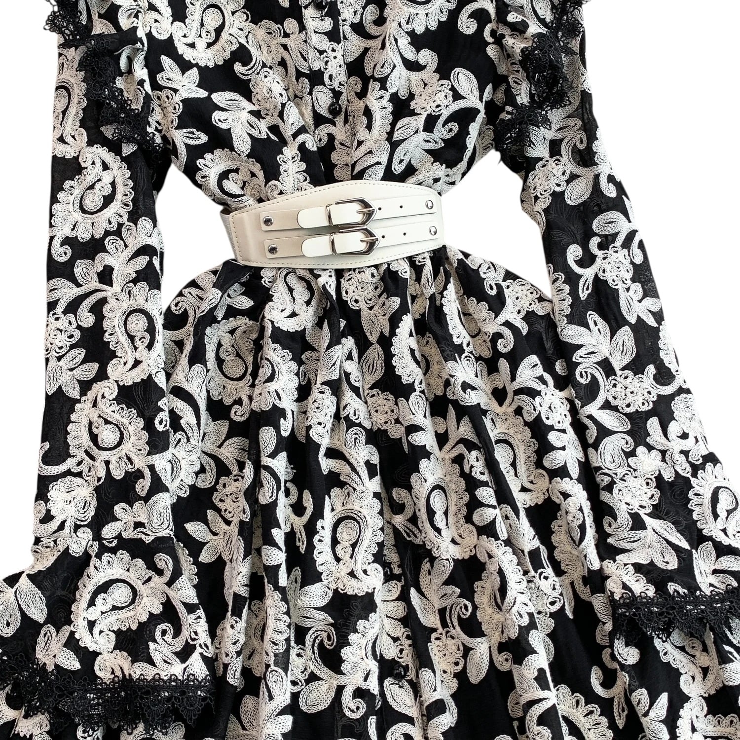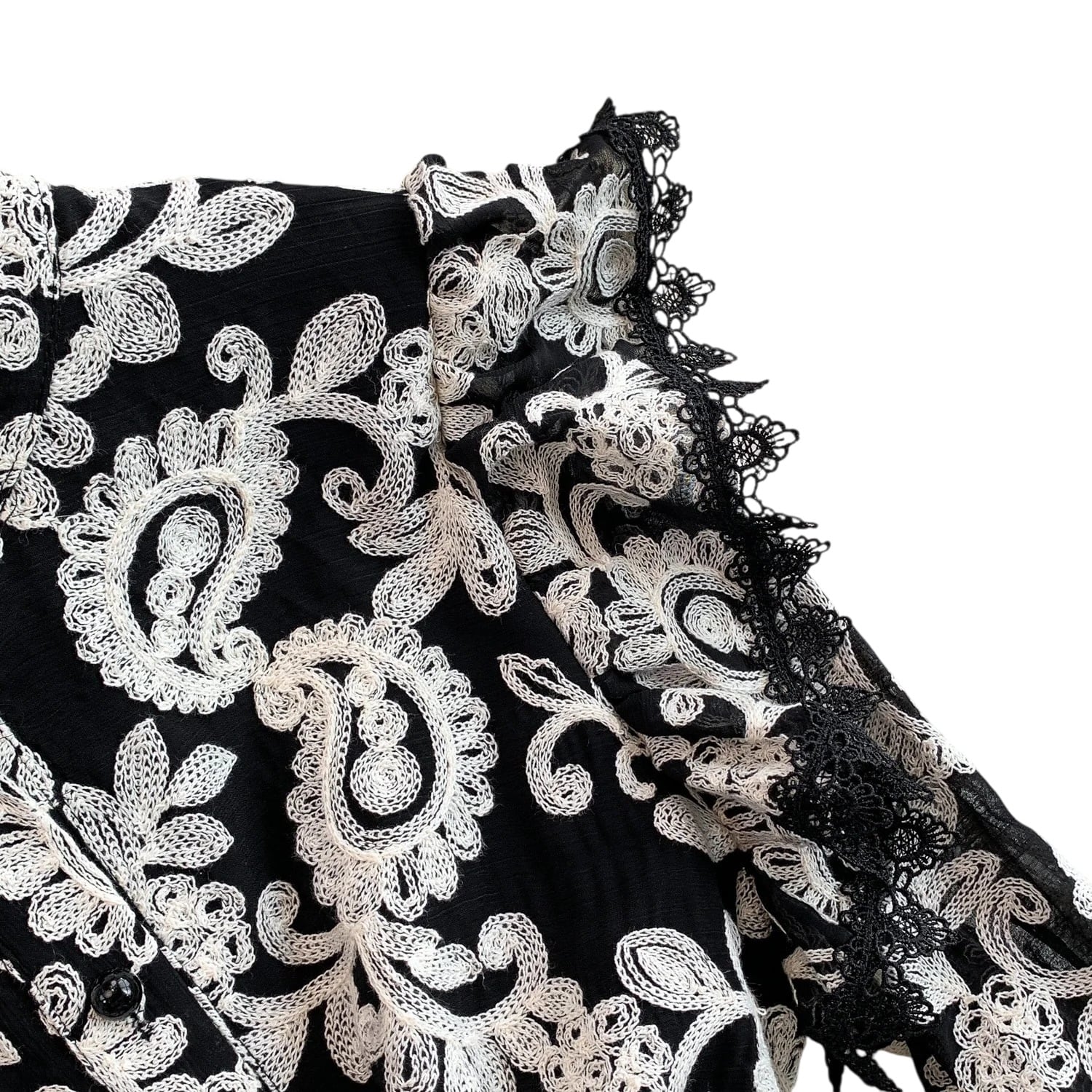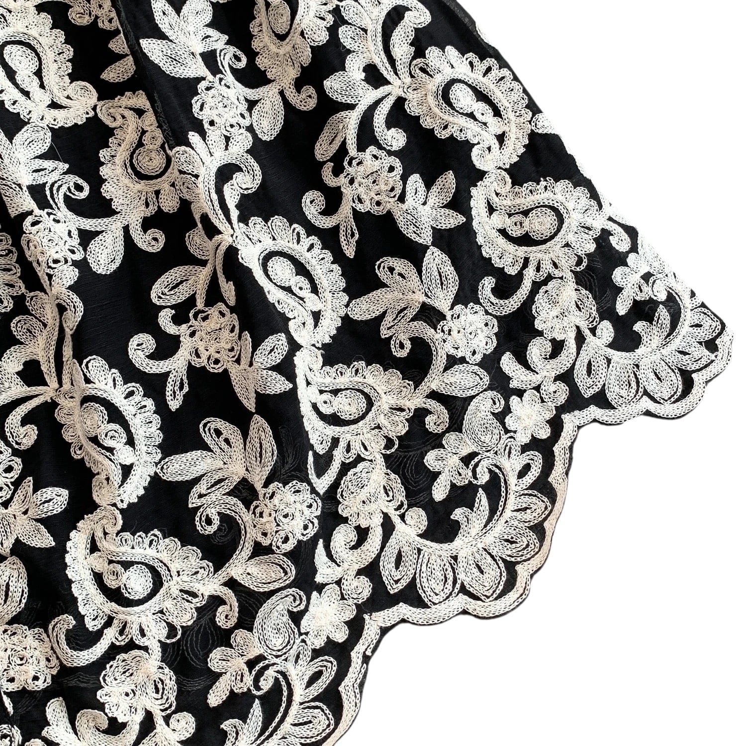■ディテール ペイズリー/エンブロイダリー/スタンドカラー/ベルスリーブ/スカラップヘム/ベルト