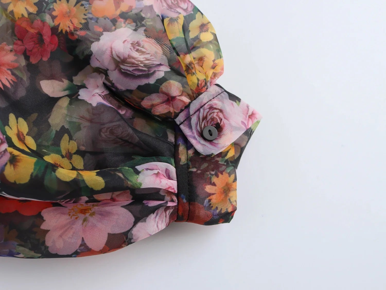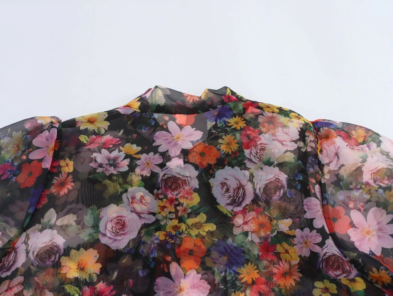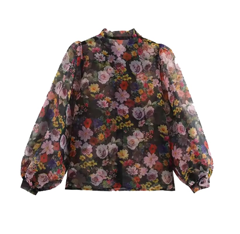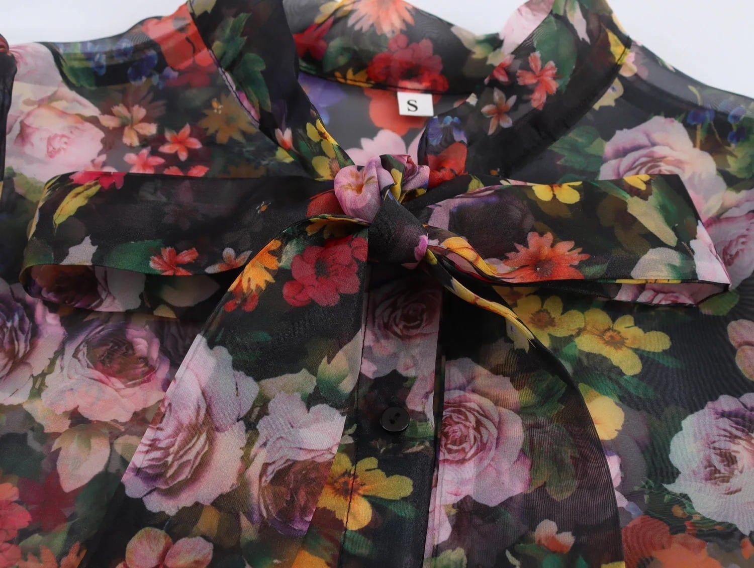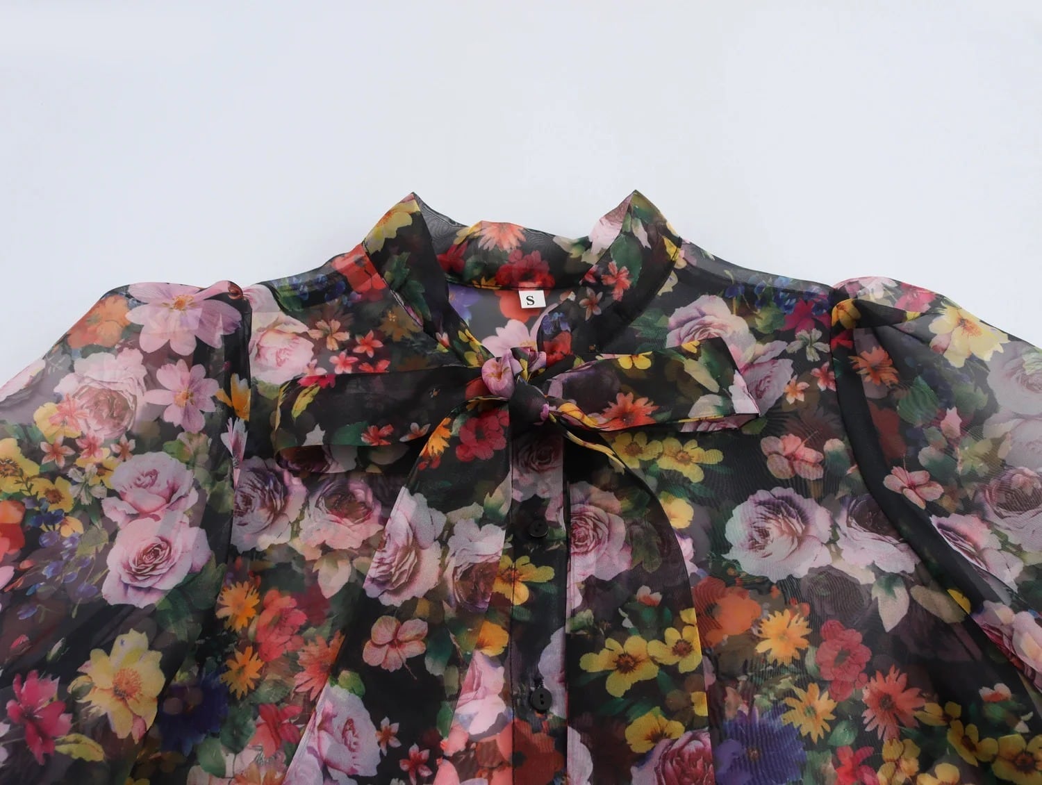 ■ディテール オーガンジー/ボウタイ/フラワーパターン/ボリュームスリーブ