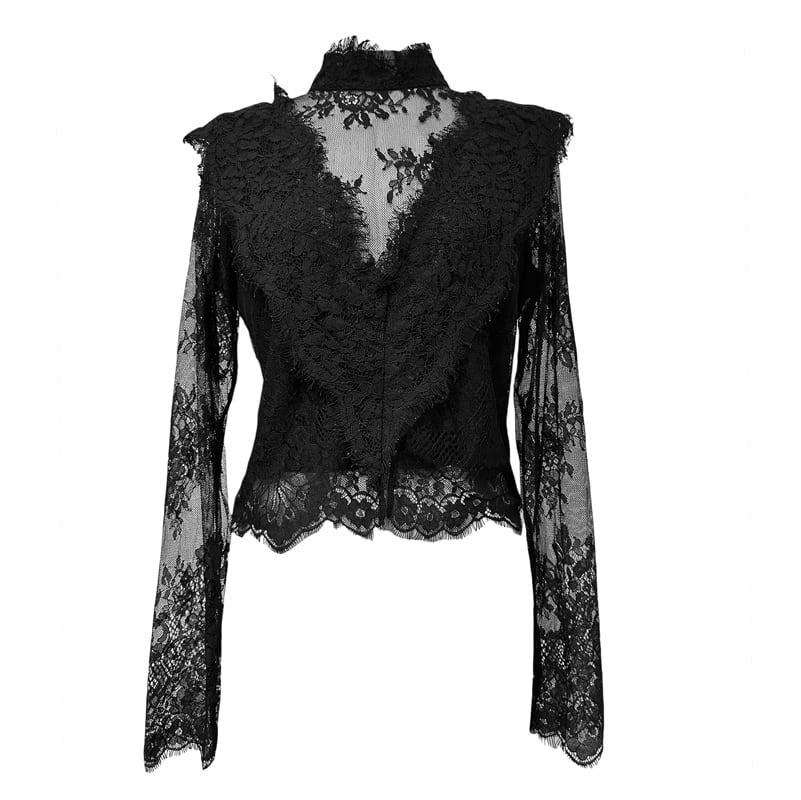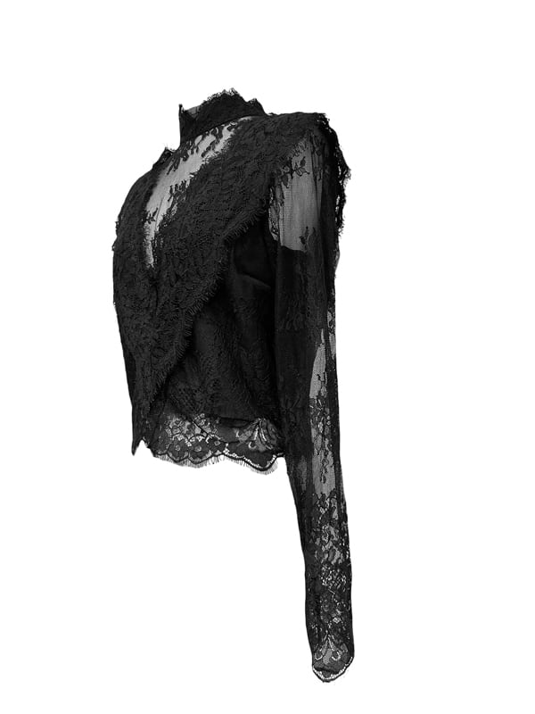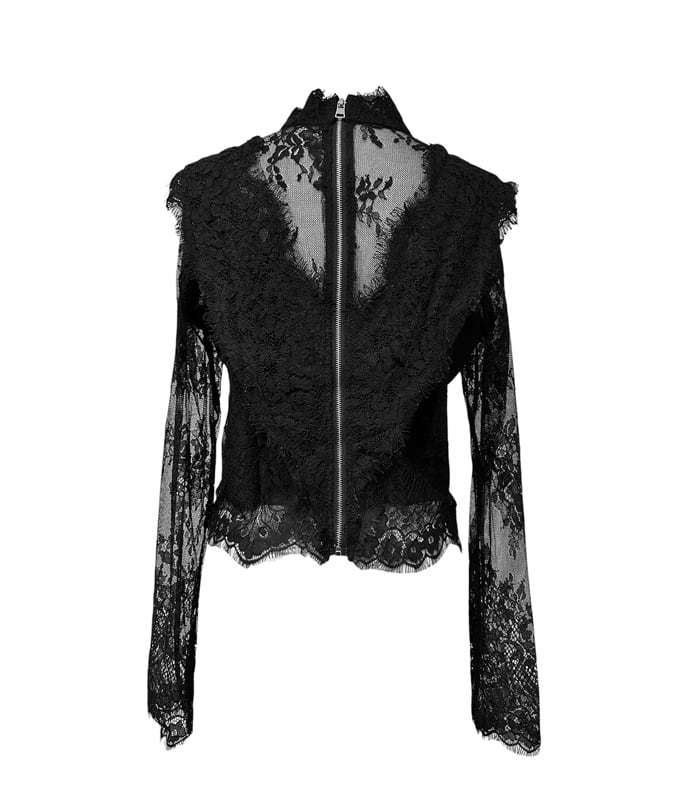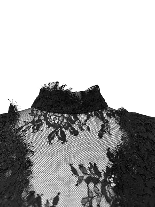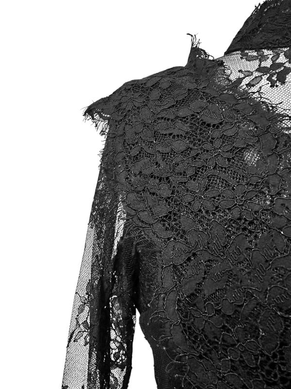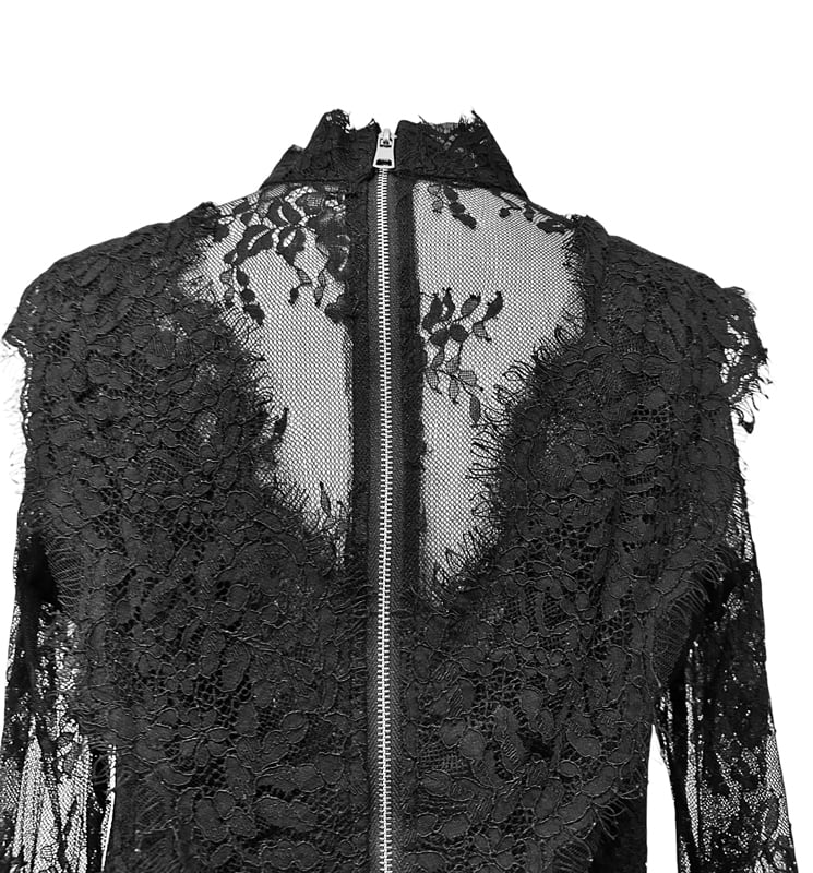 ■ディテール レース/スタンドカラー/バックジッパー/レースレイヤード