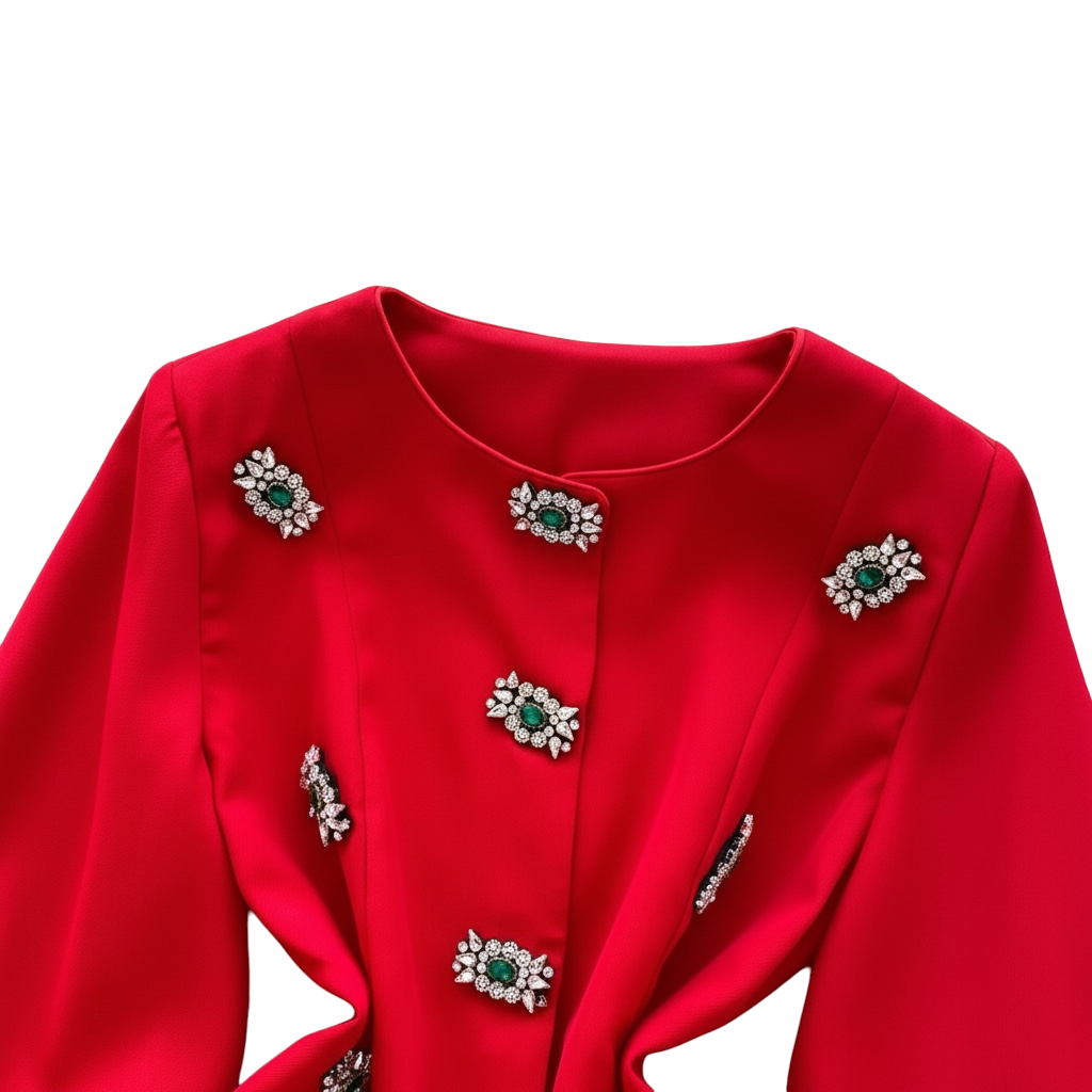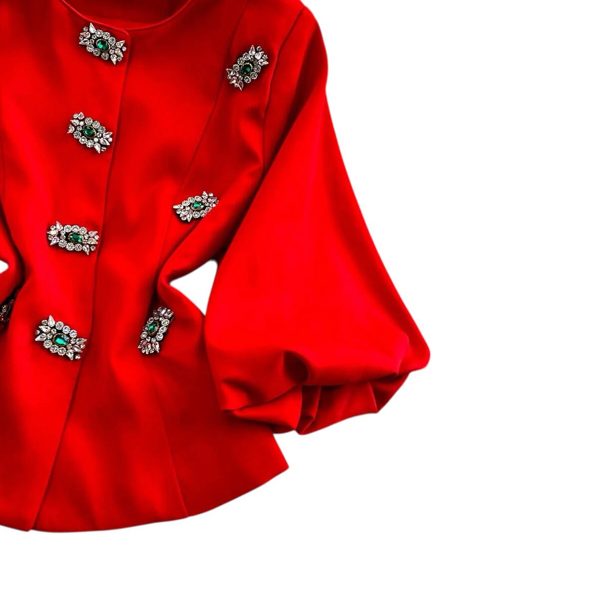■ディテール カラーレス/バルーンスリーブ/スナップボタン/ビジュー