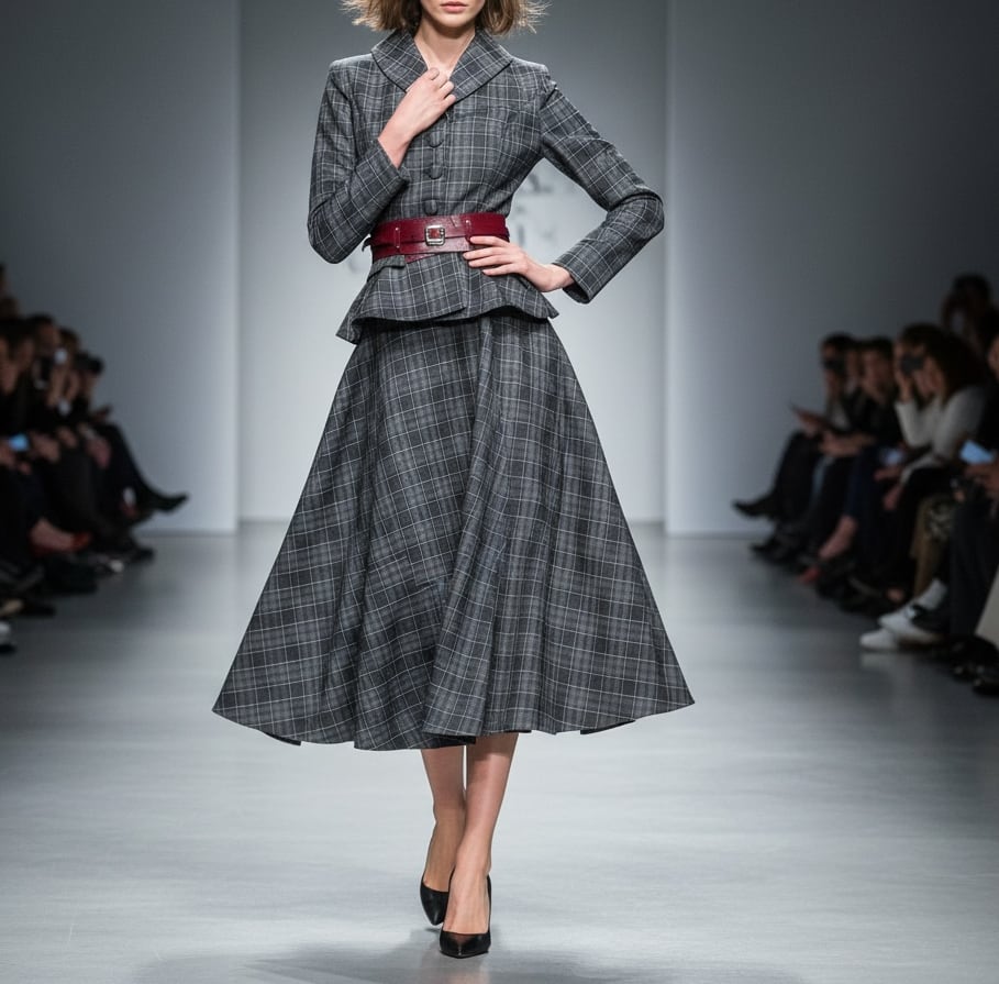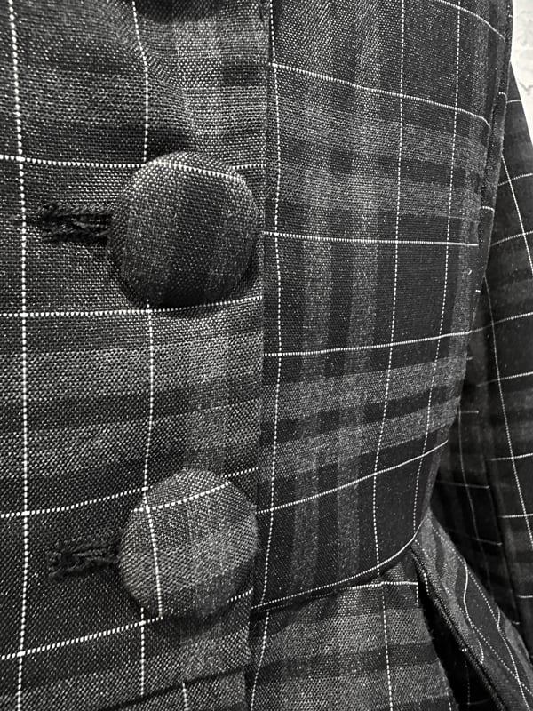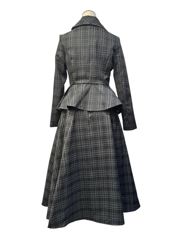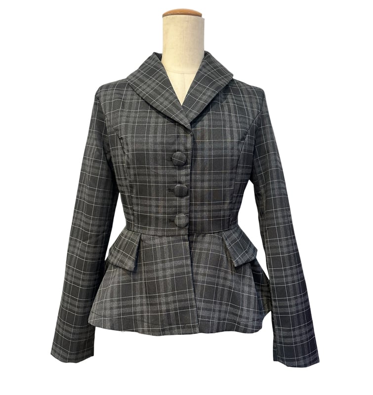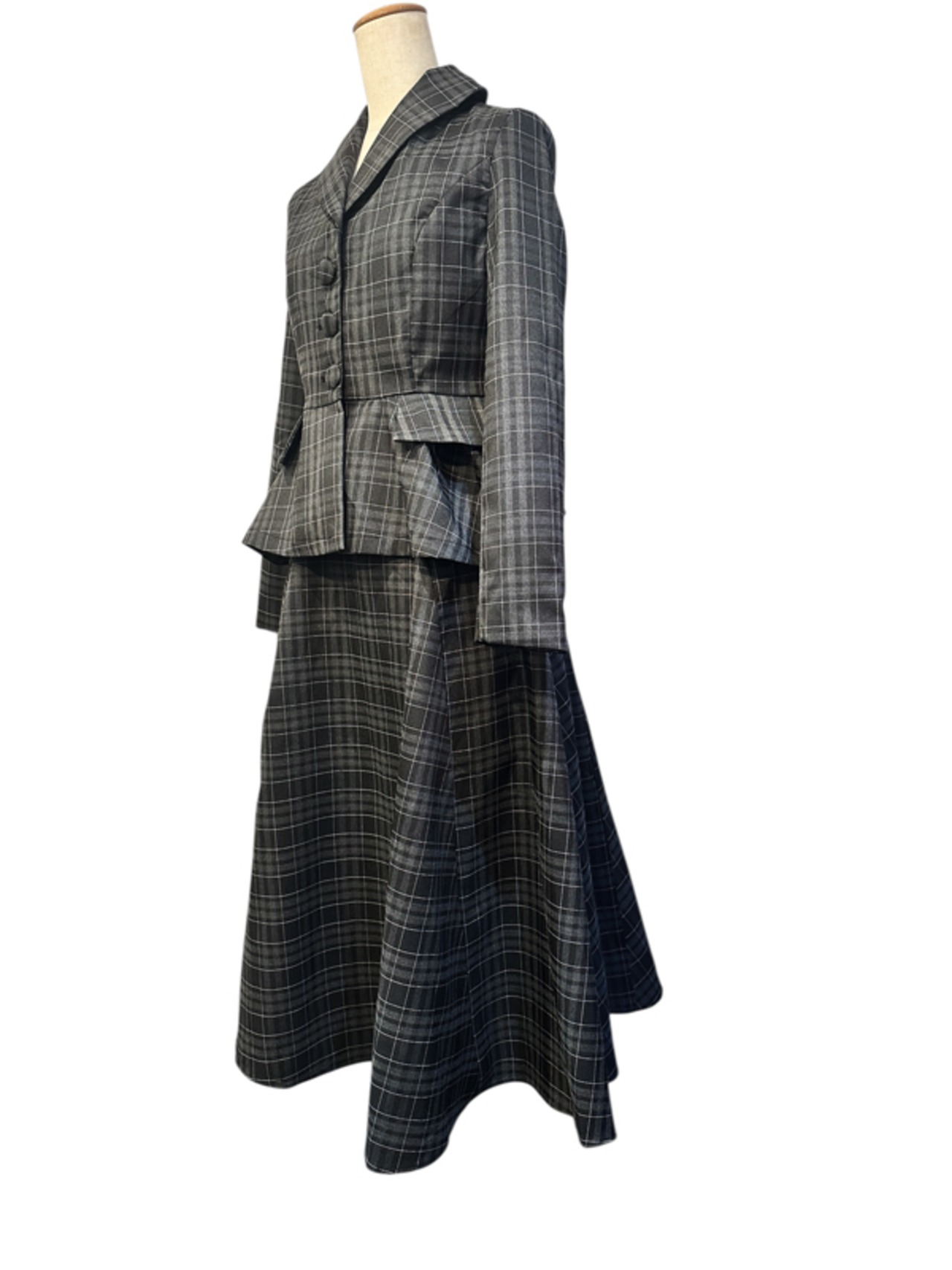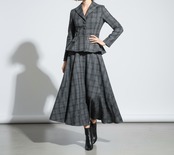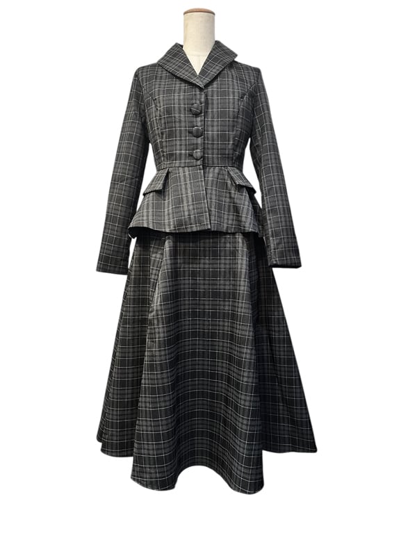 ■ディテール チェックパターン/スカートセットアップ/ペプラムジャケット/ロングスカート/フレアシルエット/ショールカラージャケット/スカートクロージャー:サイドジッパー/裏地あり