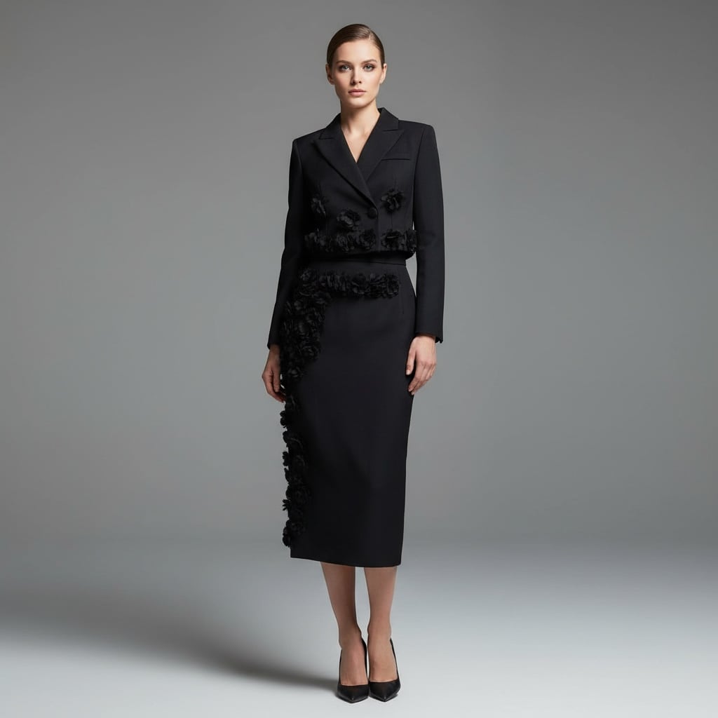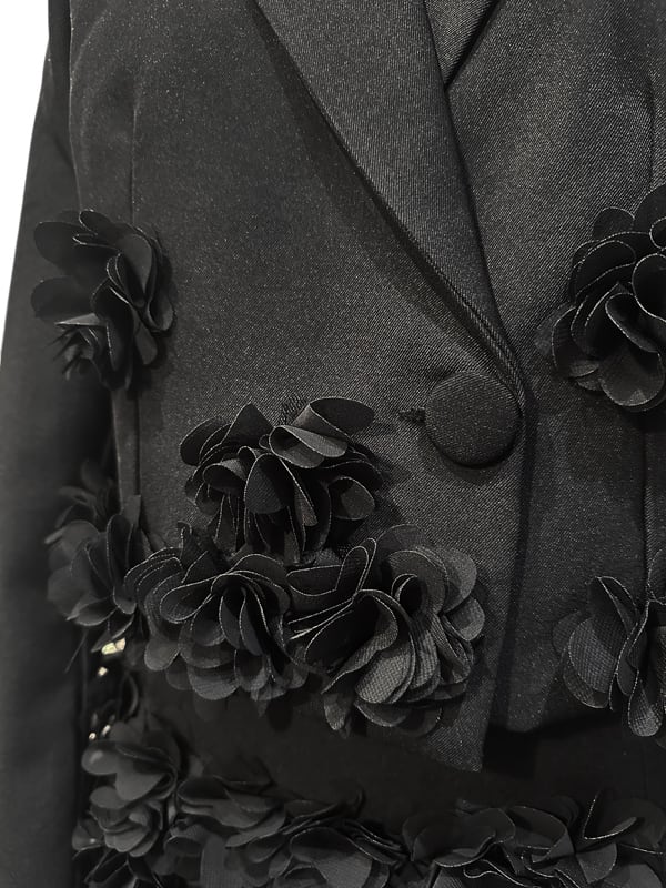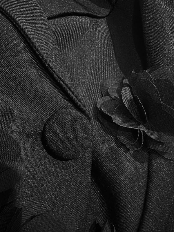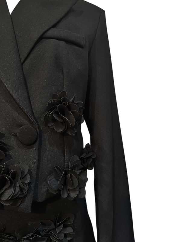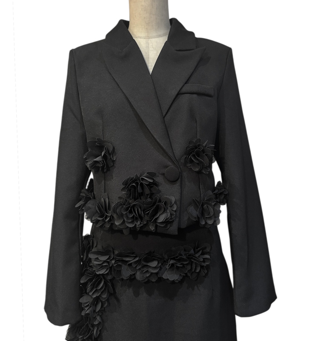■ディテール スカートセットアップ/テーラードジャケット/シフォンコサージュ装飾/タイトスカート