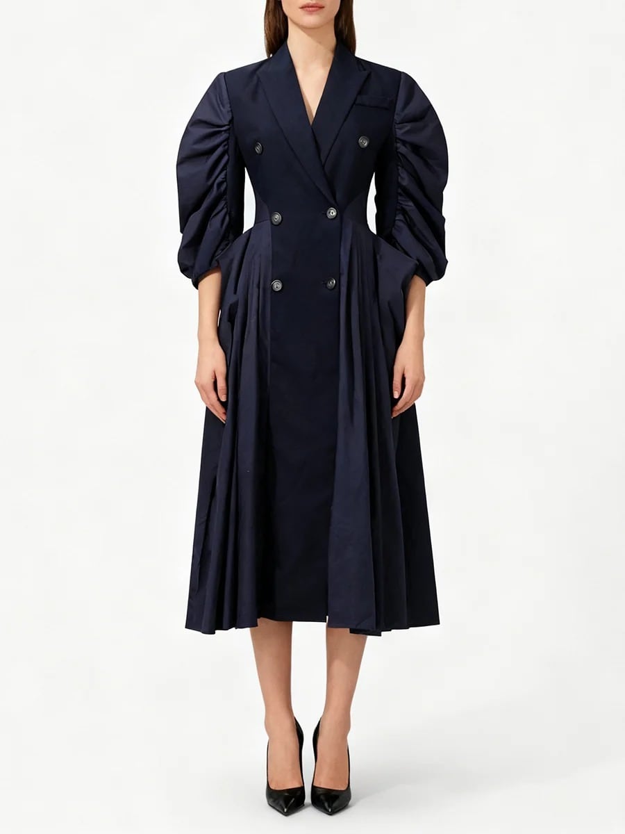 ■ディテール トレンチコート/コートワンピース/異素材切替/ギャザー/裏地