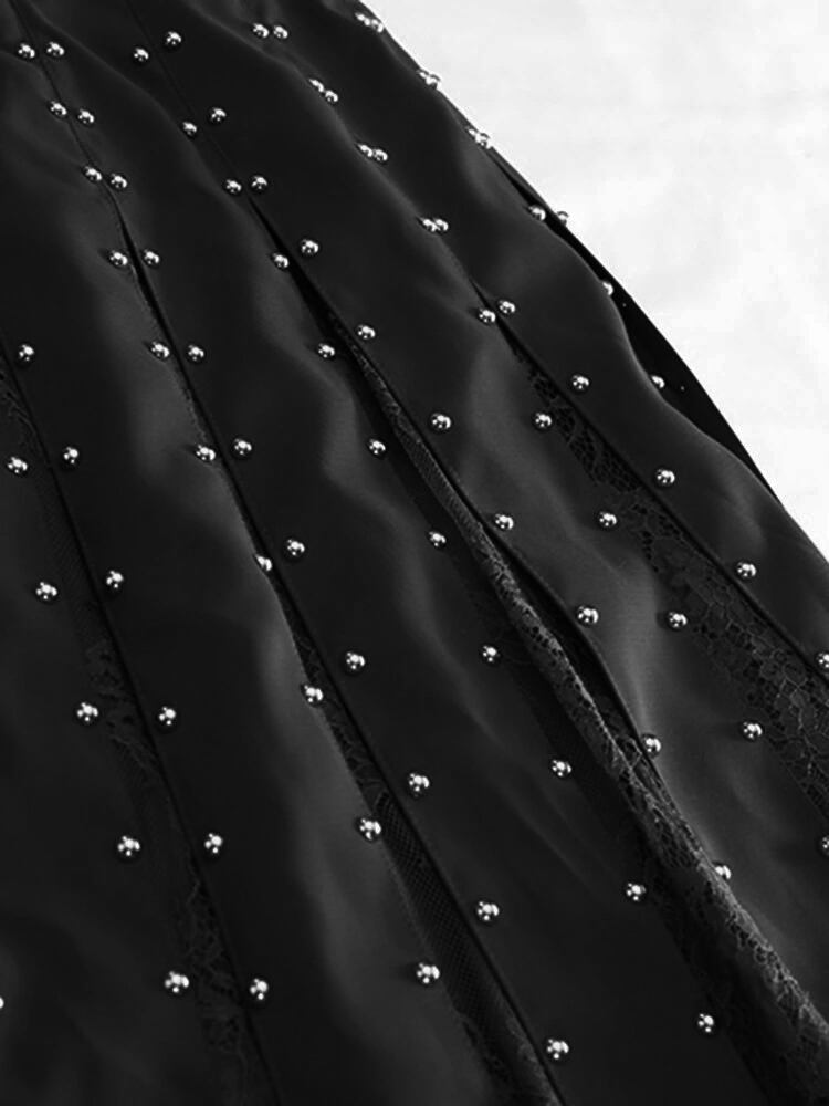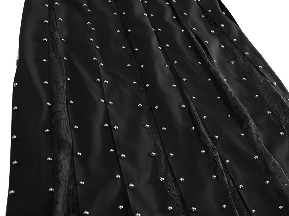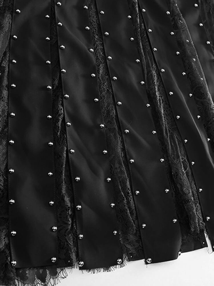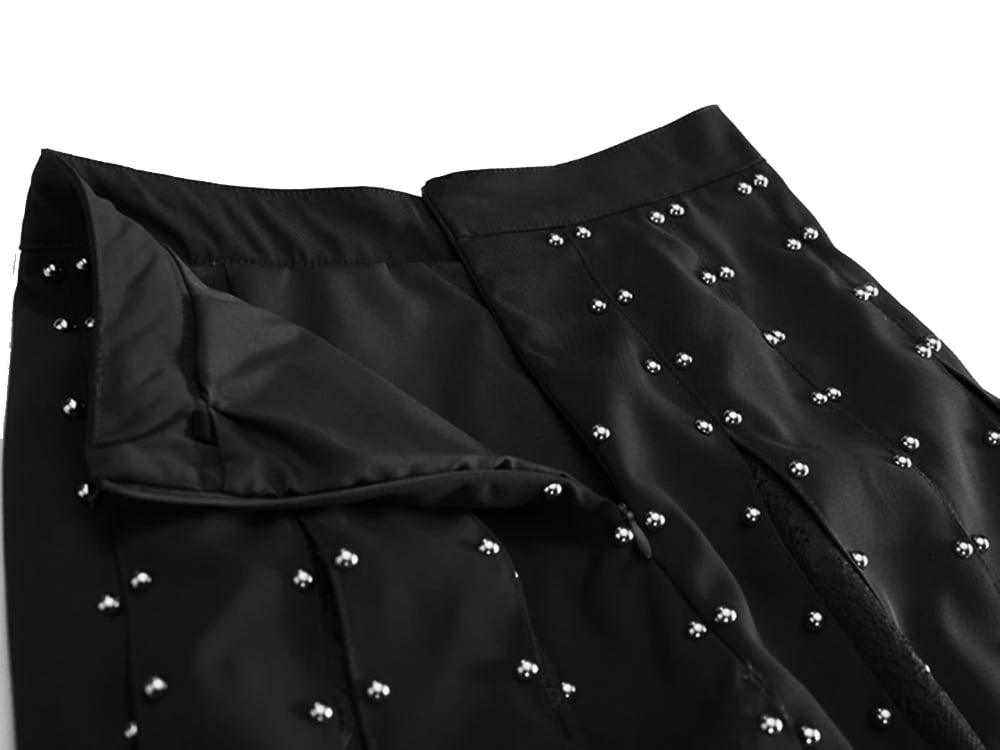 ■ディテール スタッズ/ハイライズ/スリットスカートレイヤード/レース/太ももまでの裏地/ジッパー