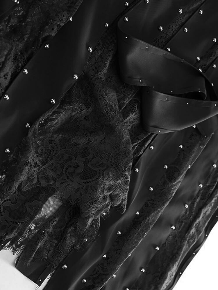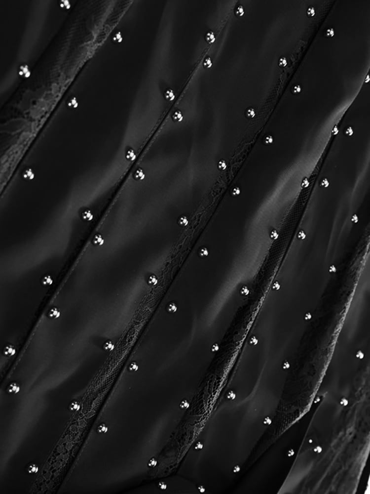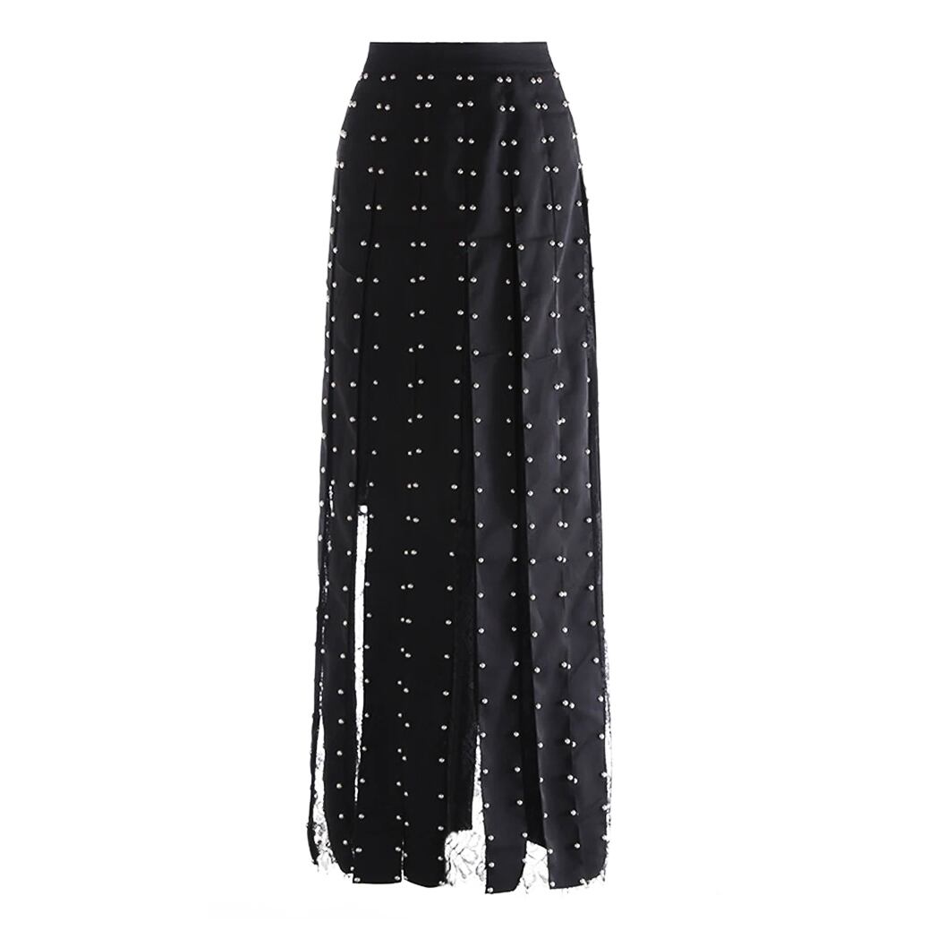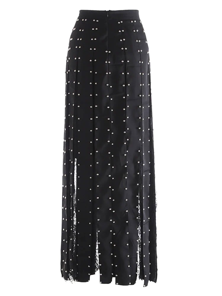 ■ディテール スタッズ/ハイライズ/スリットスカートレイヤード/レース/太ももまでの裏地/ジッパー