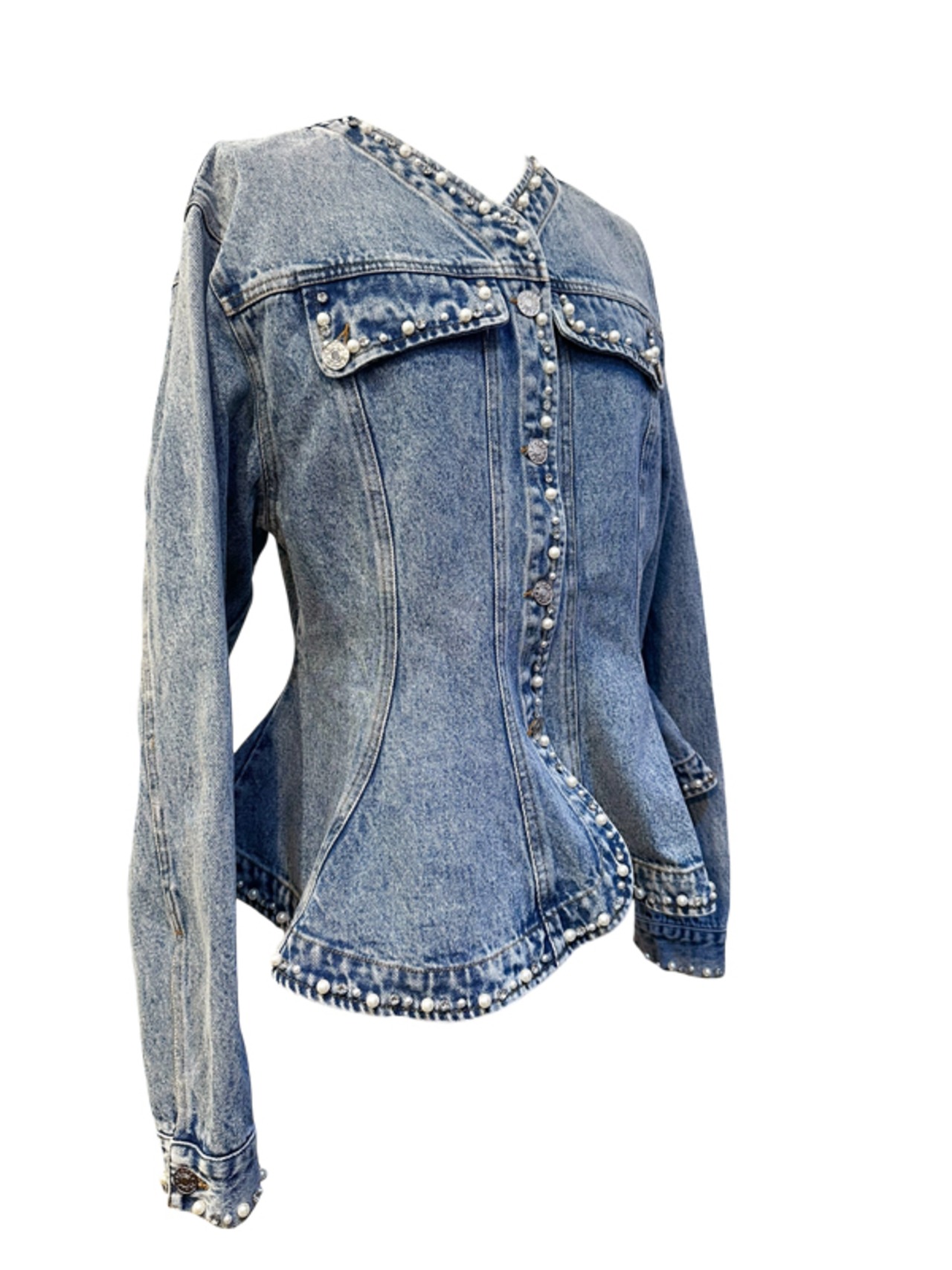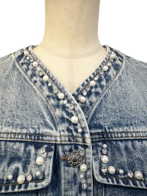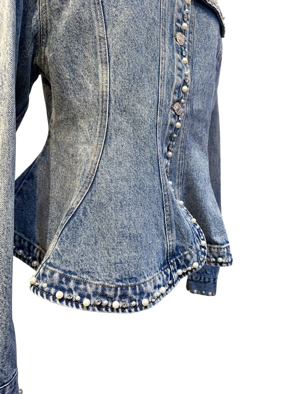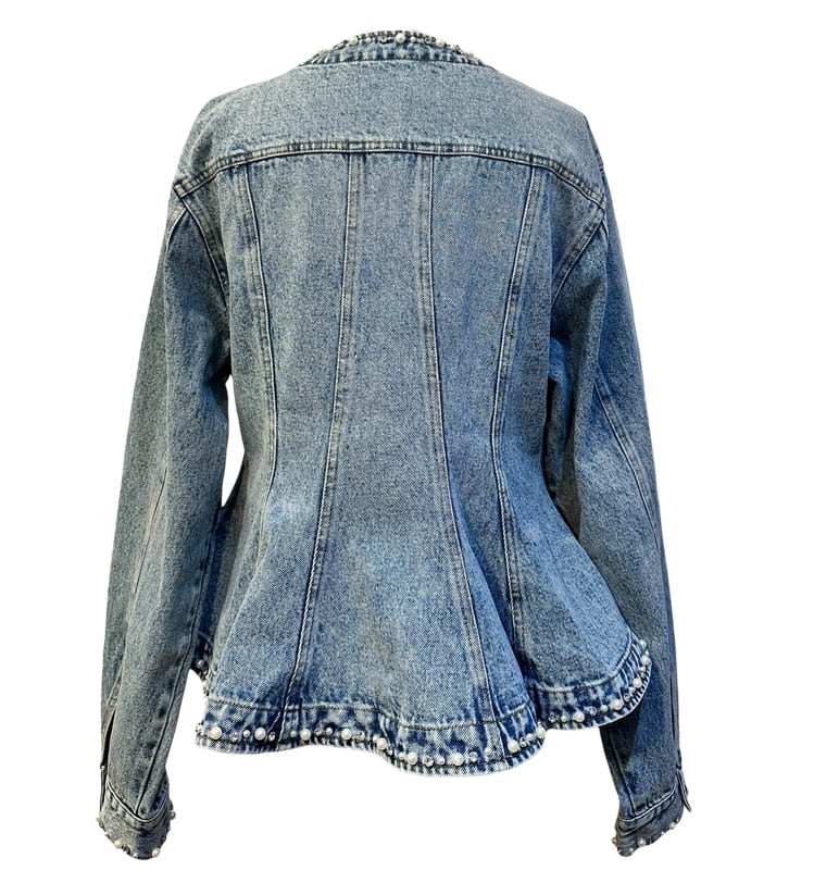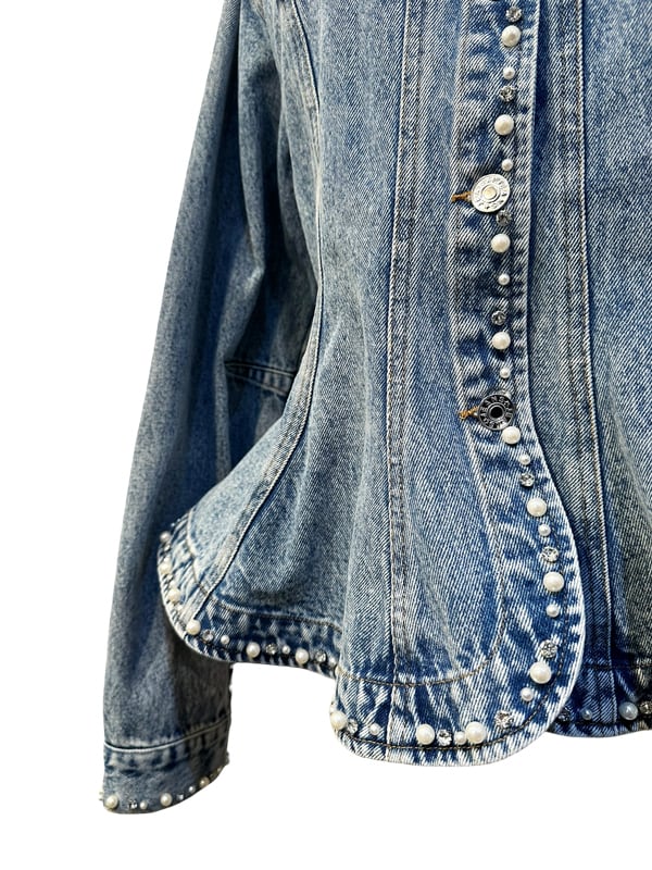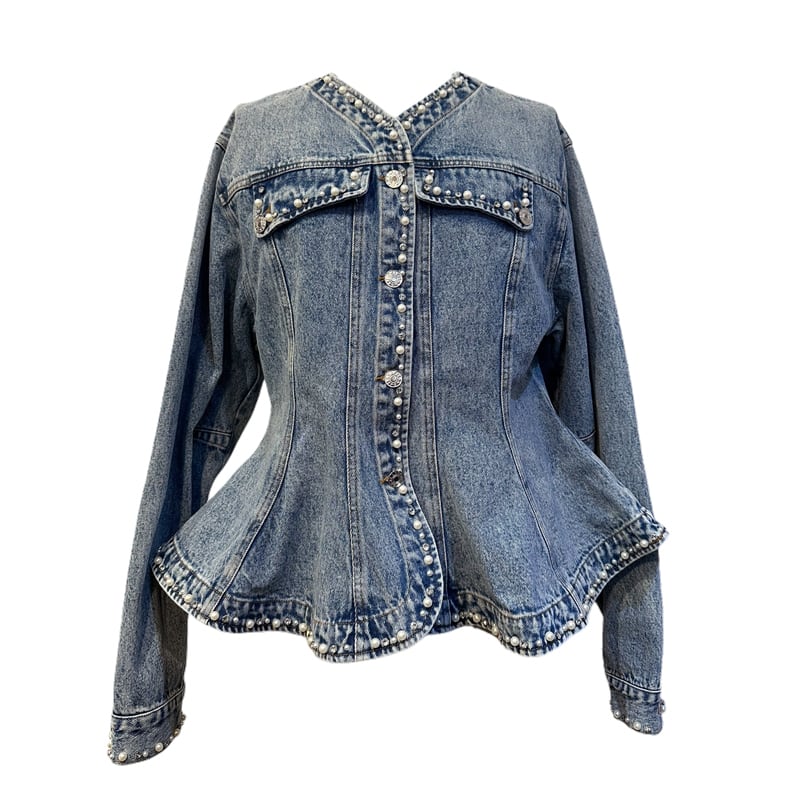 RIMI&Co. SELECT ビジューパールトリムペプラムデニムジャケット