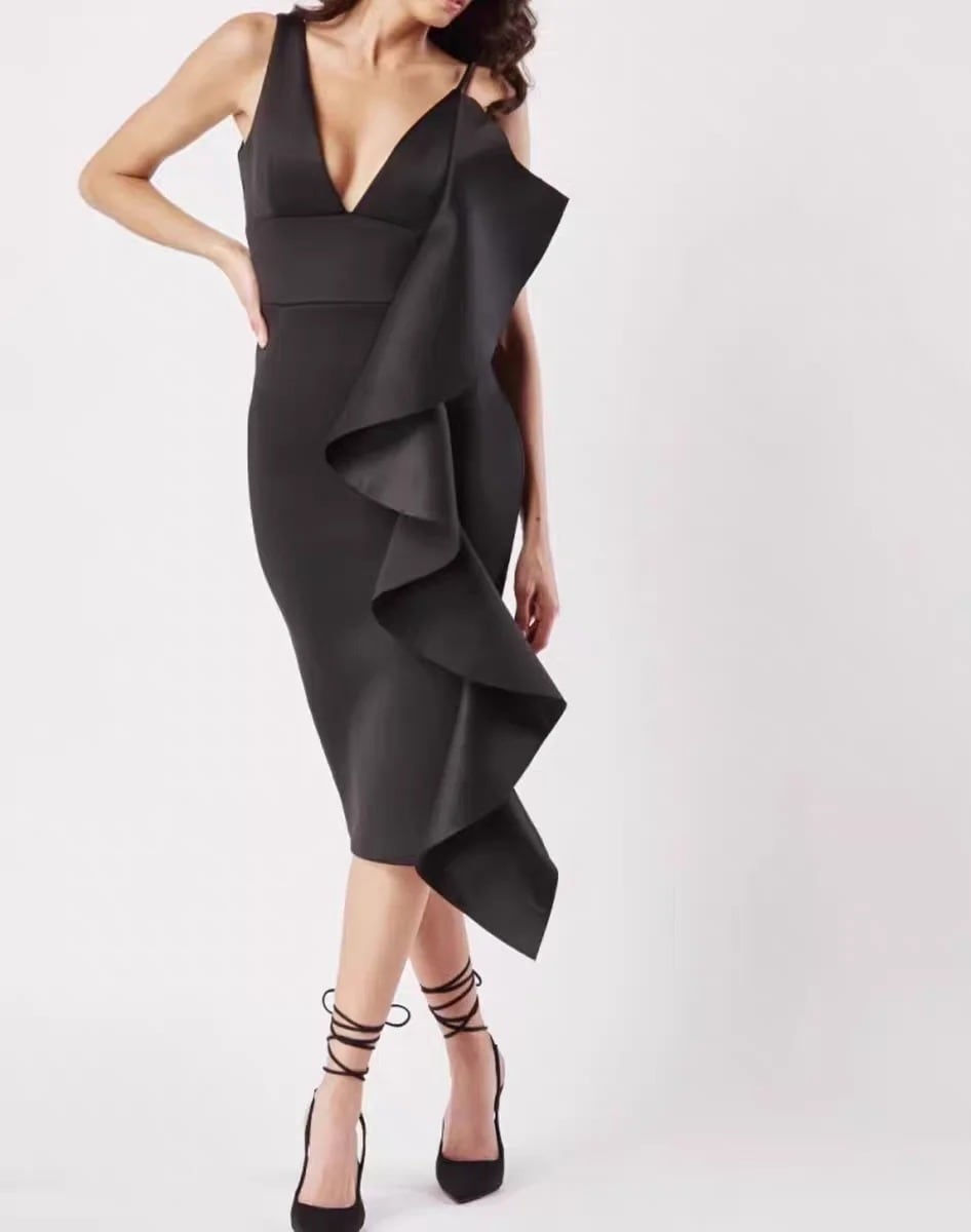 ■ディテール ネオプレン/ラッフル/ジッパー/アシンメトリー/裏地なし