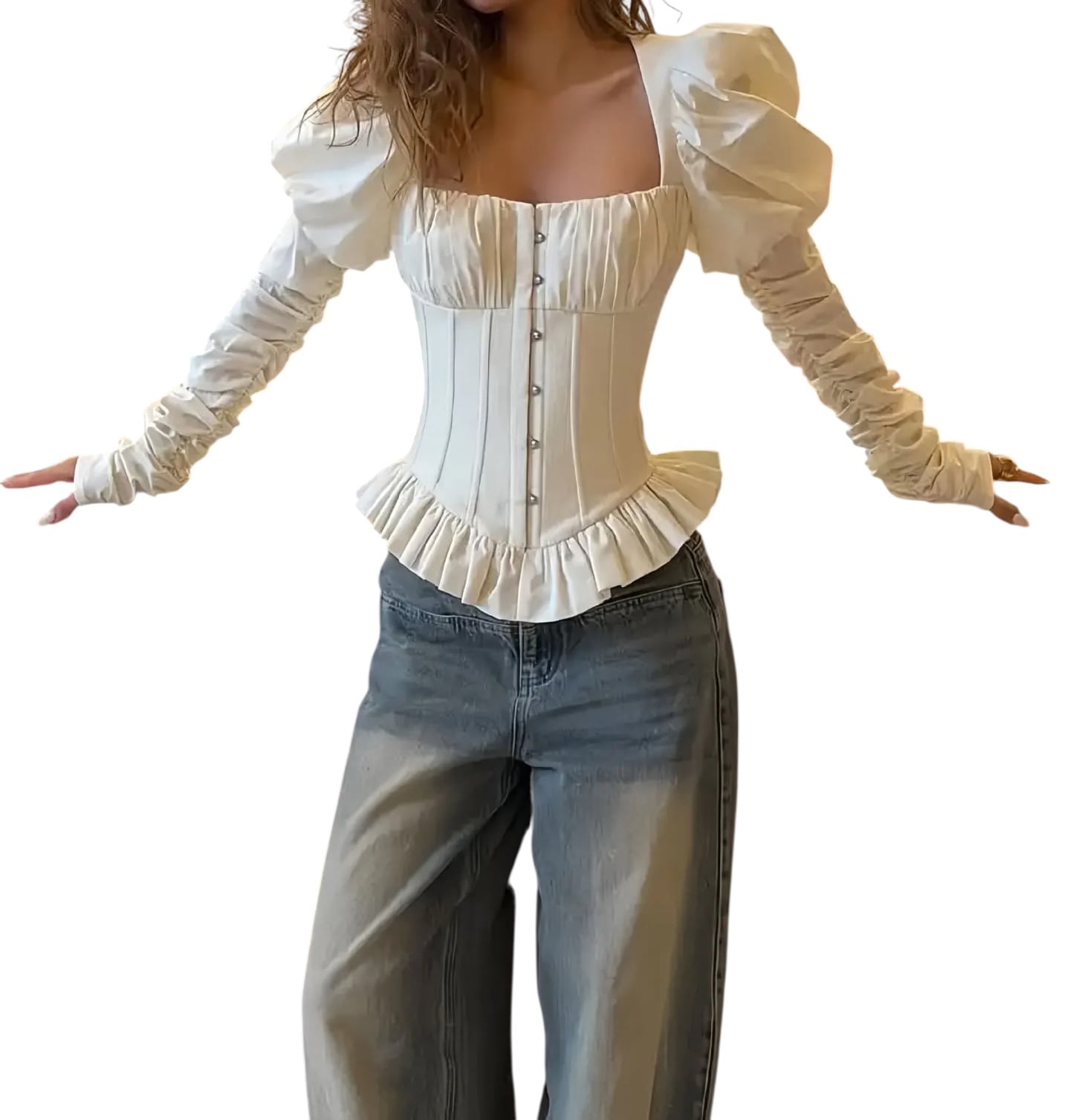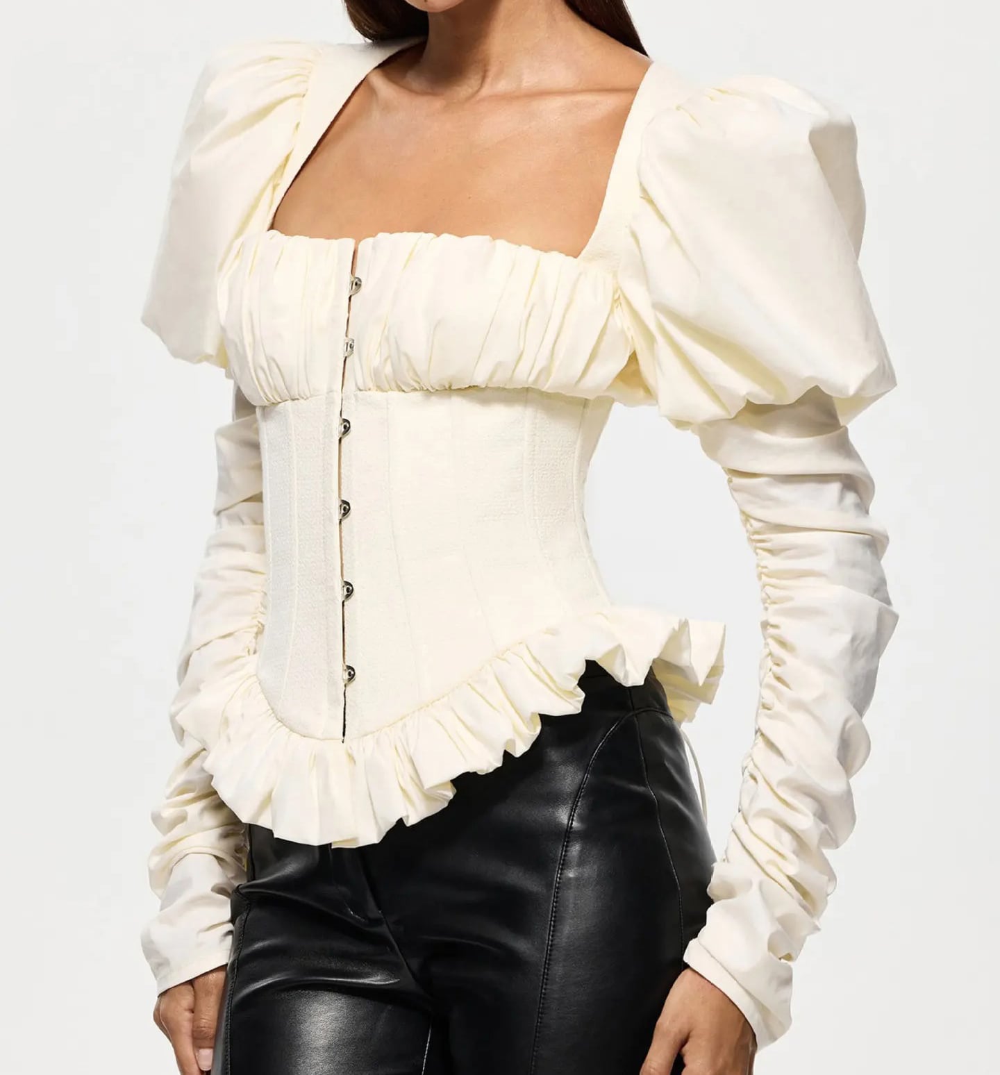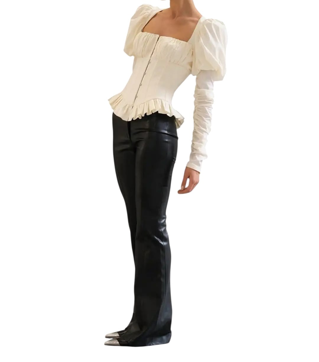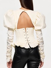 ■ディテール コルセット風/メタルワイヤー/バックスタイル:レースアップ/フロント開閉/パフスリーブ/袖にゴムのギャザー