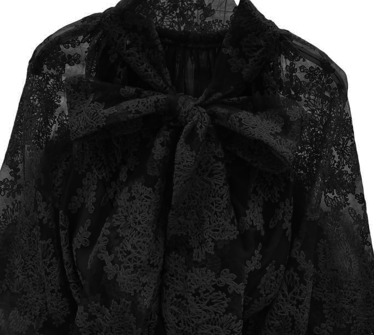 ■ディテール ボウタイ/レース/チュールにエンブロイダリー/身頃部分裏地あり