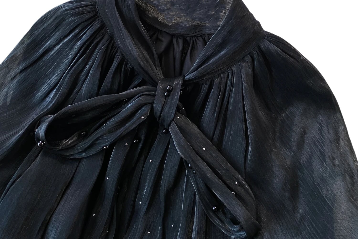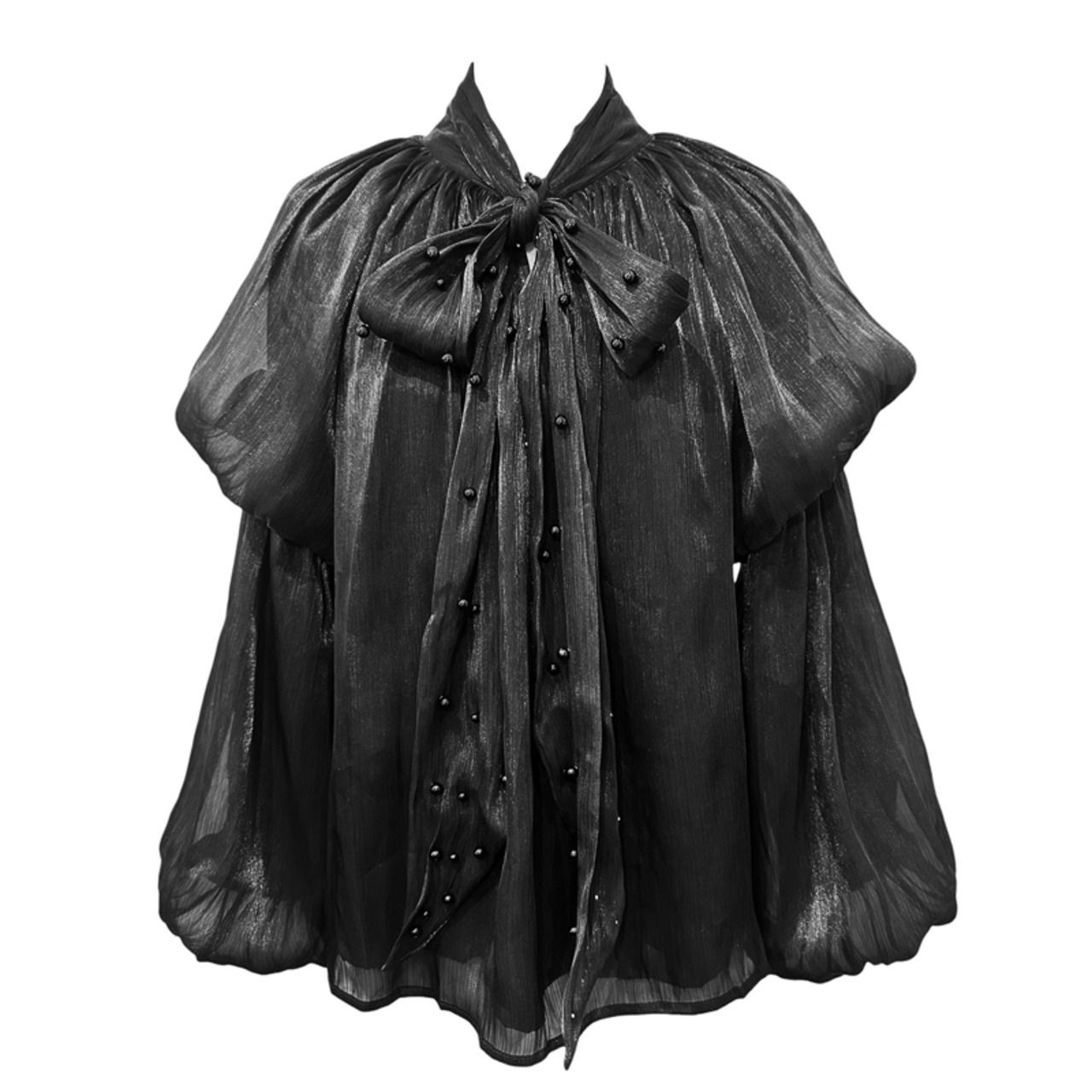 ■ディテール メタリックシフォン/ダブルパフスリーブ/ボウタイ/プルオーバー