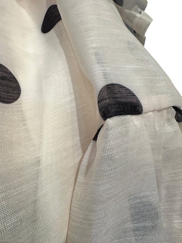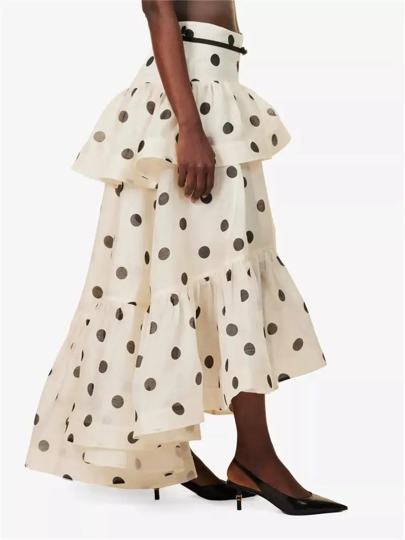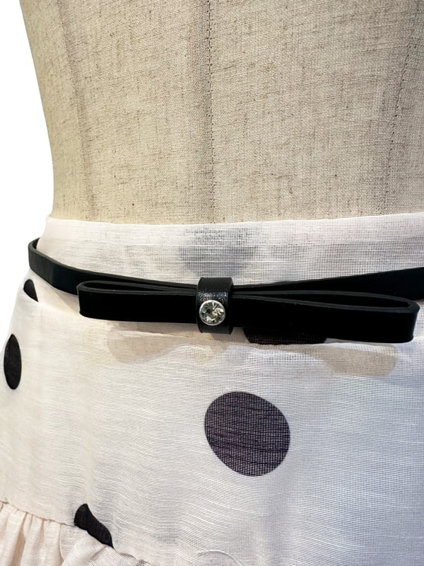 ■ディテール ティアード/リボンベルト/ポルカドット/ラッフル/後ろウエストゴムのギャザー/サイドジッパー/後ろ丈長め/裏地あり