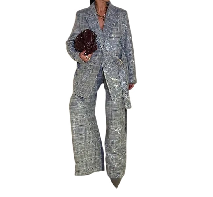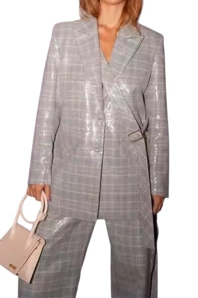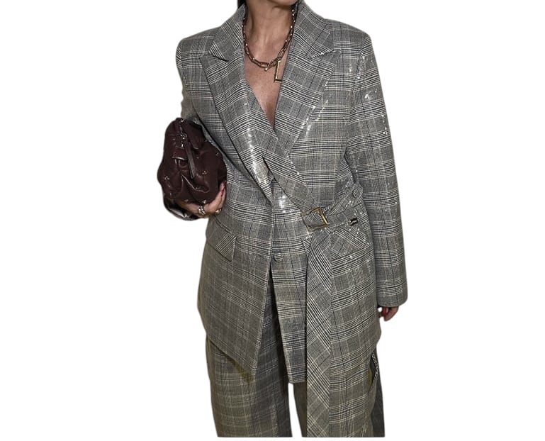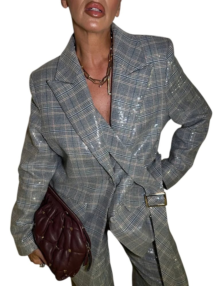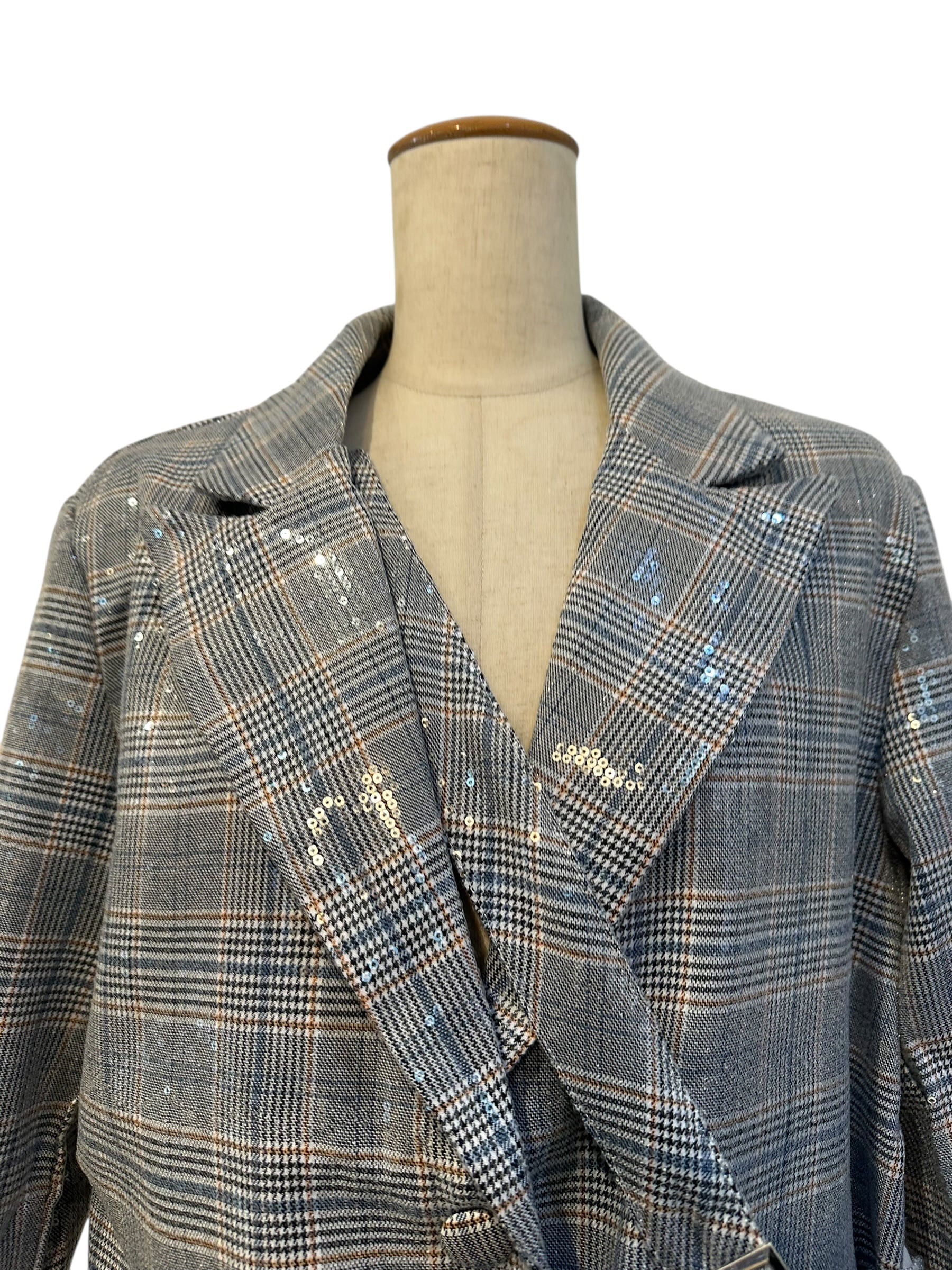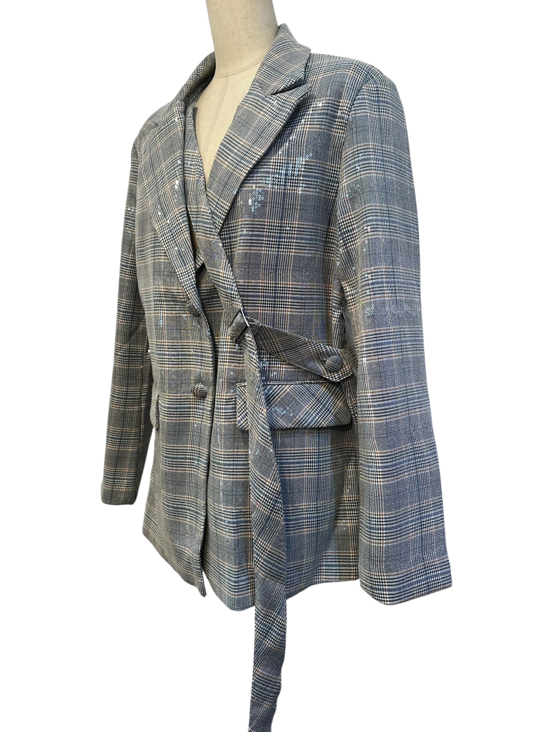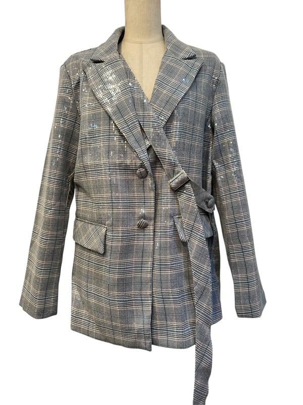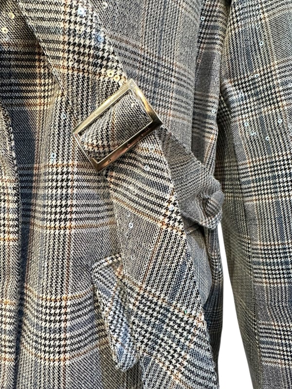 ■ディテール テーラードジャケット/ベルト/ワイドフィット/グレンチェック/スパンコール/ポケット