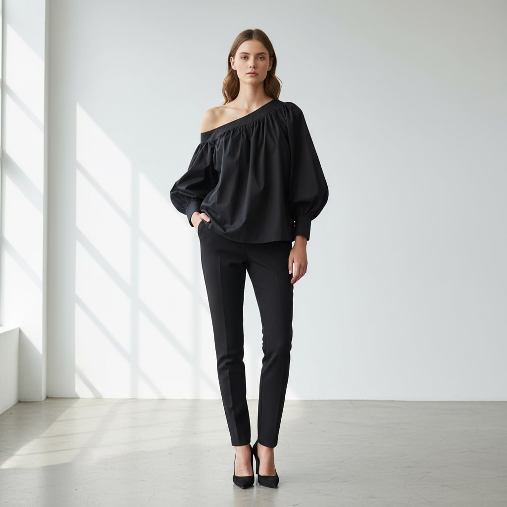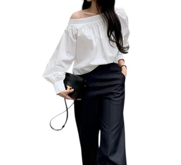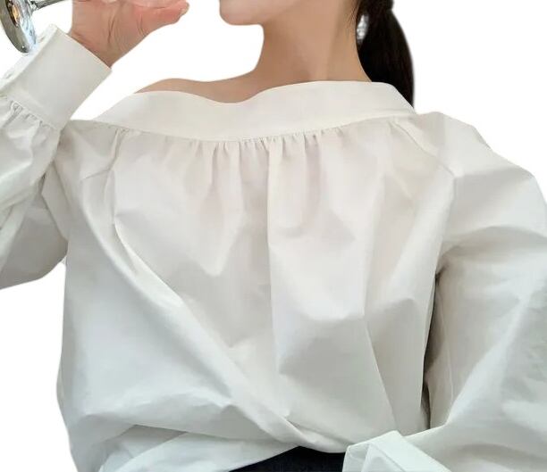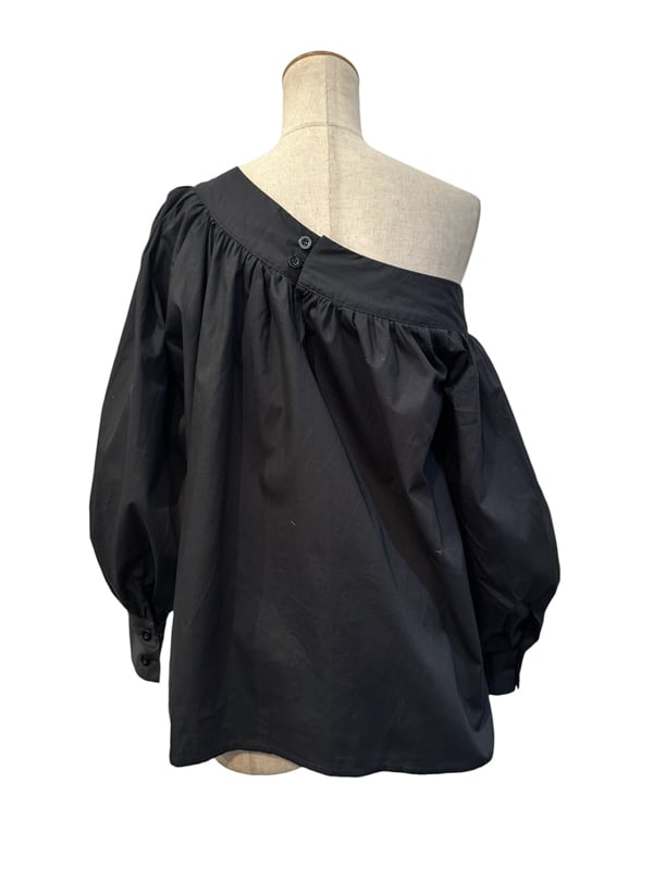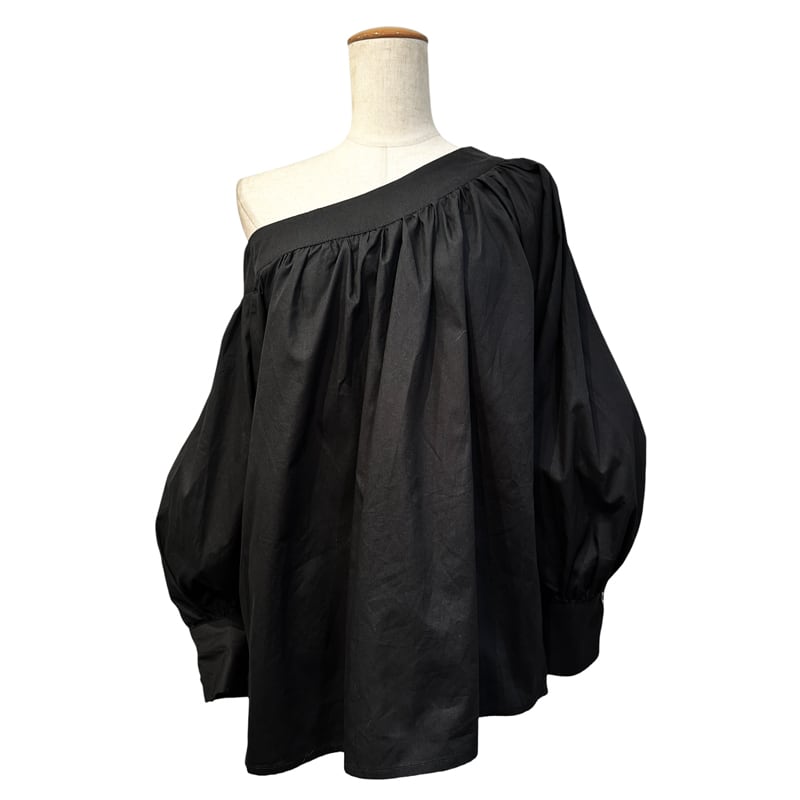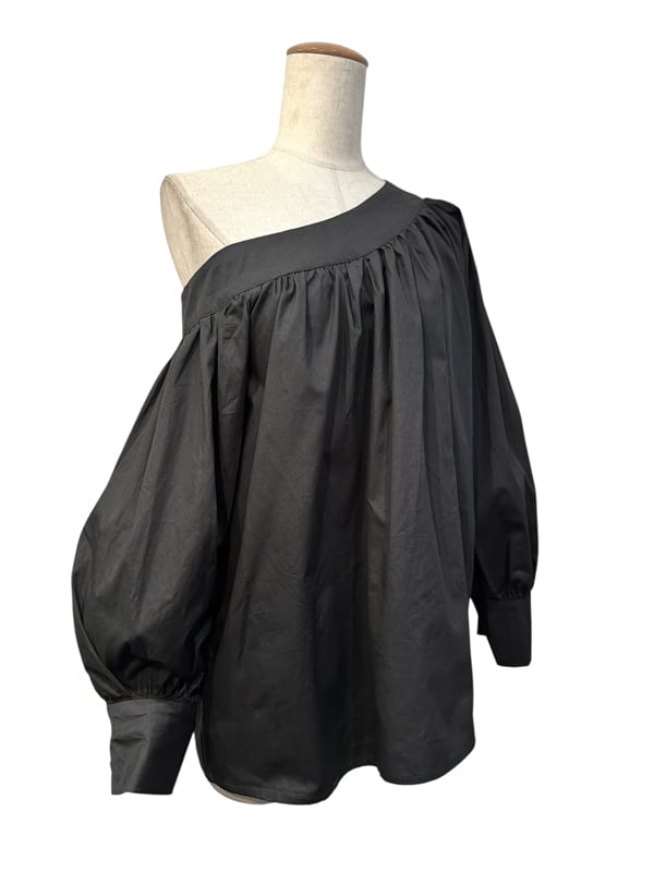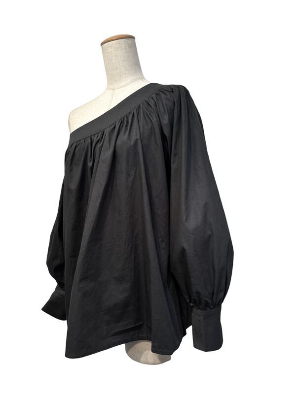 ■ディテール ブロードクロス/ボリュームスリーブ/アシンメトリー/オフショルダー/フレアシルエット