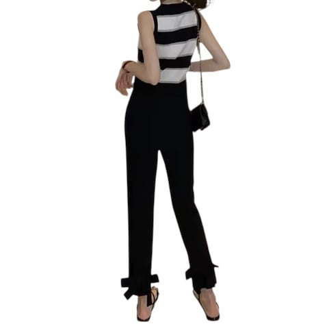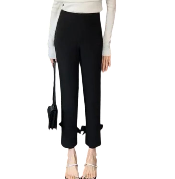 ■ディテール 裾にリボン/サイドジッパー/ハイライズ/ストレート