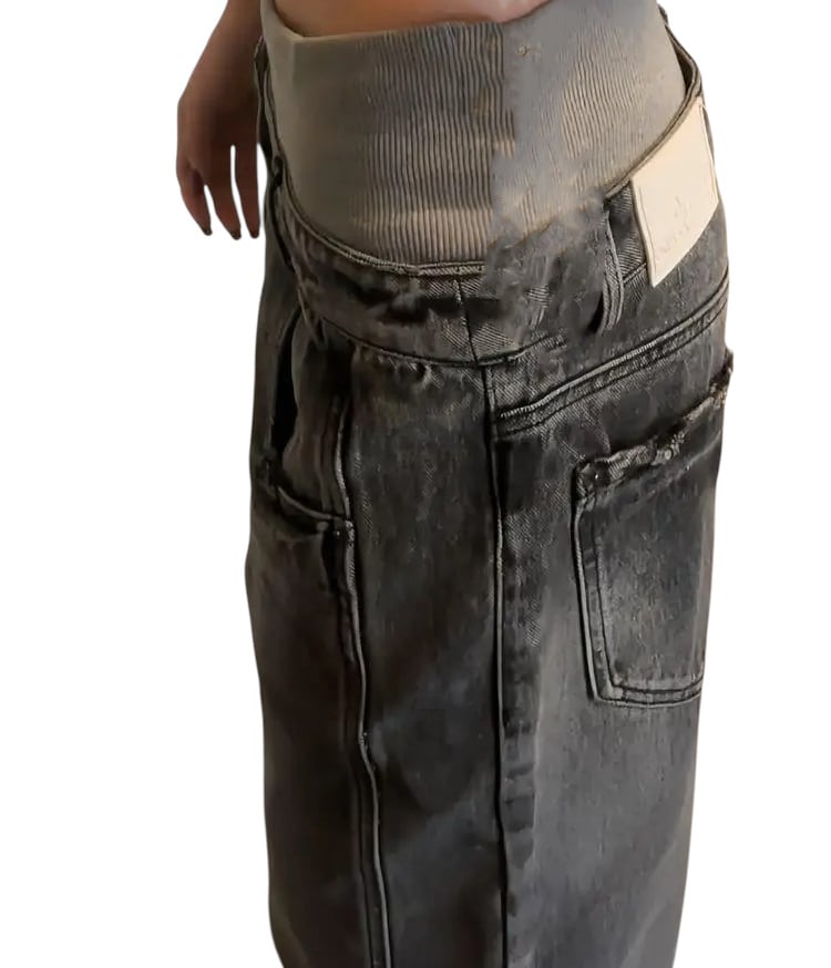 ■ディテール ダブルウエスト/リブニット切り替え/サイドジッパー/ワイド