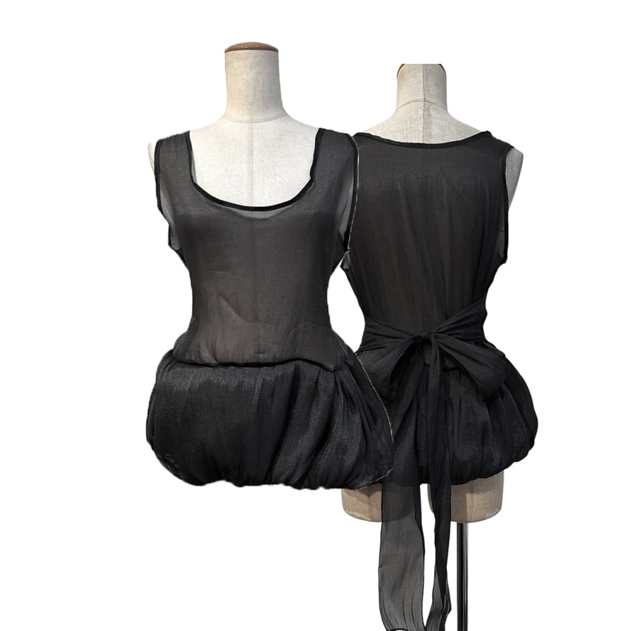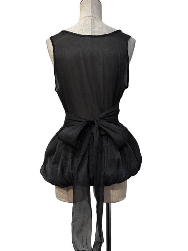 ■ディテール シアー/バルーンヘム/リボン/クルーネック/プルオーバー/ワイドフィット