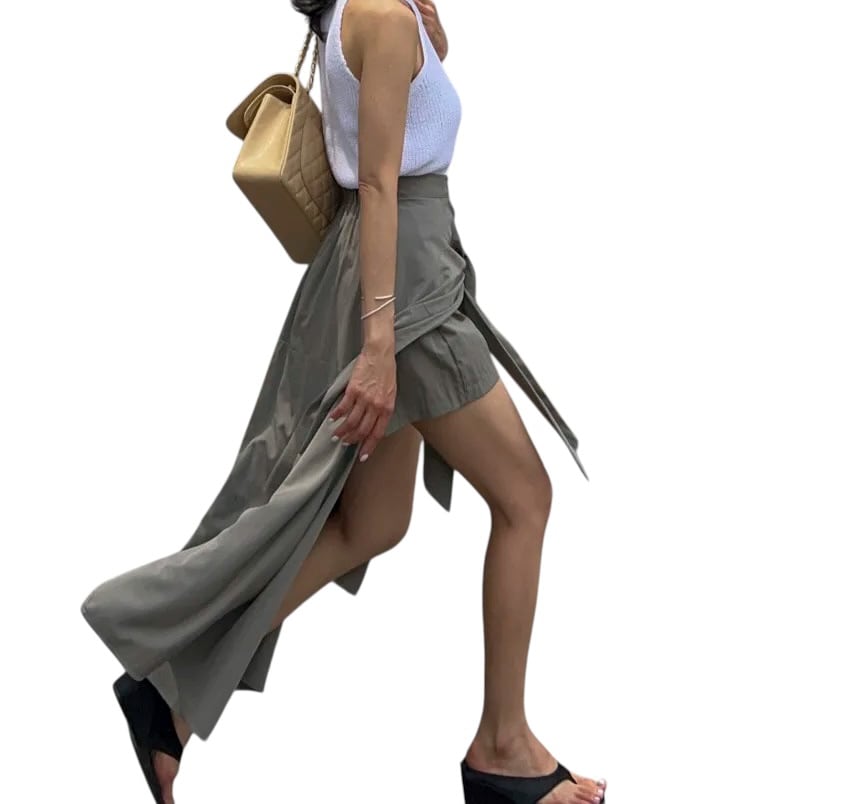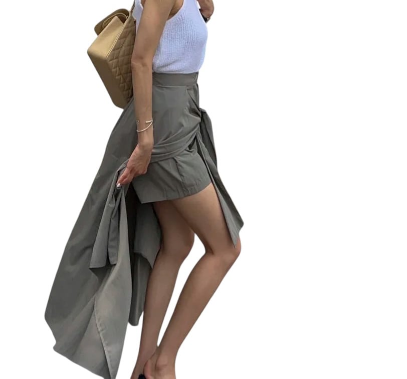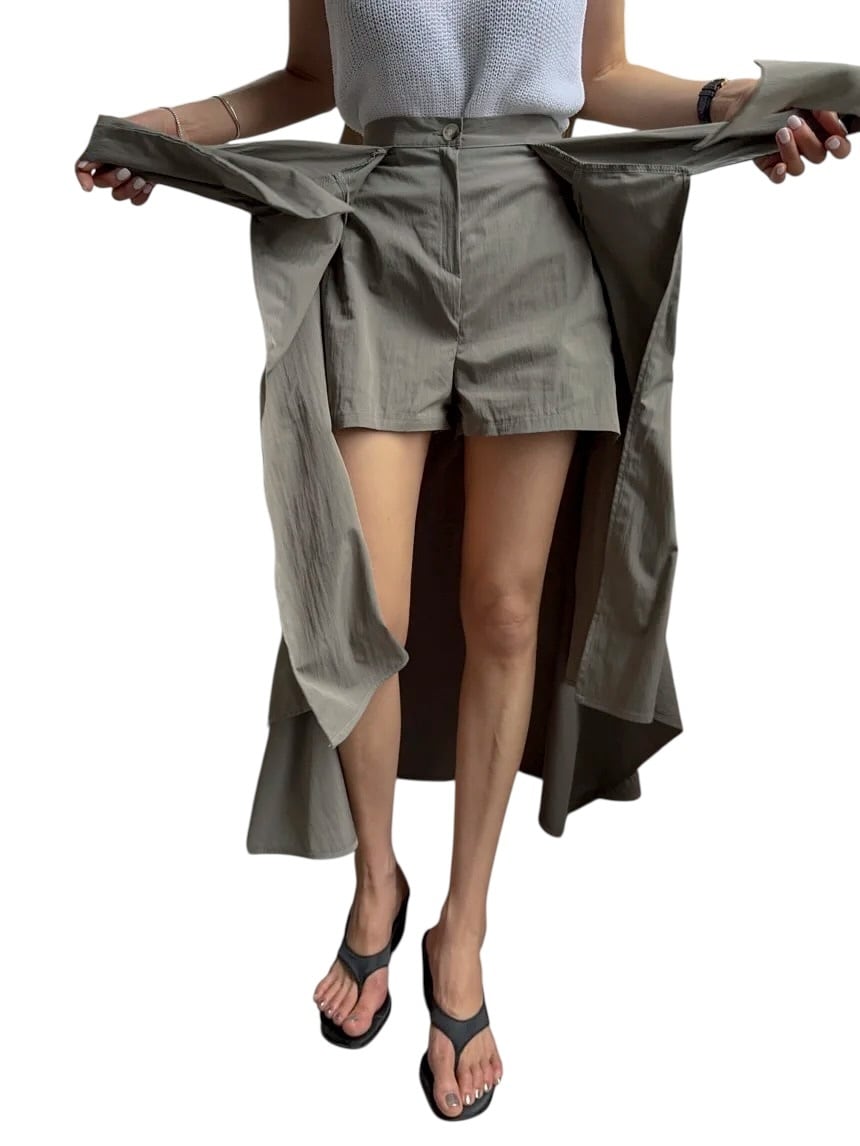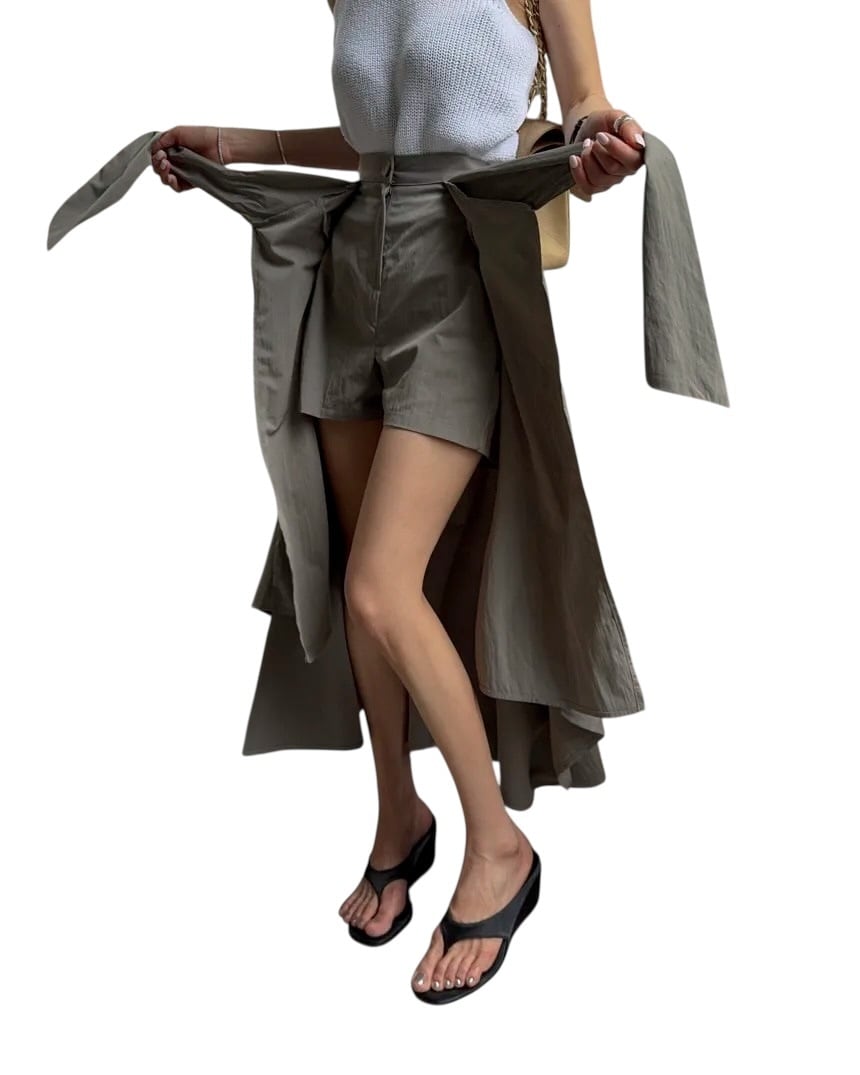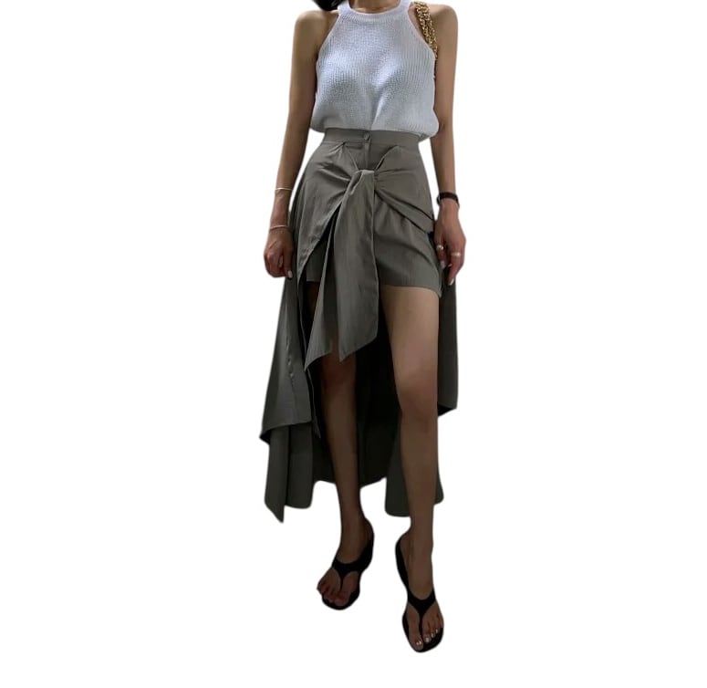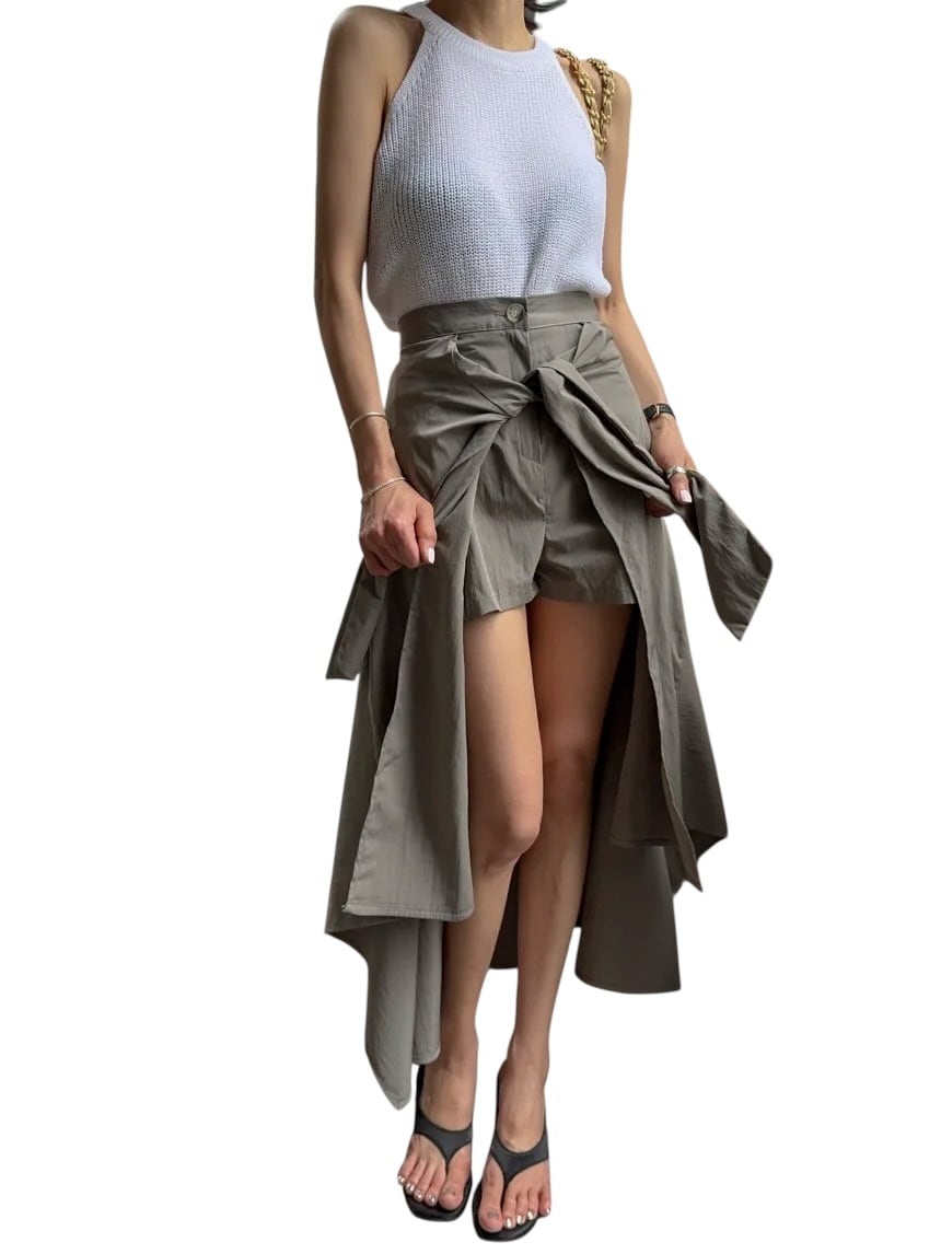 ■ディテール ショートパンツ/スカートレイヤード/薄手/ジッパー/ウエストリボン