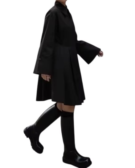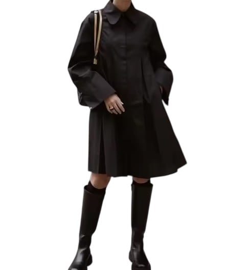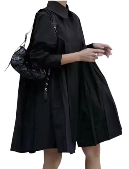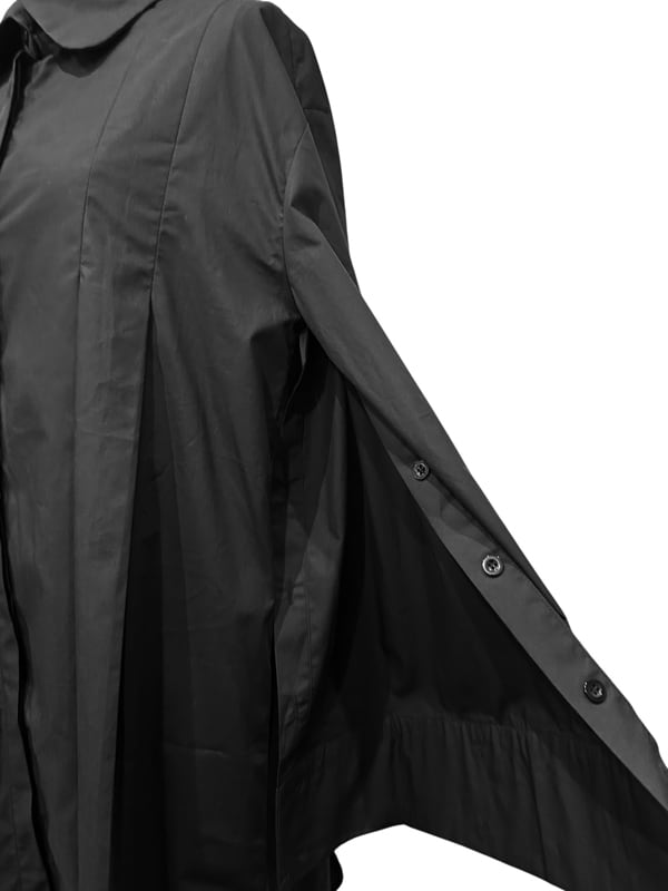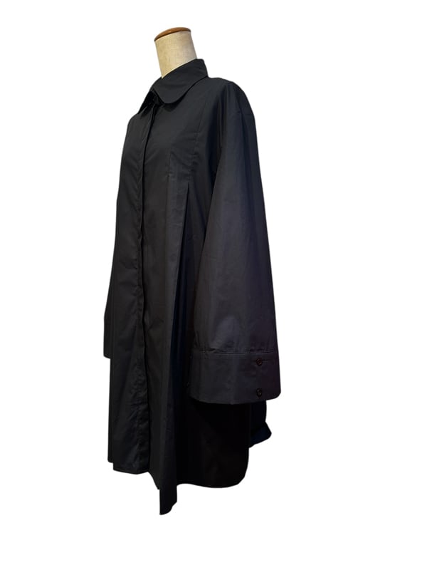 ■ディテール クラシックカラー/シャツワンピース/フレアシルエット/ブロードクロス/フレアスリーブ/袖にボタン/プリーツ