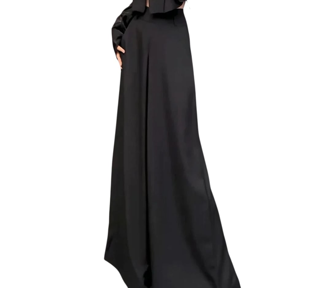 ■ディテール ハイライズ/ワイドレッグ/ジッパー/ボックスプリーツ/薄手