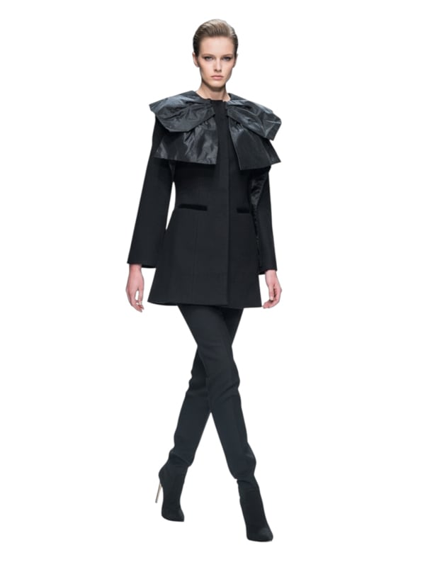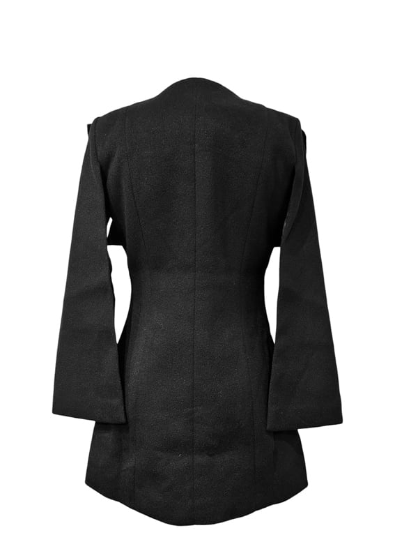 ■ディテール カラーレス/オーガンジーリボン/ウール調/ケープ風ジャケット/厚手/スナップボタン/袖の内側はスリットになっています。