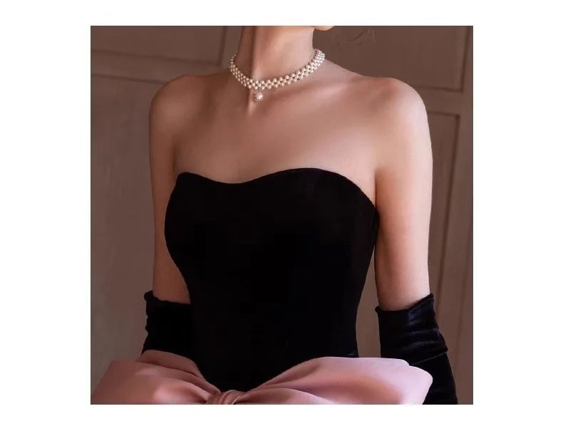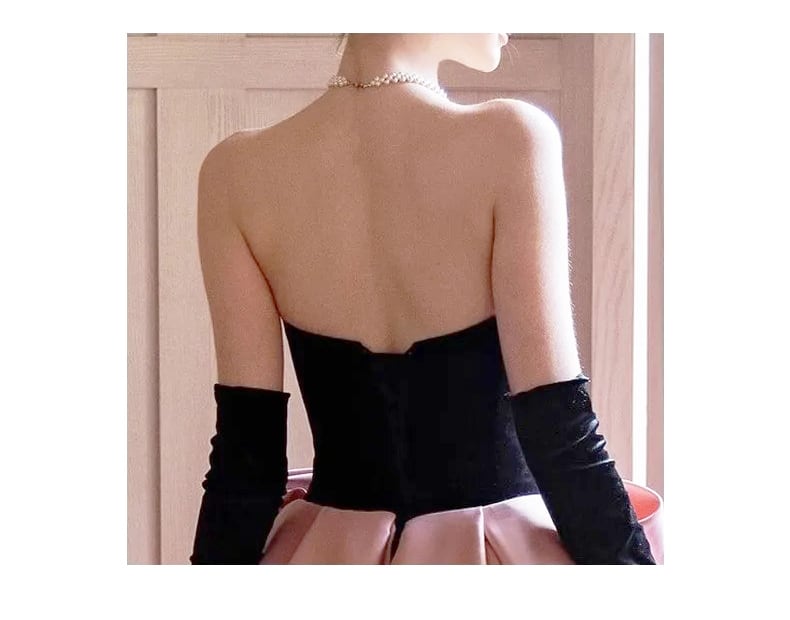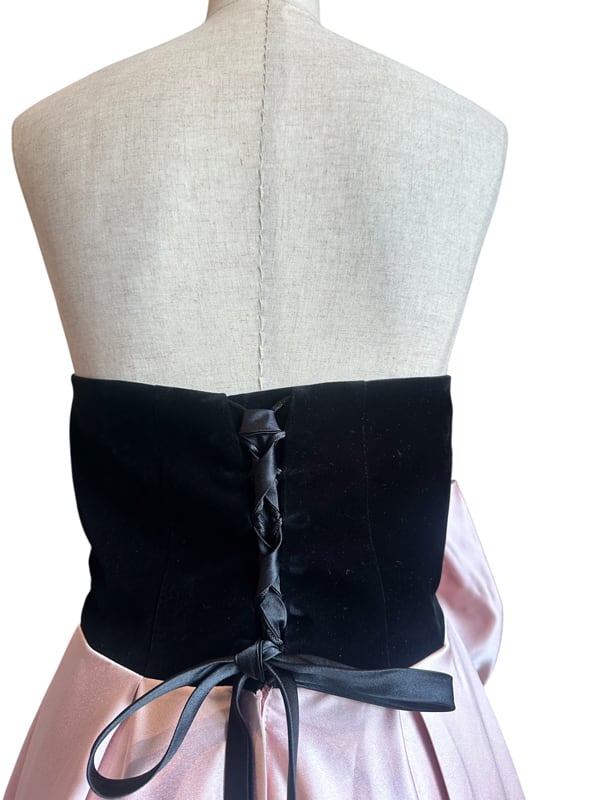 ■ディテール トップ:ベルベット/スカート:厚手サテン素材/背中レースアップ/ジッパー/ワイヤー入りのペチコート付き/ベルベットグローブ