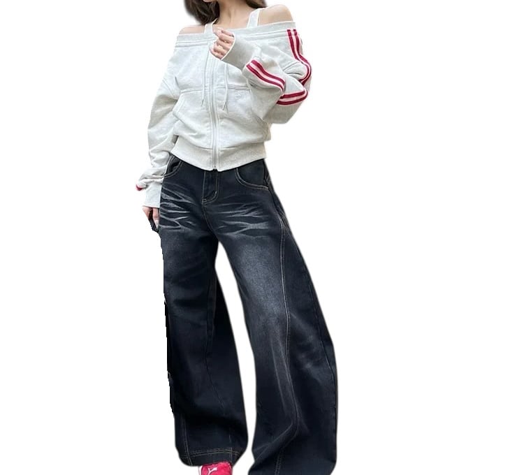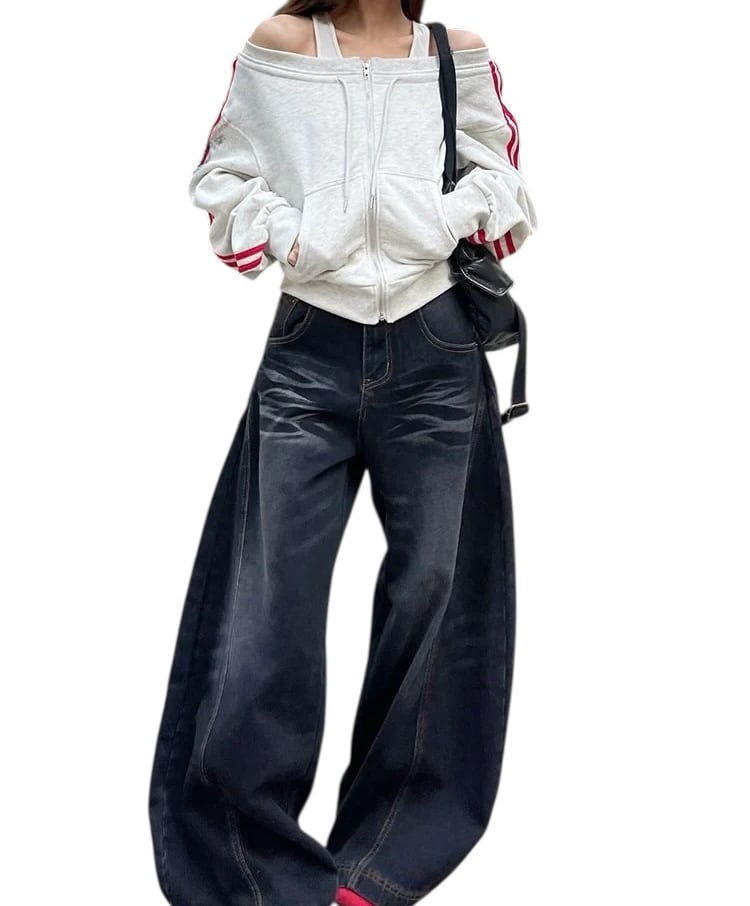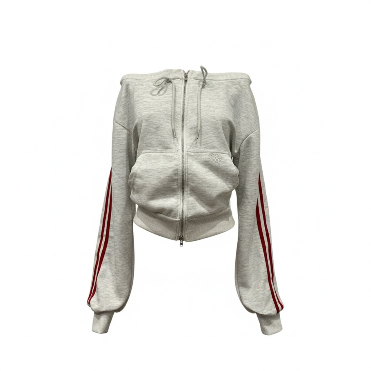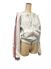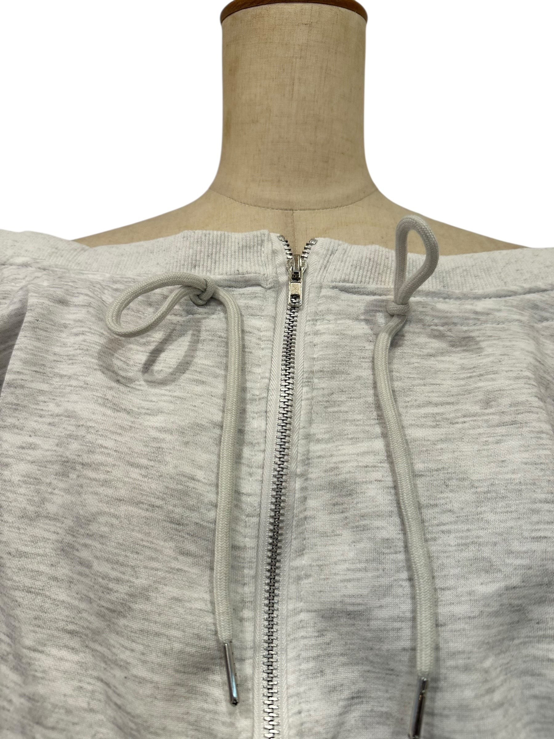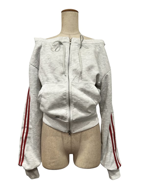 ■ディテール スウェット素材/オフショルダー/Wジッパー/カンガルーポケット/ドローストリングス