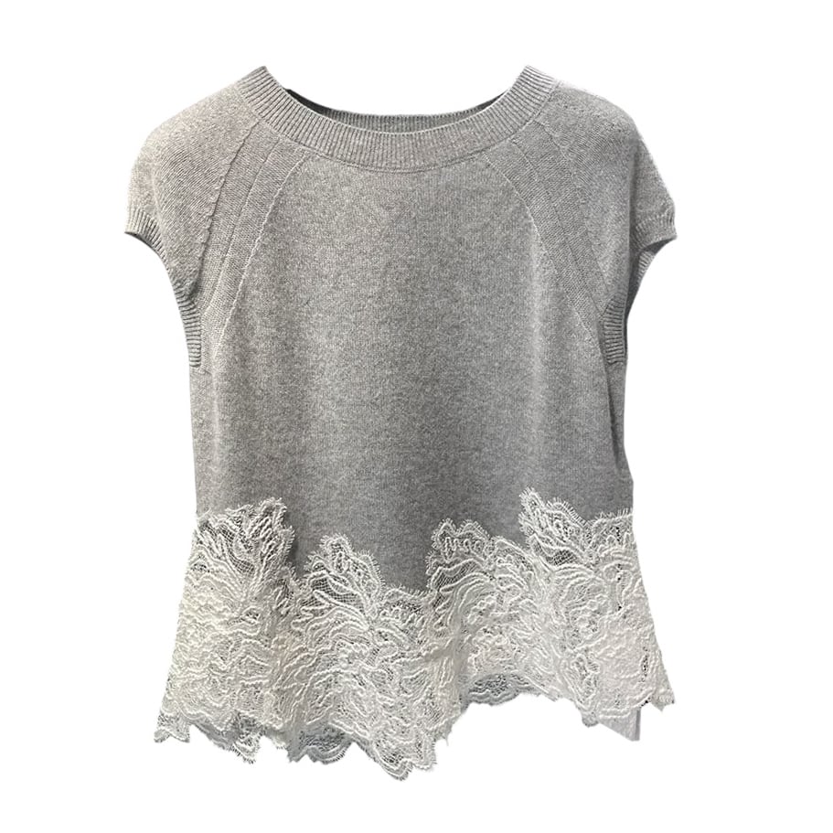 ■ディテール コットンニット/レースヘム/ワイドフィット