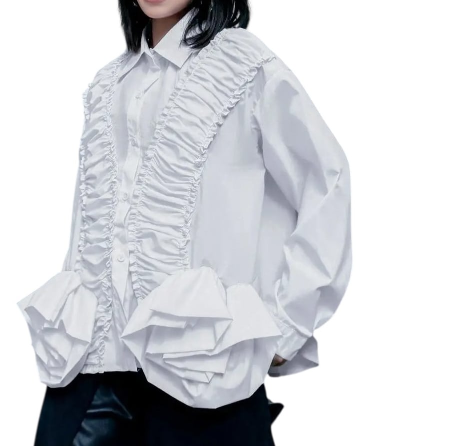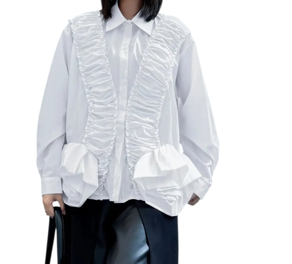 ■ディテール クラシックカラー/ギャザーラッフル/ラッフルヘム/ブロードクロス/ワイドフィット