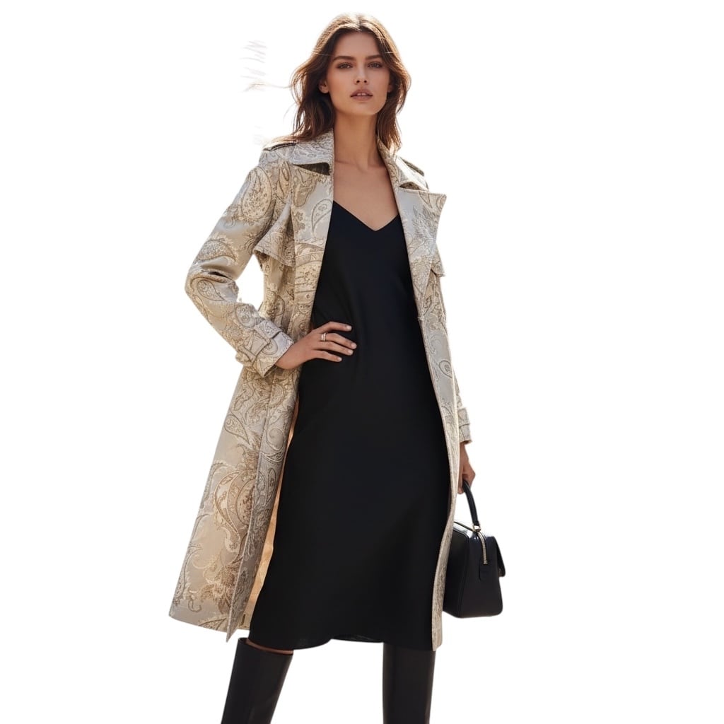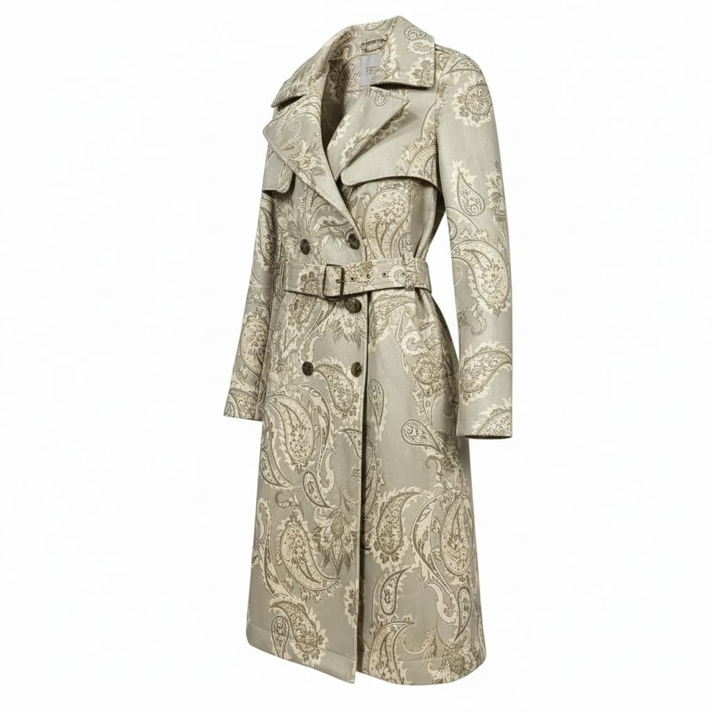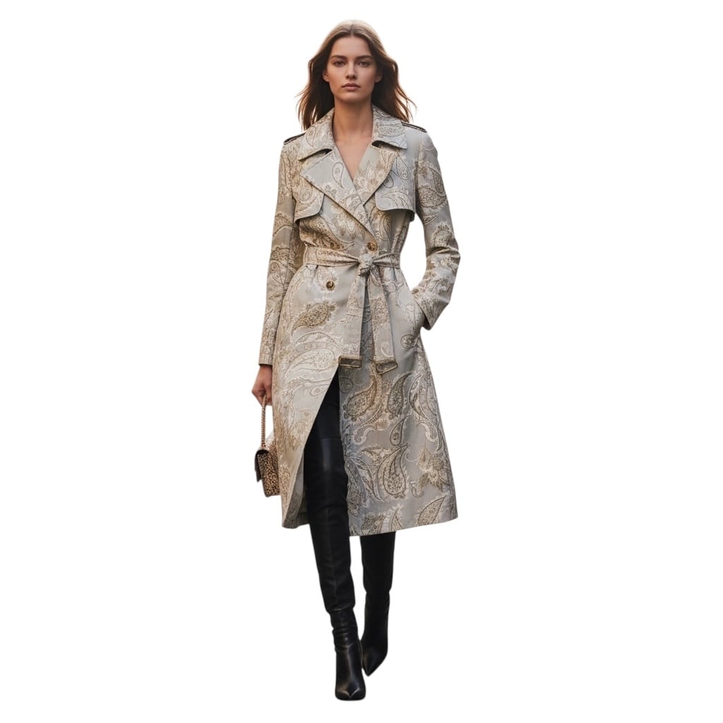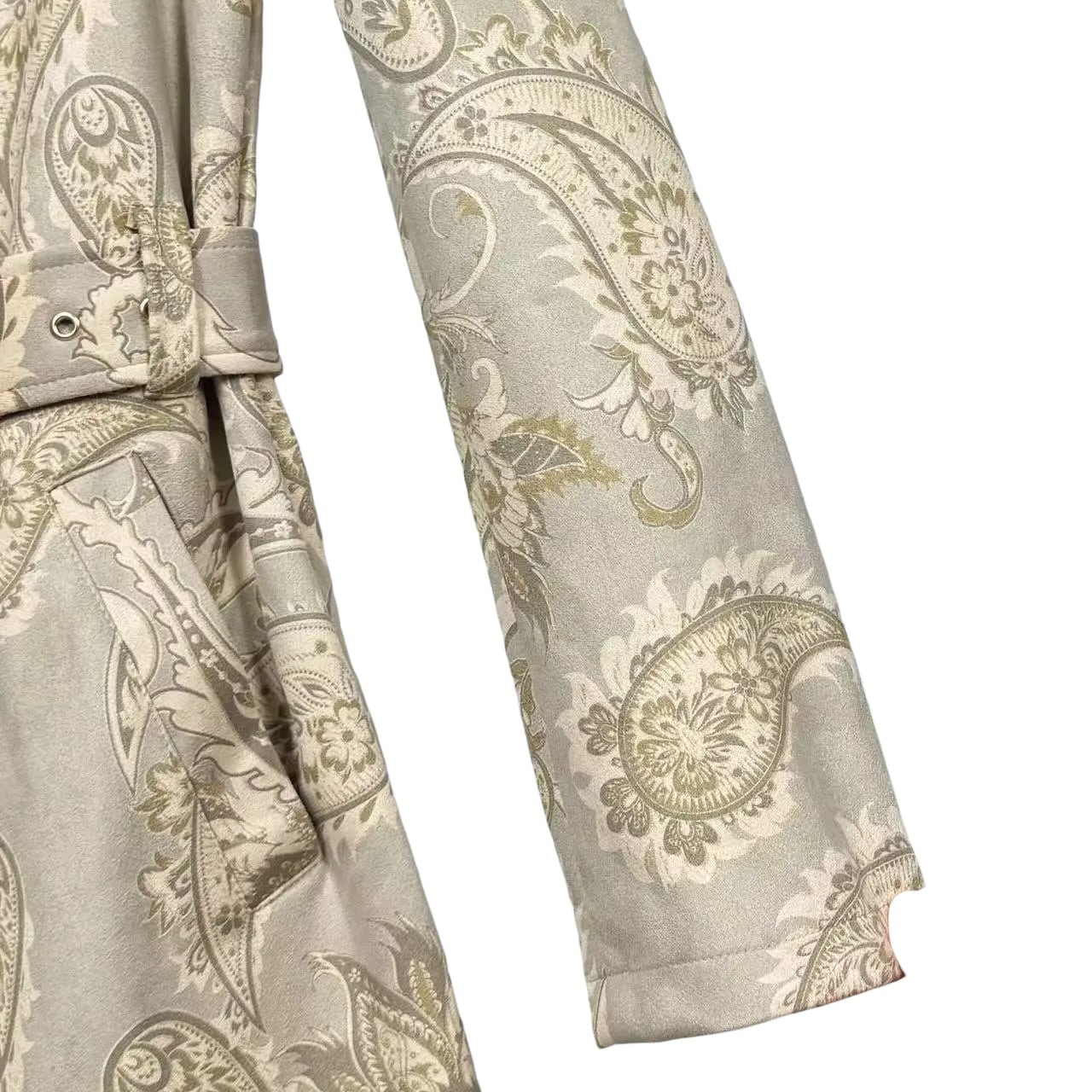 ■ディテール ペイズリーパターン/トレンチコート/スウェード調/ベルト/柔らかなジャージー/ポケット