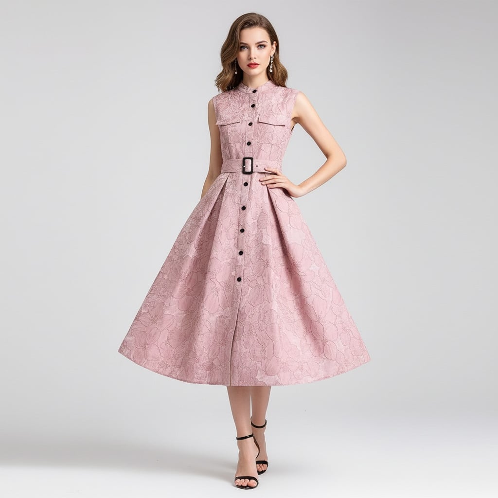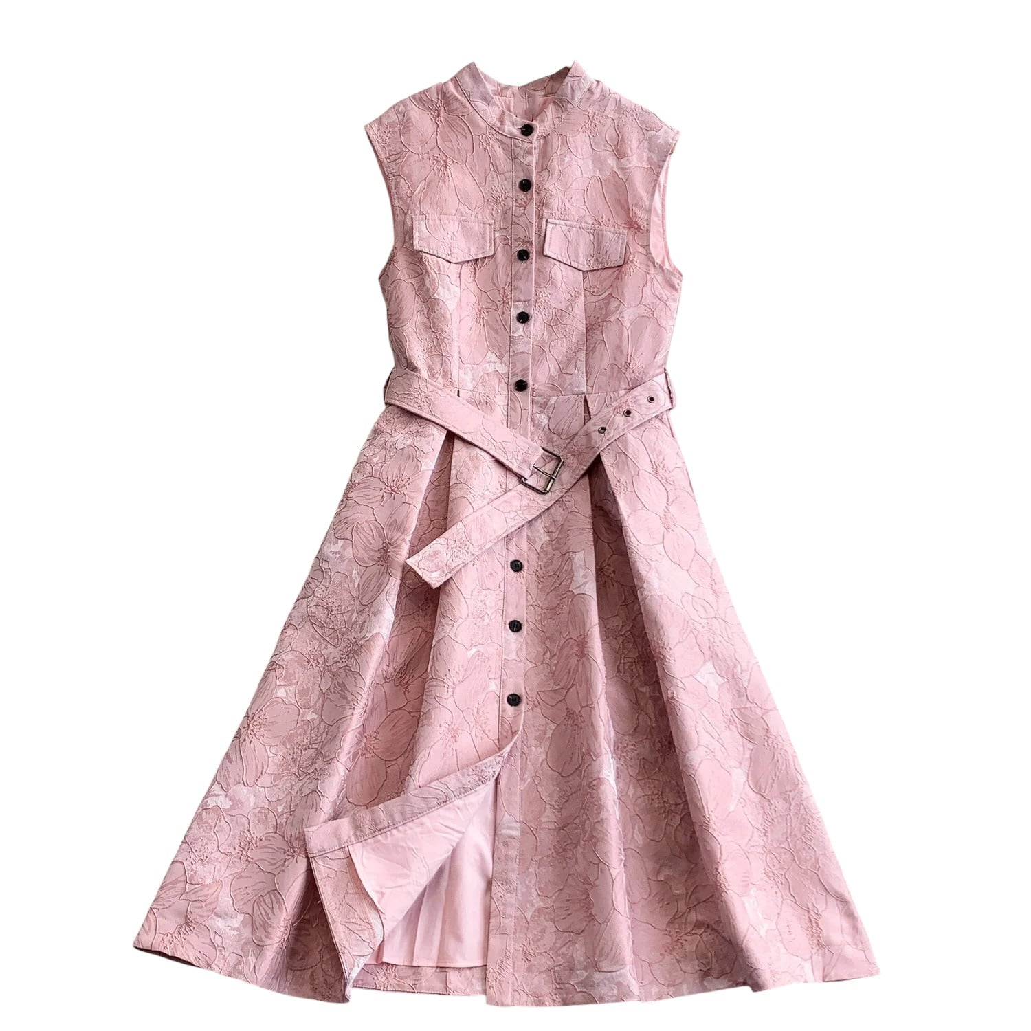 ■ディテール ジャガード/ボタン/ベルト/チャイニーズカラー/ボックスプリーツ/ストレッチなし
