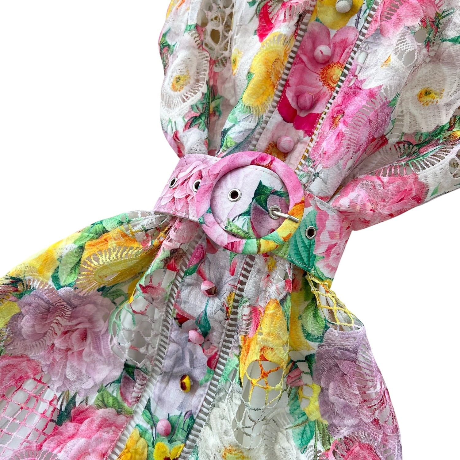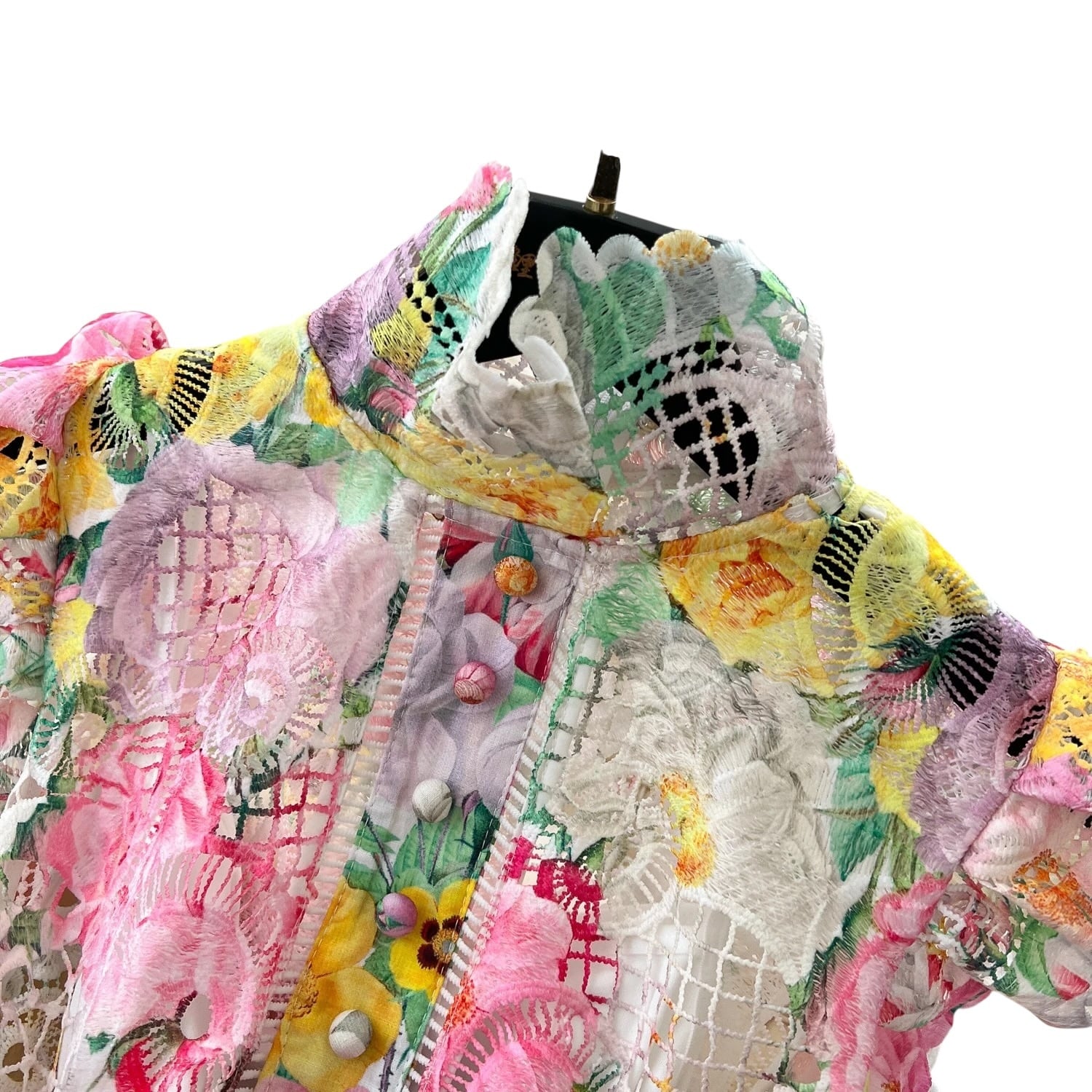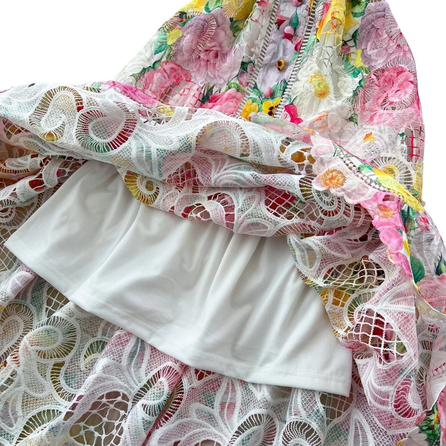 ■ディテール カットアウト/レース/チャイニーズカラー/ラッフルショルダー/ベルト/フルレングスの裏地あり