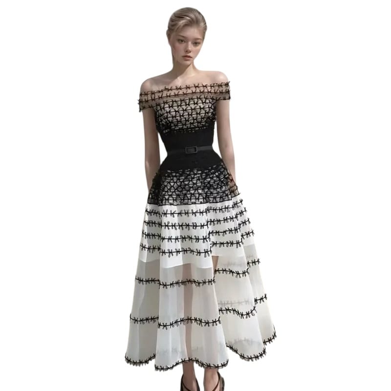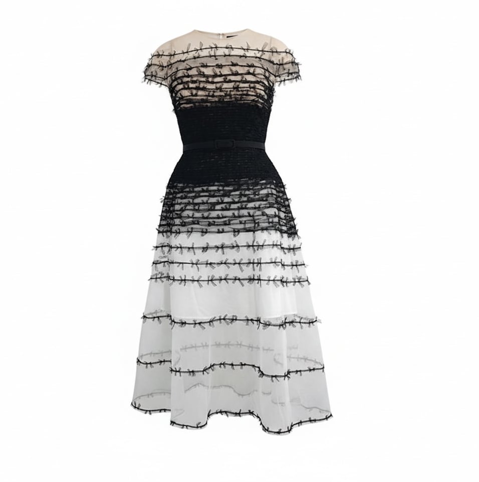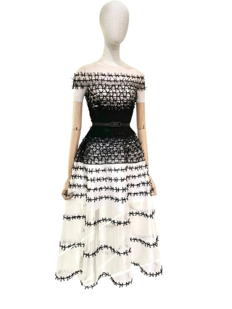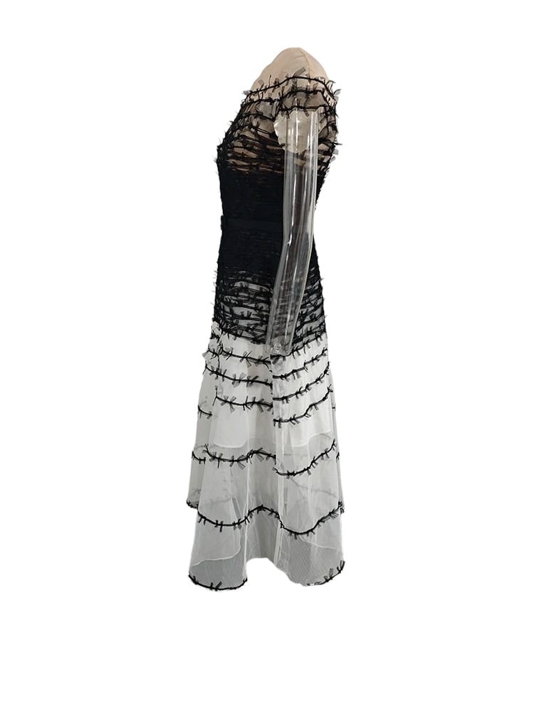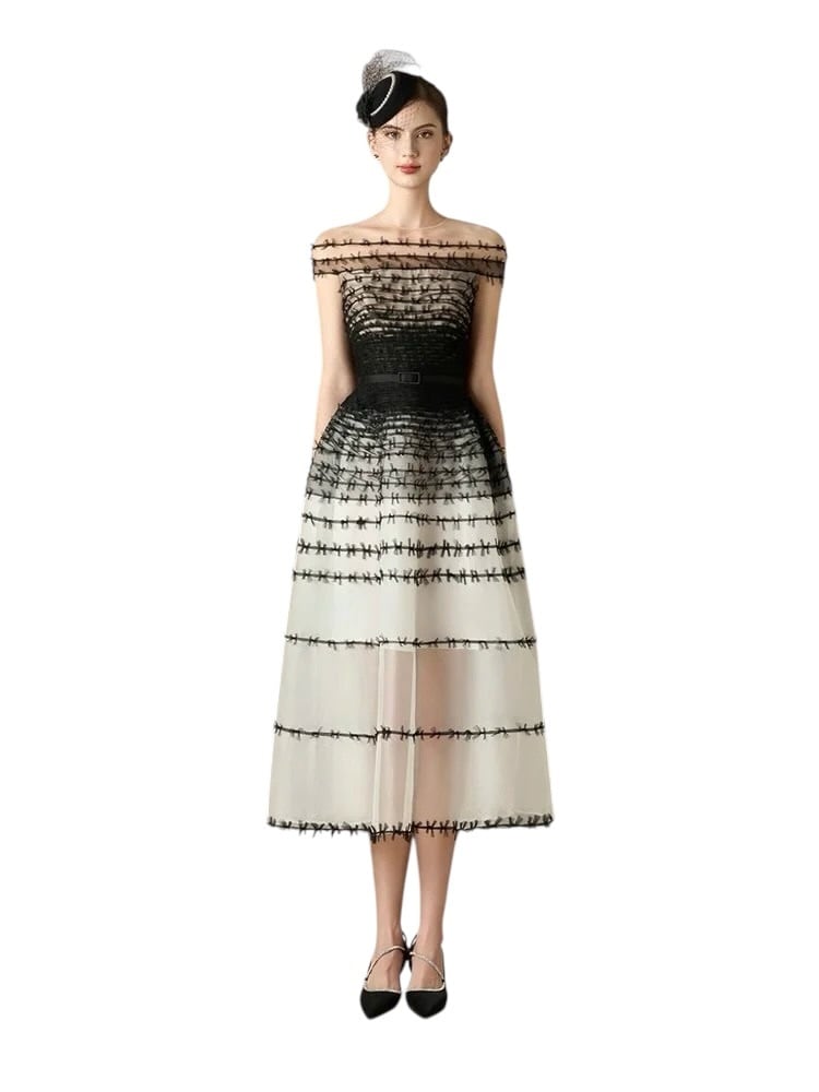 ■ディテール チュール/グラデーション/キャップスリーブ/チュールリボン/ジッパー/裏地