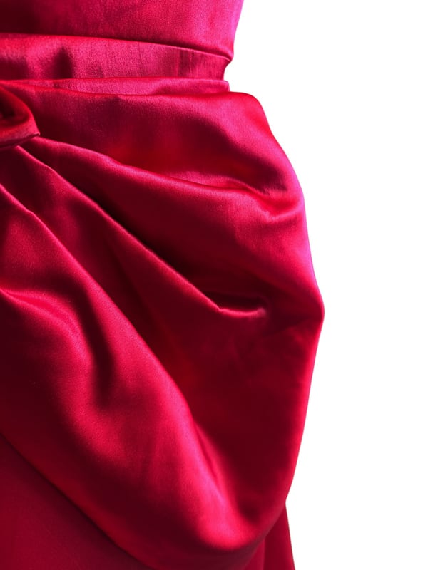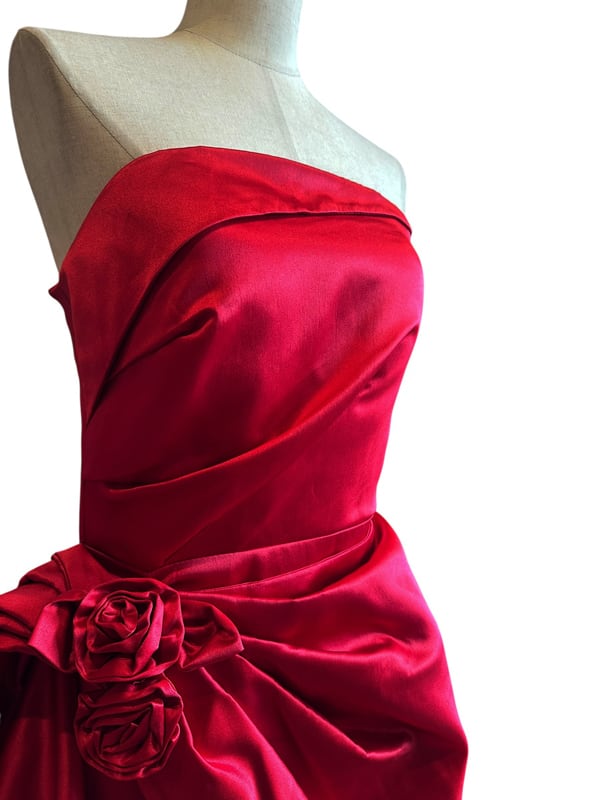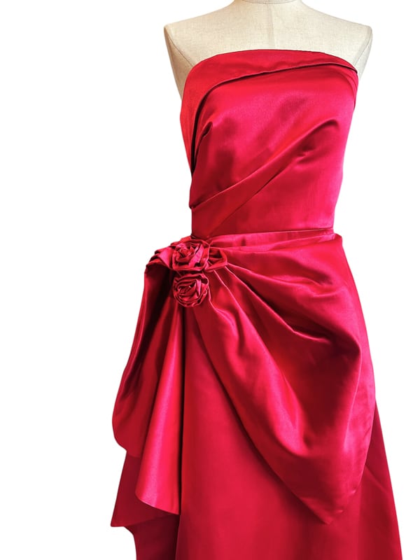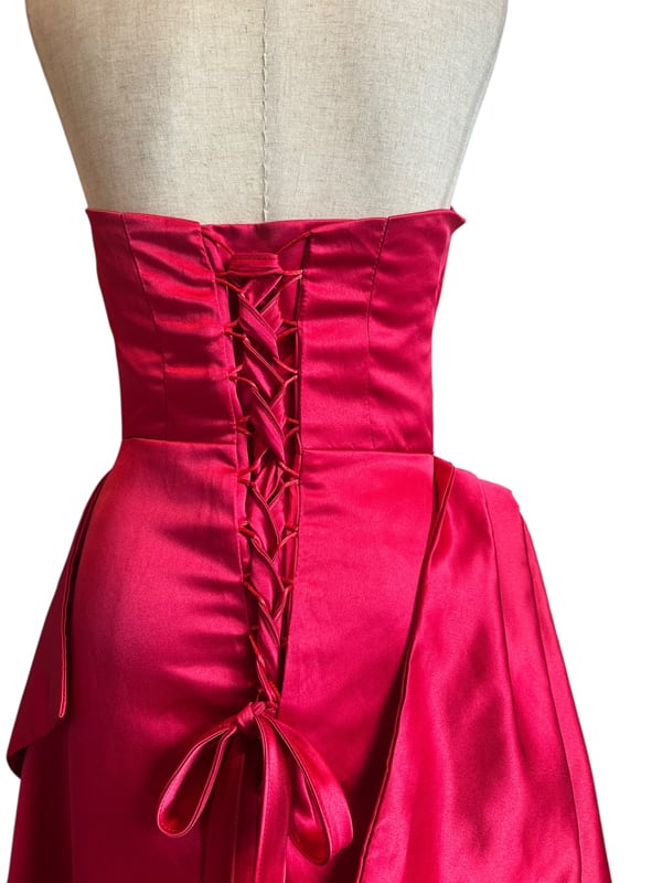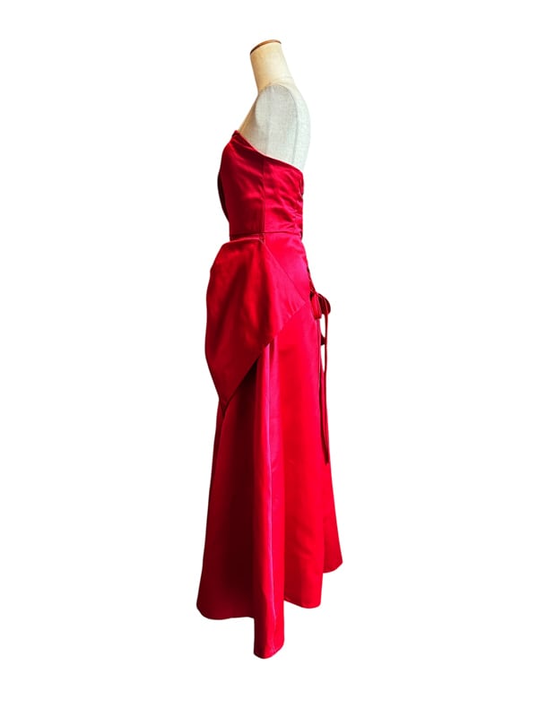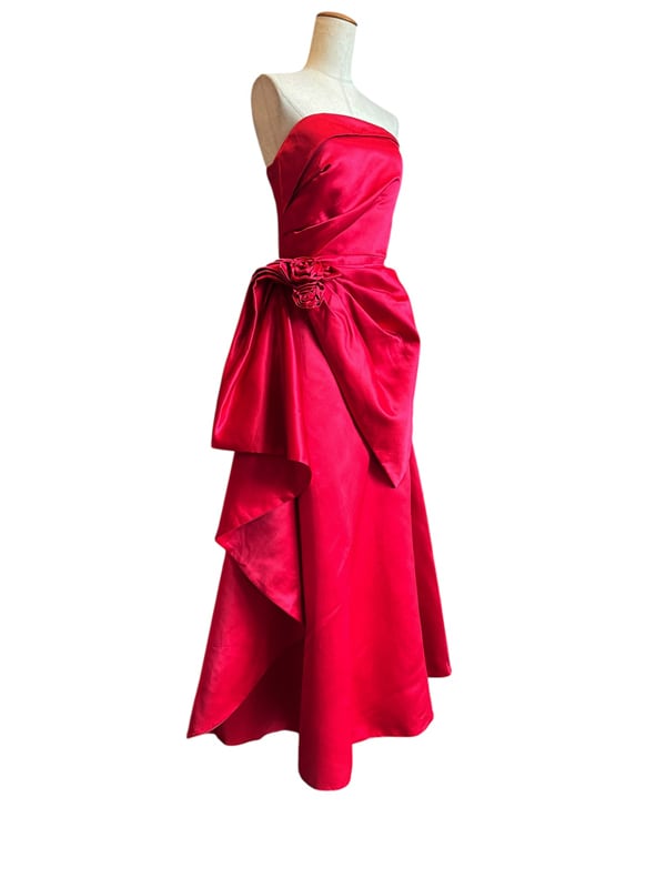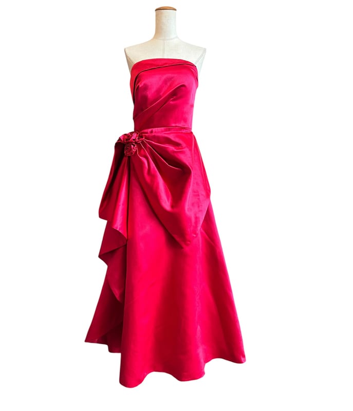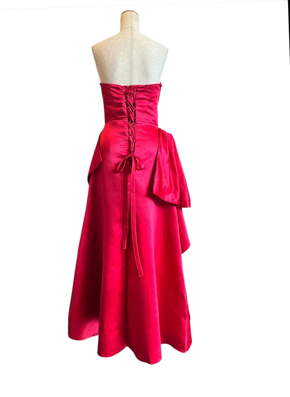 ■ディテール 厚手サテン素材/イブニングガウン/レースアップ/コサージュ