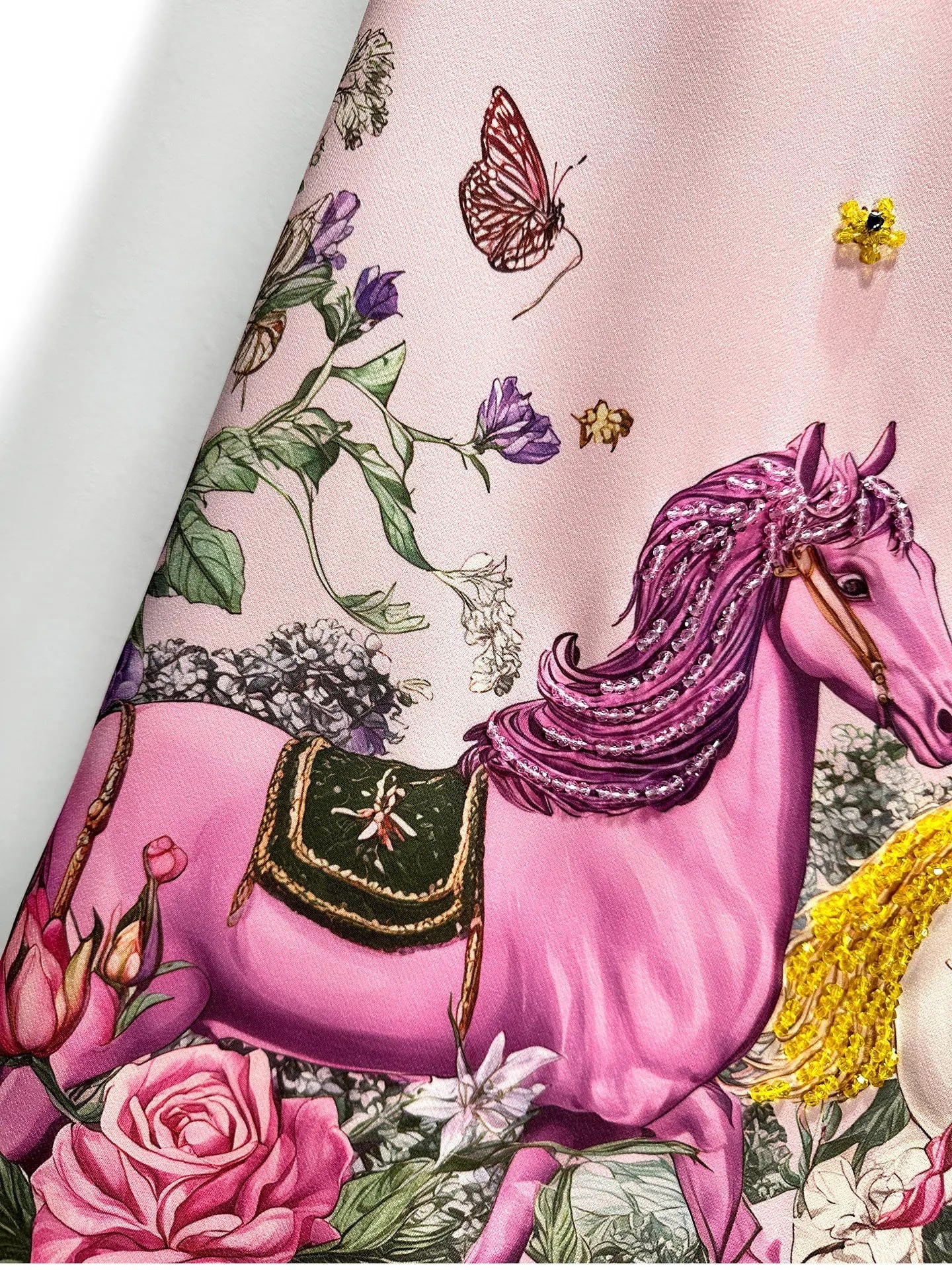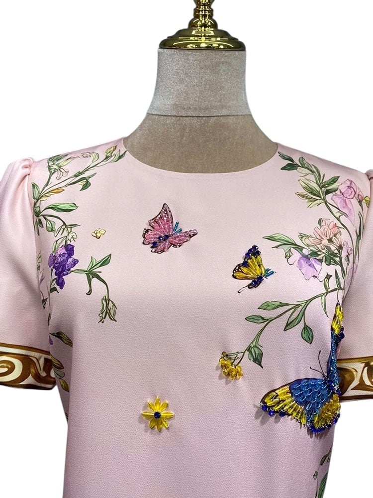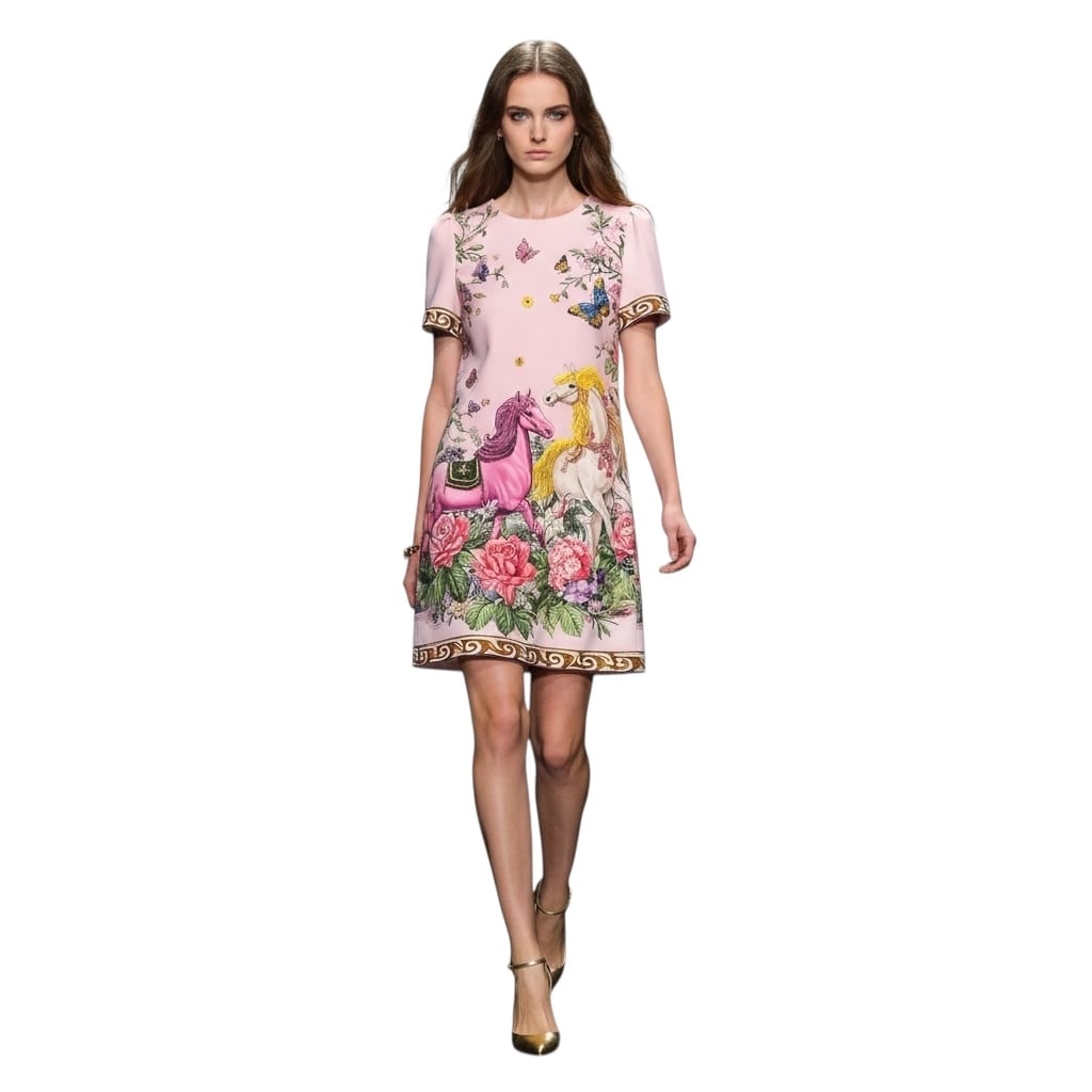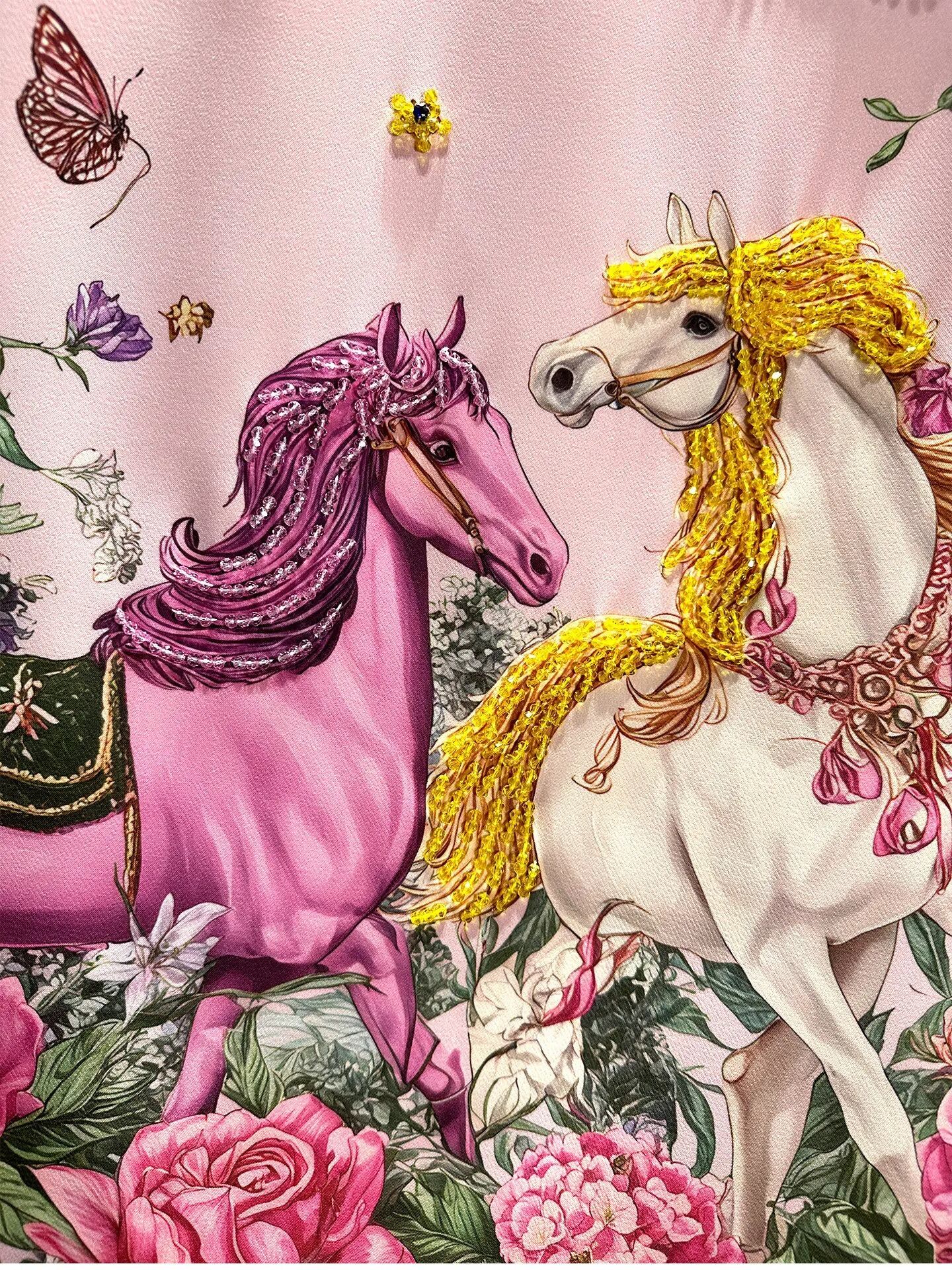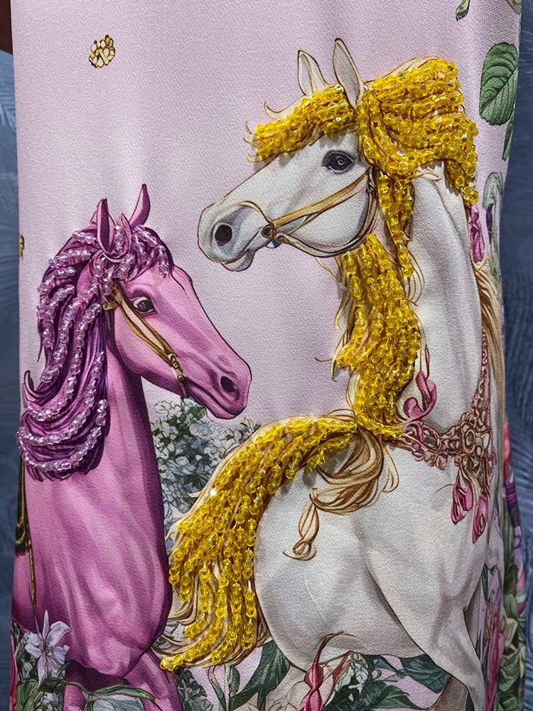 ■ディテール 半袖ワンピース/ホースプリント/ビーズ・ビジュー装飾/ジッパー
