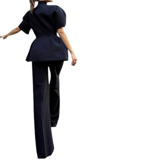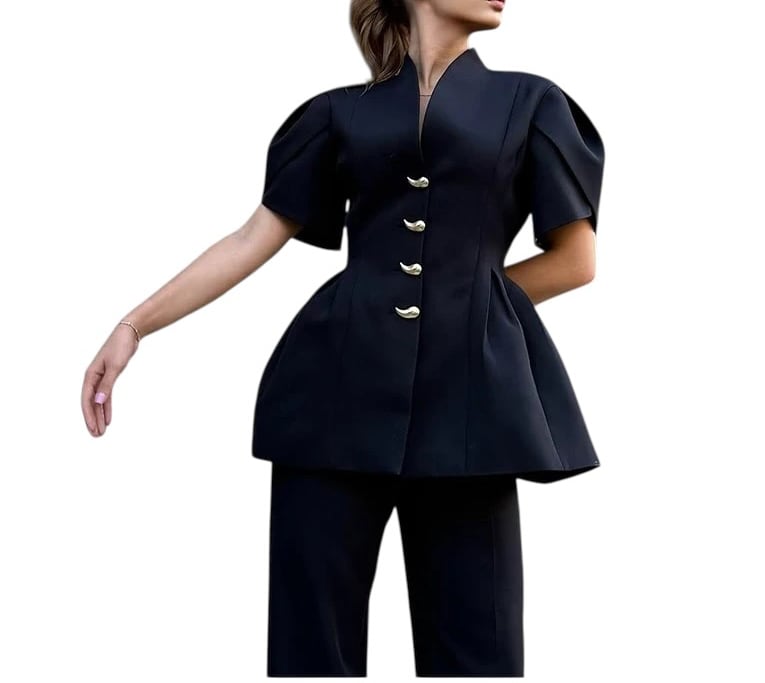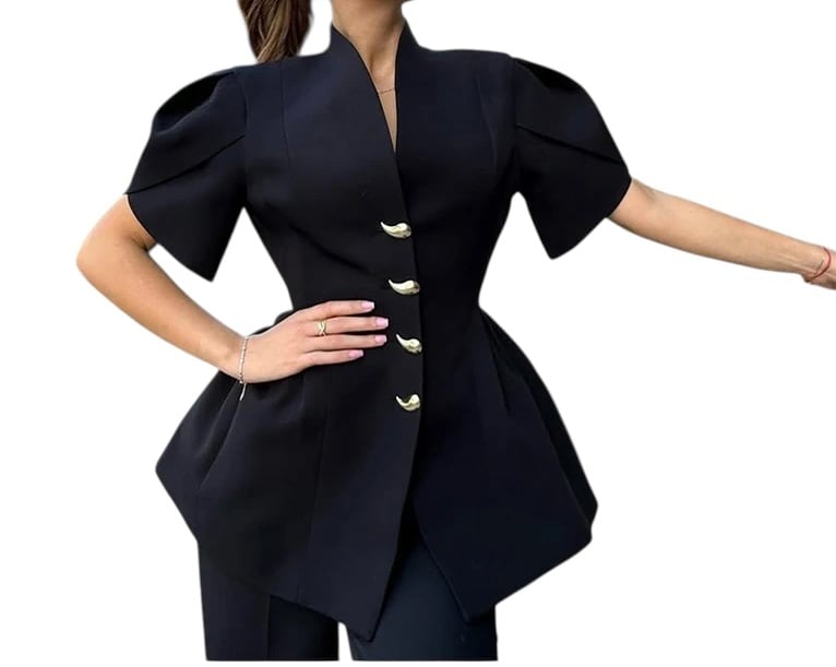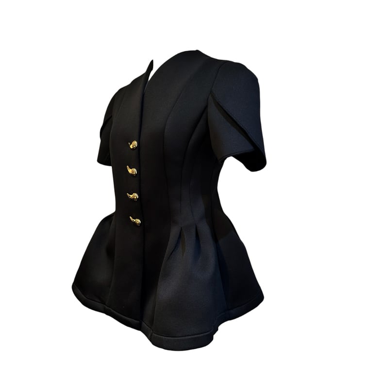 ■ディテール ネオプレン/タック/パフスリーブ/Vネック/メタルボタン