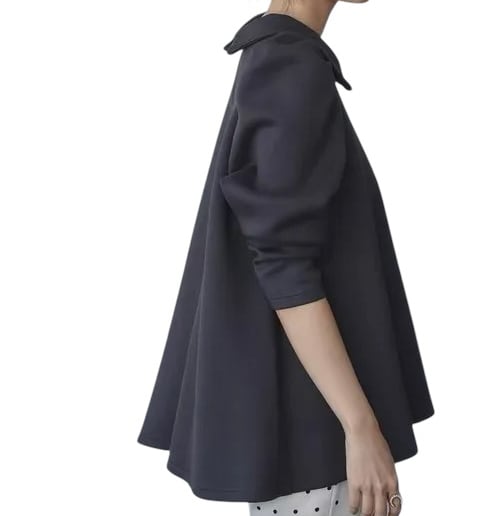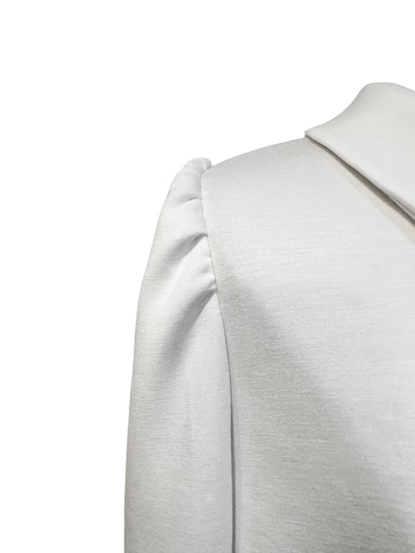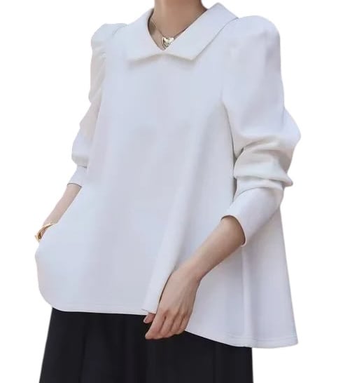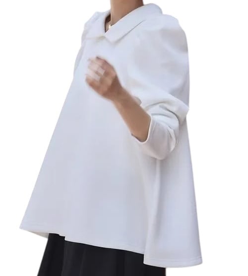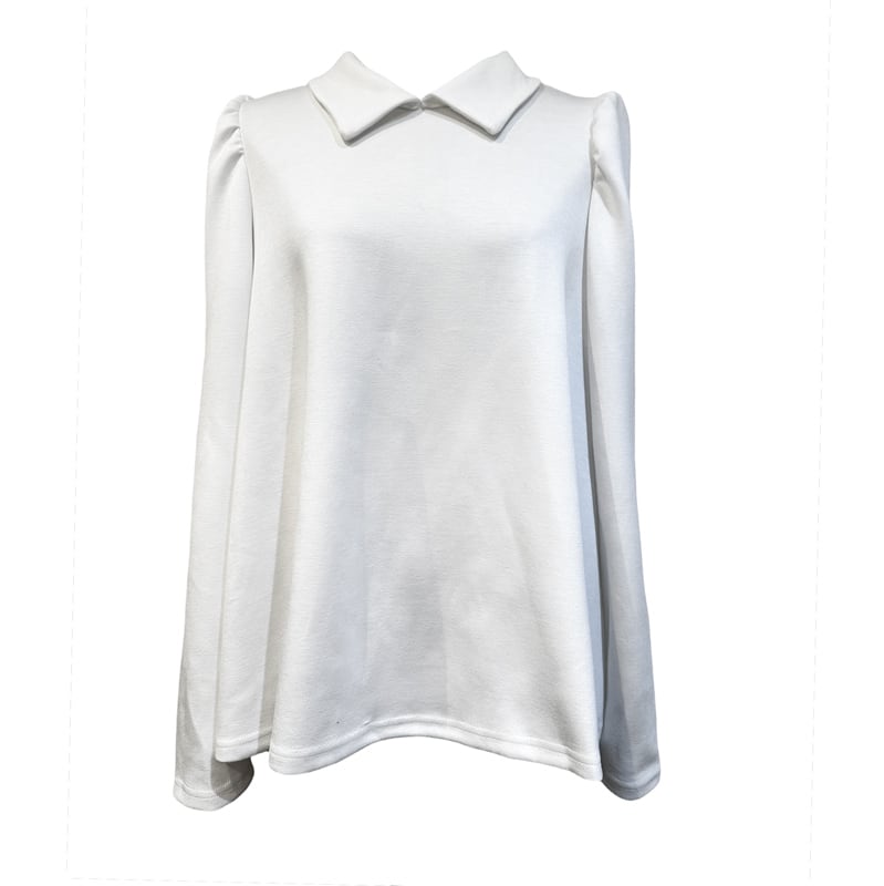 ■ディテール ソフトスウェット/薄手のボンディング素材/プルオーバー/クラシックカラー/ストレッチ/フレアシルエット/パフスリーブ