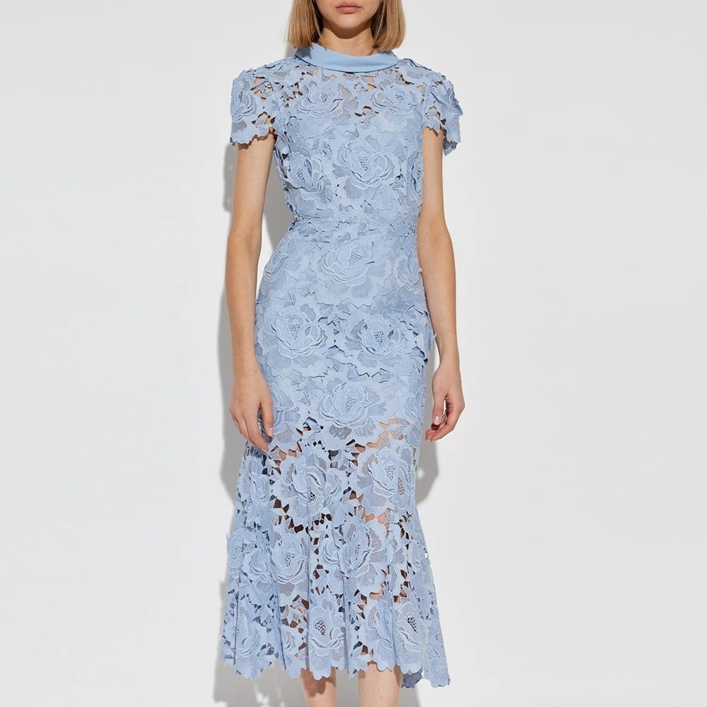 ■ディテール カットアウト/レース/ジッパー/マーメイド/スタンドカラー